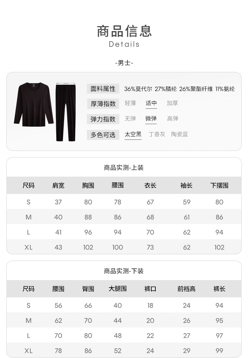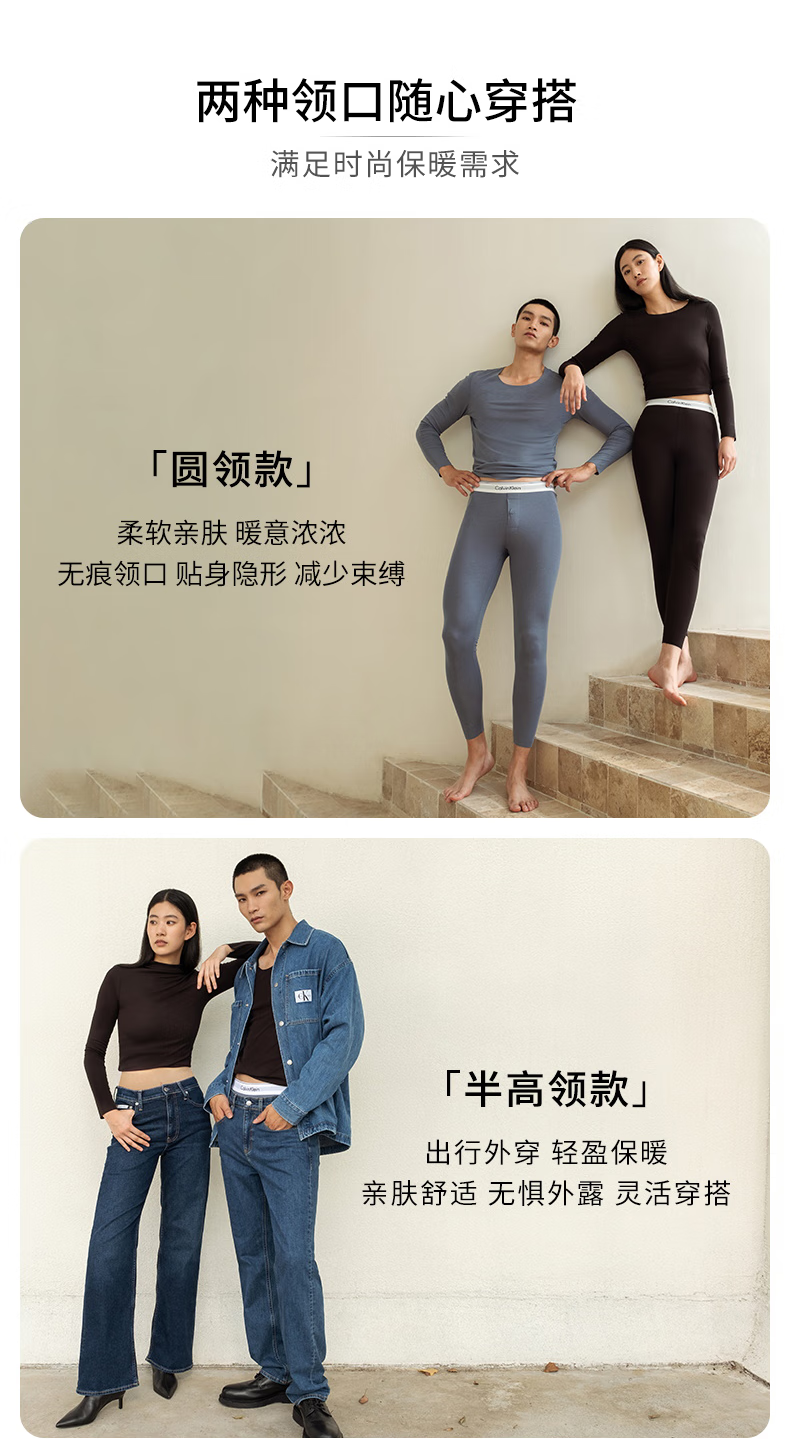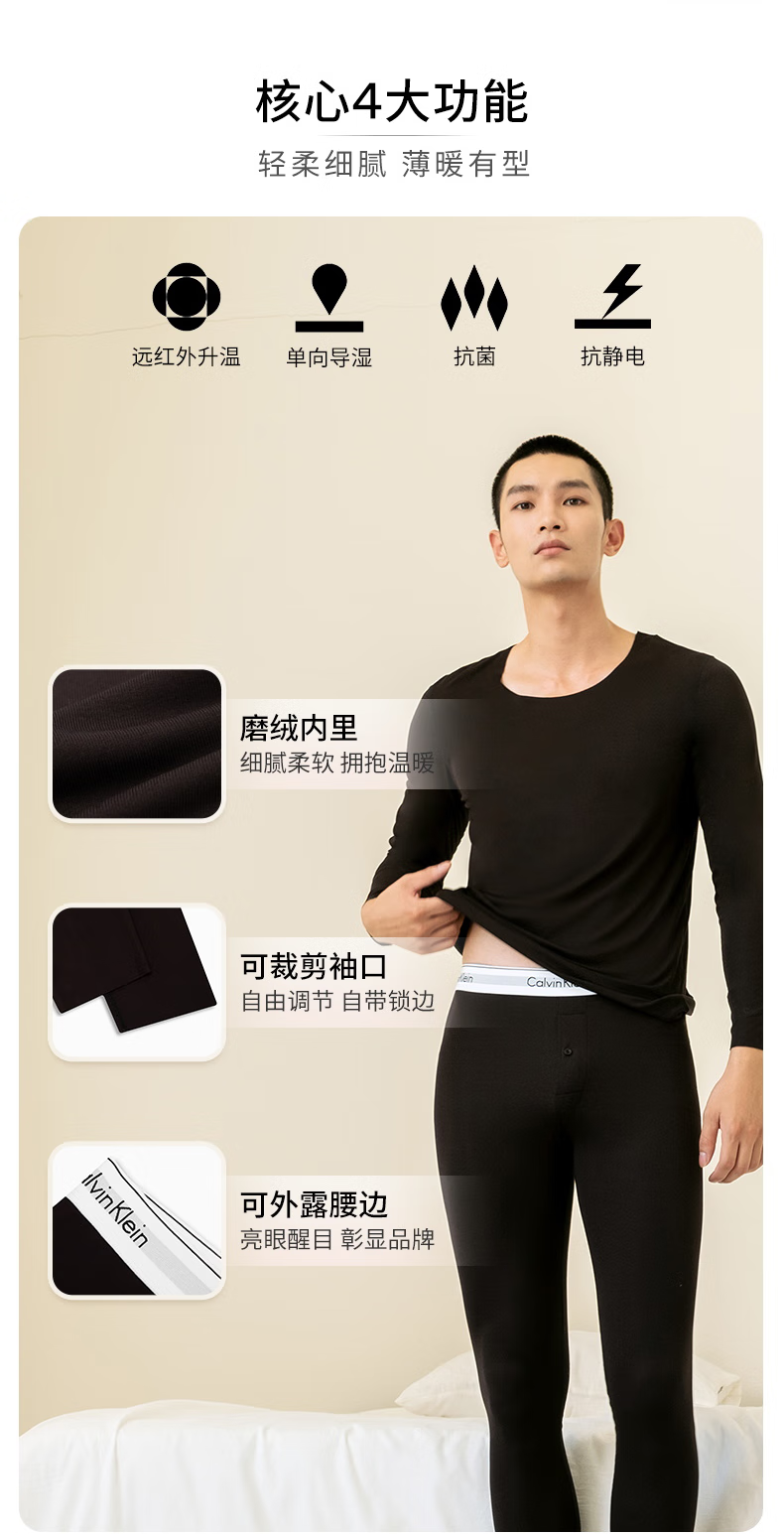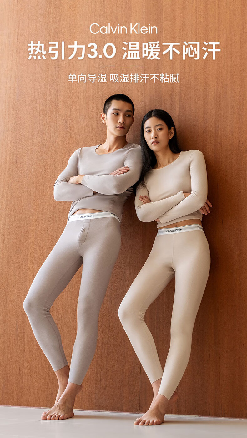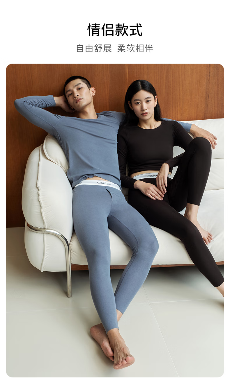 Calvin Klein内衣【热引力】24秋季新款情侣ck轻盈柔滑打底保暖内衣长裤随心选 AD0018-UB1-太空黑 XL