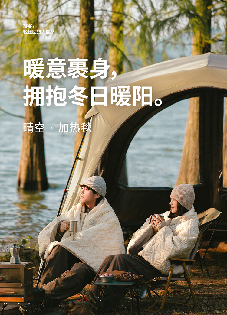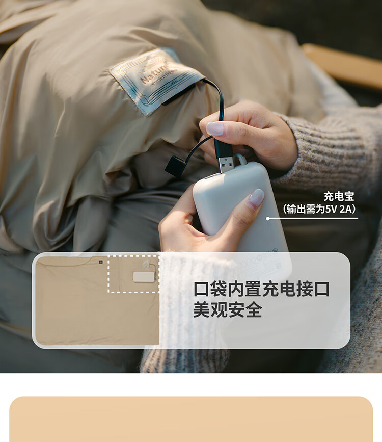 挪客Naturehike加热毯户外露营电热睡袋冬季加厚办公室家用保暖披肩 升级款-SK90/咖色/L