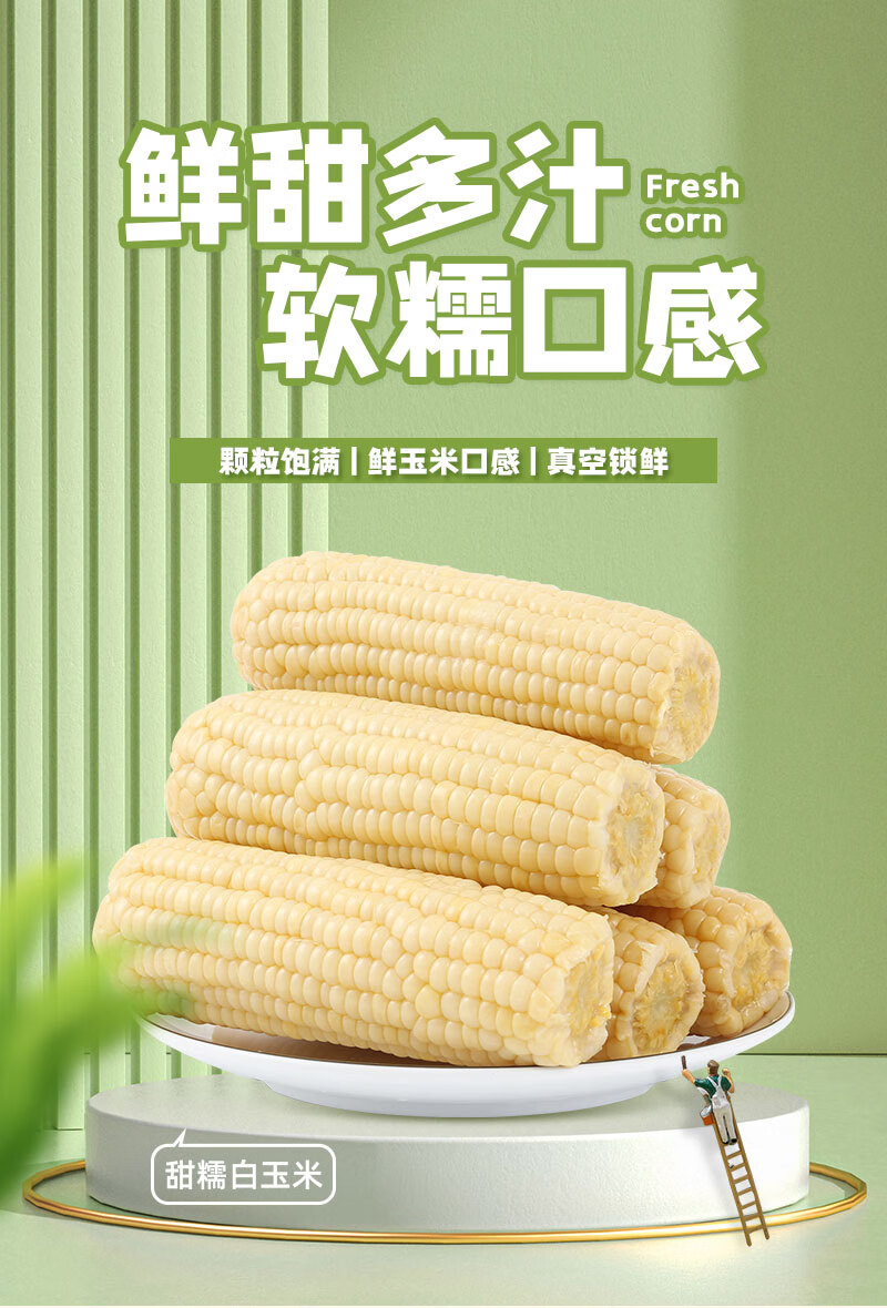 黑土跳动东北336白甜糯玉米粘玉米800g/袋真空锁鲜新鲜玉米低脂粗粮代餐