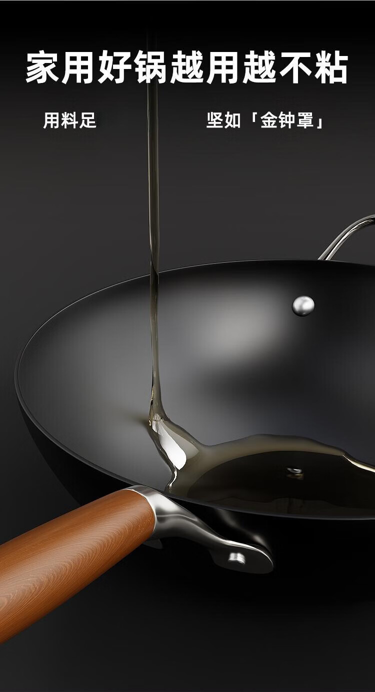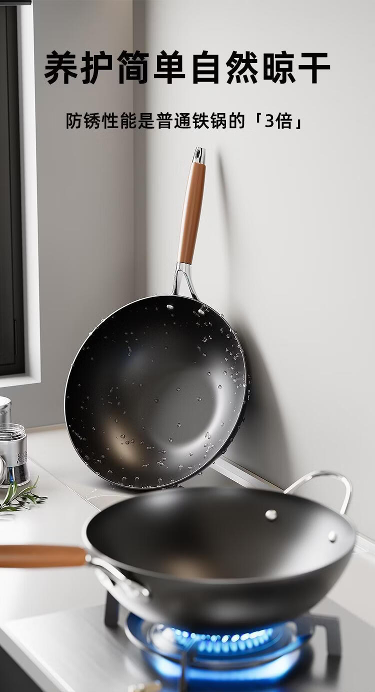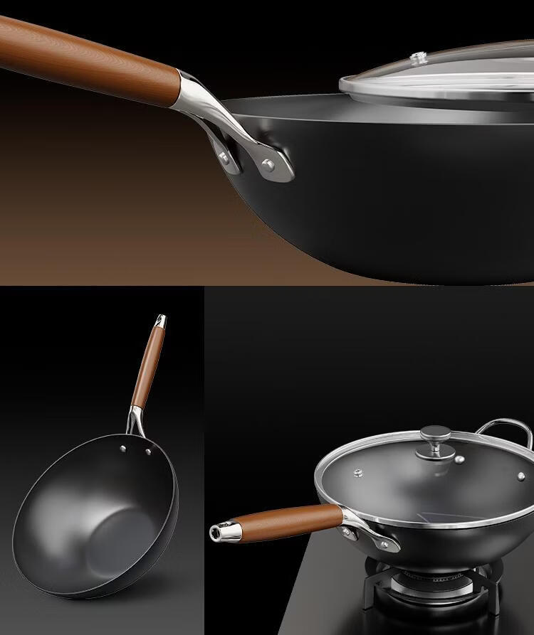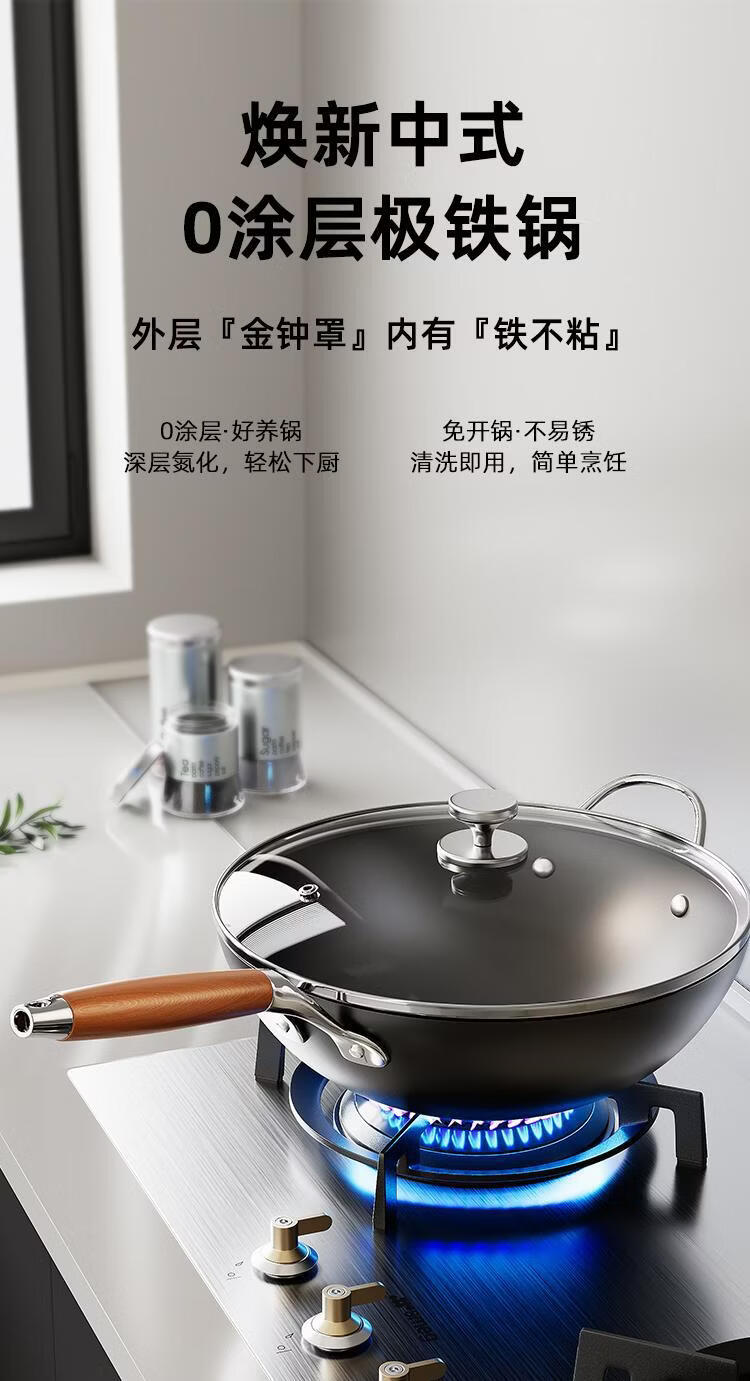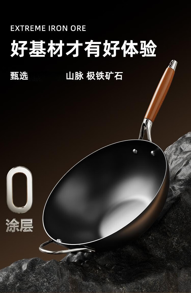 OCMOGO日本品牌0涂层极铁炒锅多功能炒菜锅家用平底爆炒锅通用炉灶通用 0涂层炒锅【带盖】 28cm