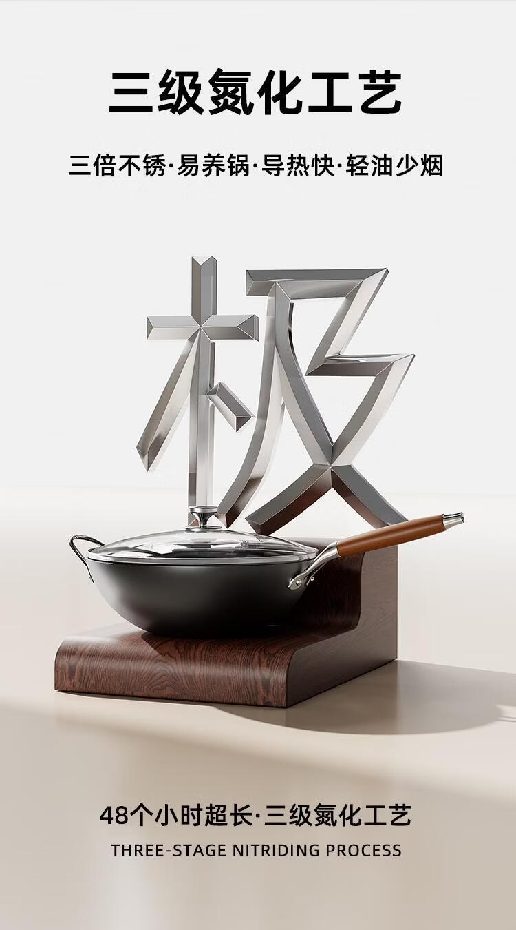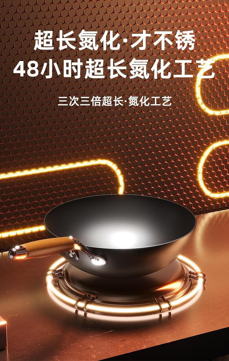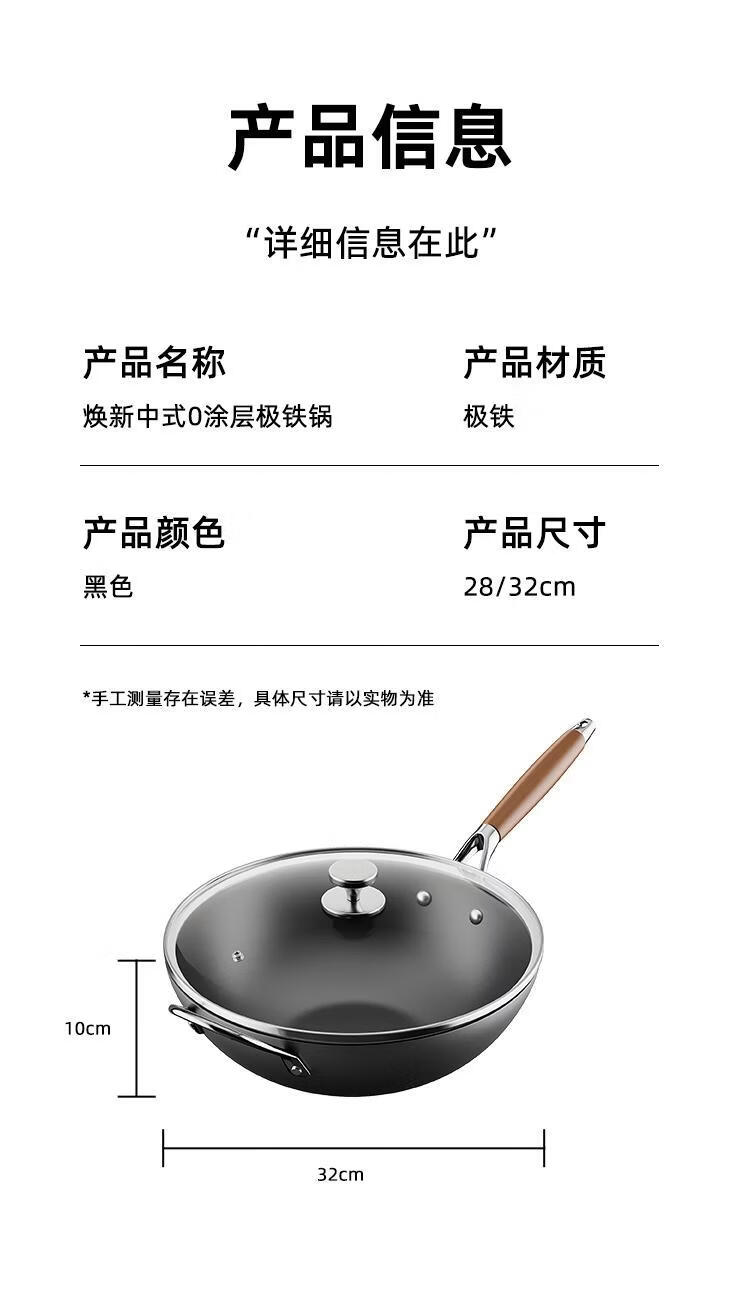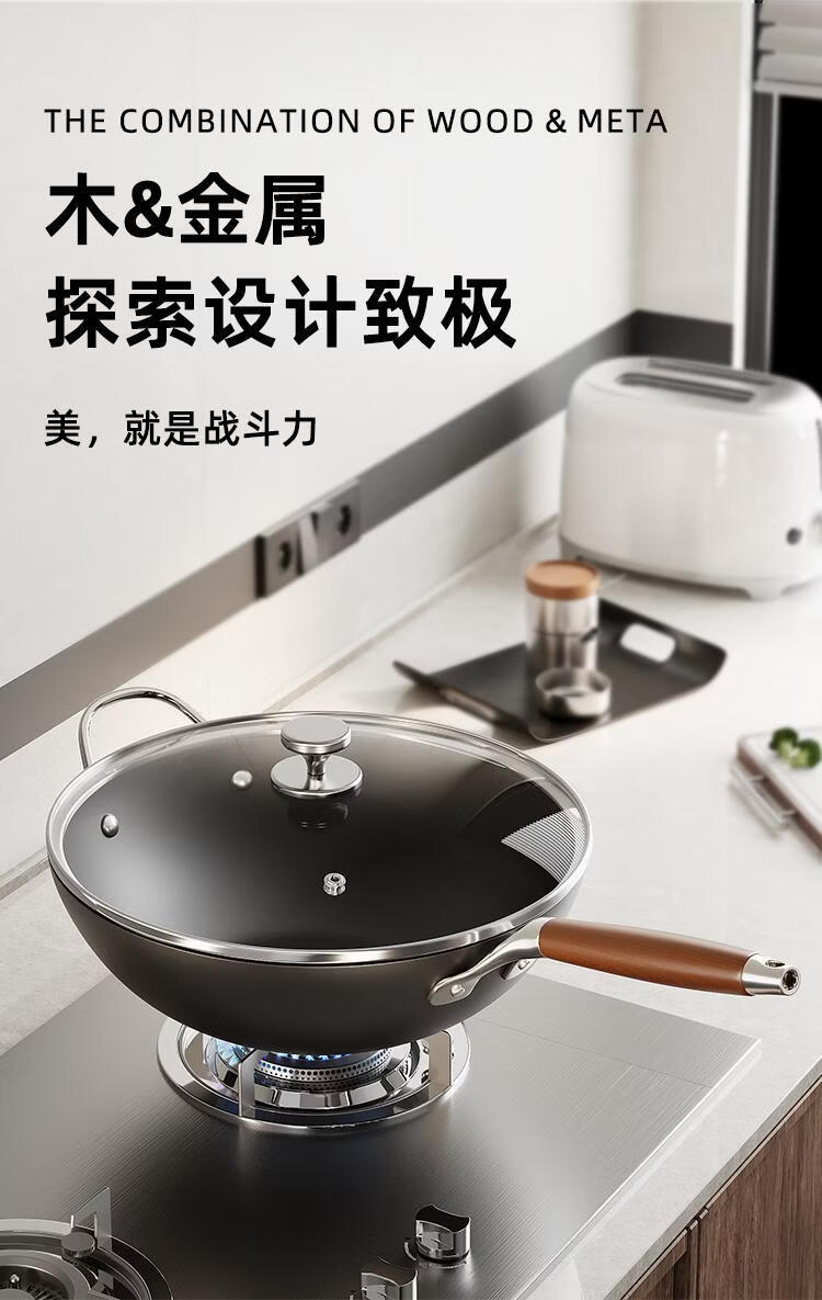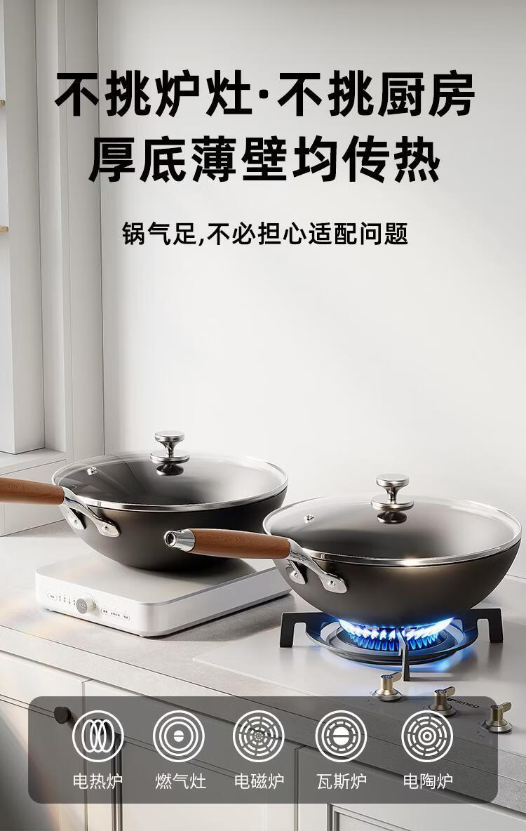 OCMOGO日本品牌0涂层极铁炒锅多功能炒菜锅家用平底爆炒锅通用炉灶通用 0涂层炒锅【带盖】 28cm