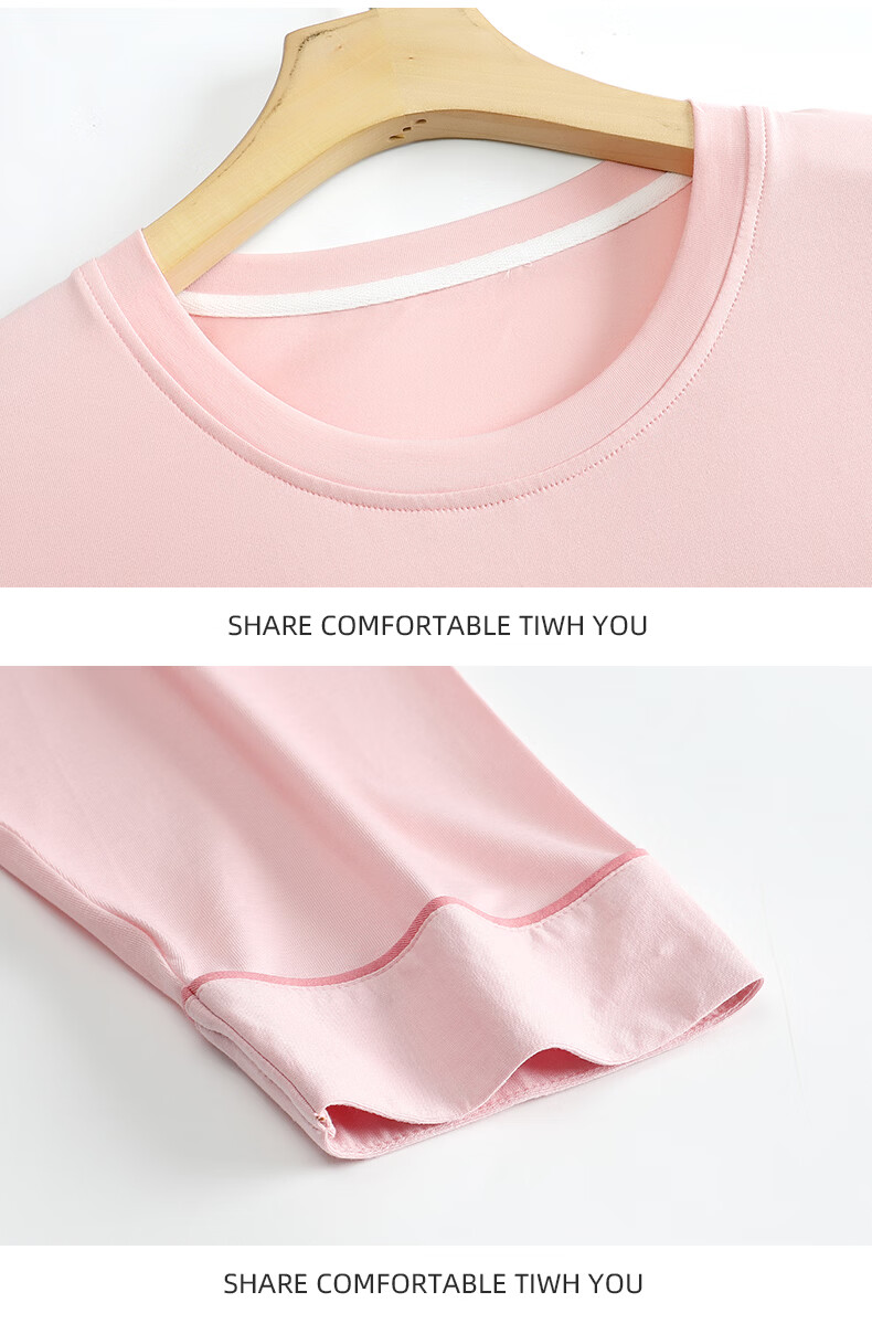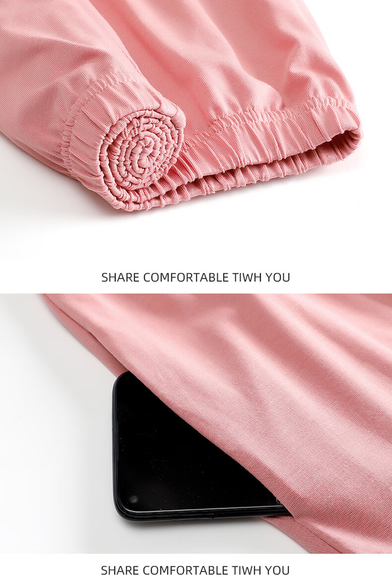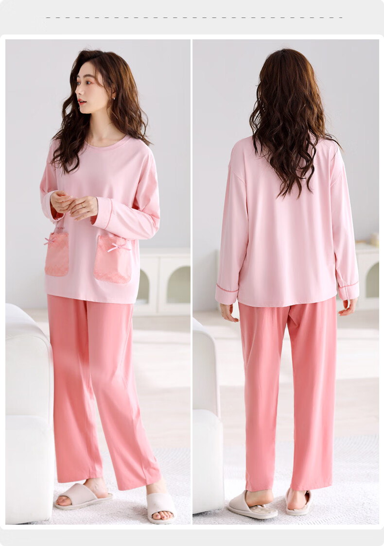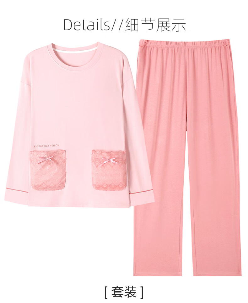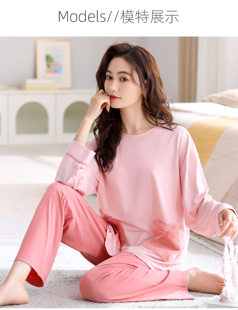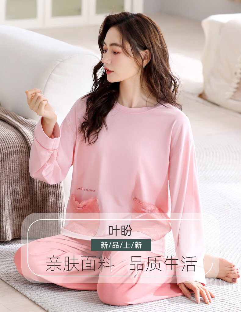 叶盼(yepan)【柔软】睡衣女春秋季莫代尔长袖宽松大码夏季薄款女士家居服套装 4371-雾粉 M (160) :建议90-110斤穿着