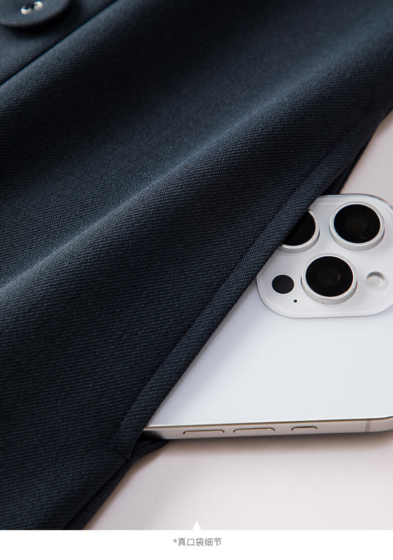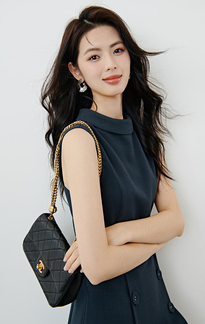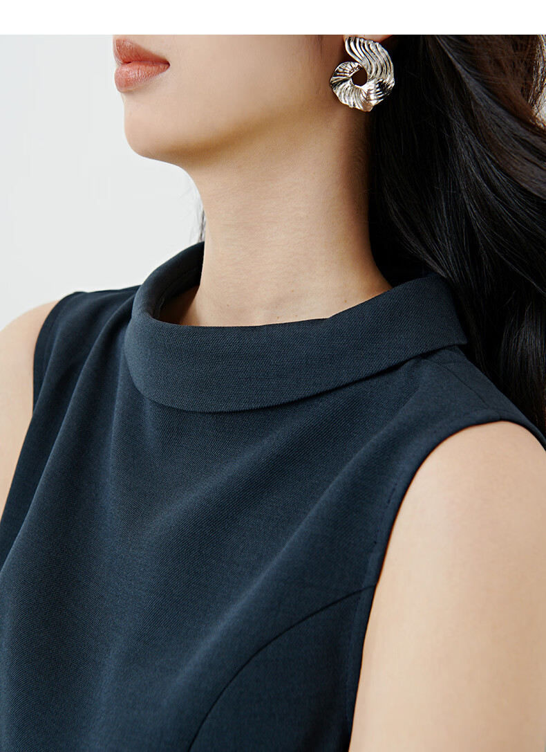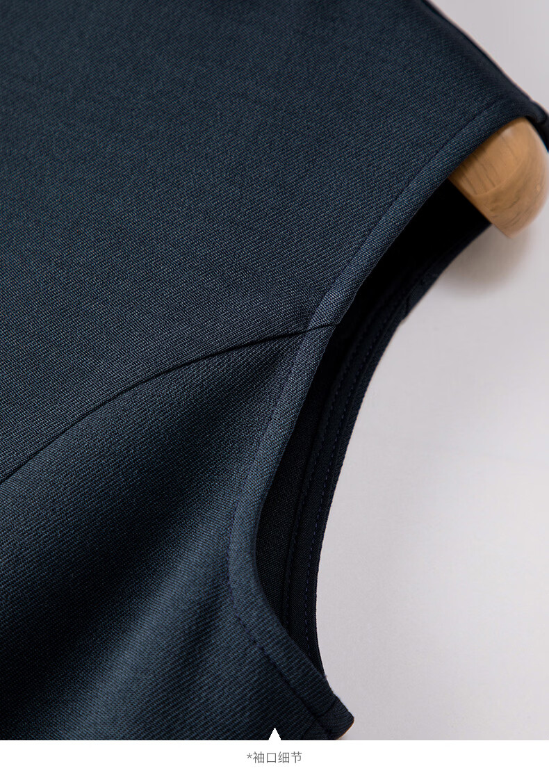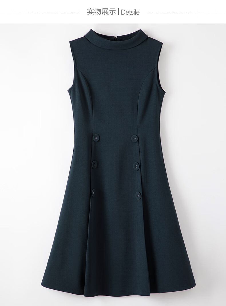晚白2026年春款气质立体兜兜领双排扣行政蓝小个子显高无袖连衣裙 深蓝色 M