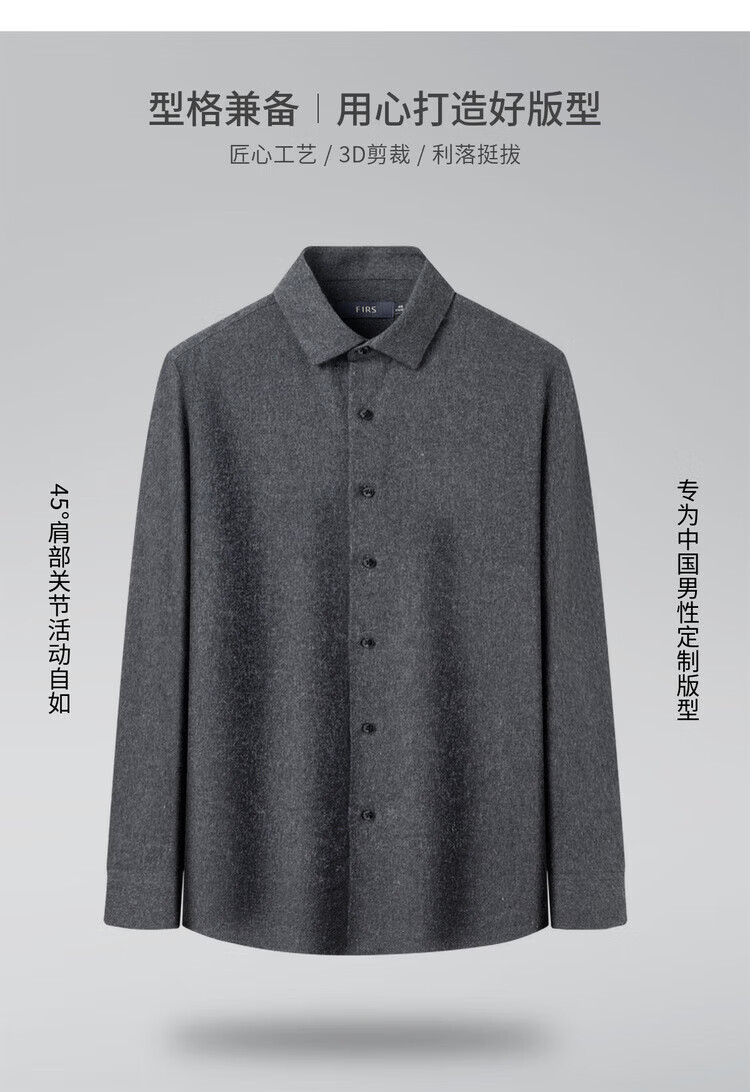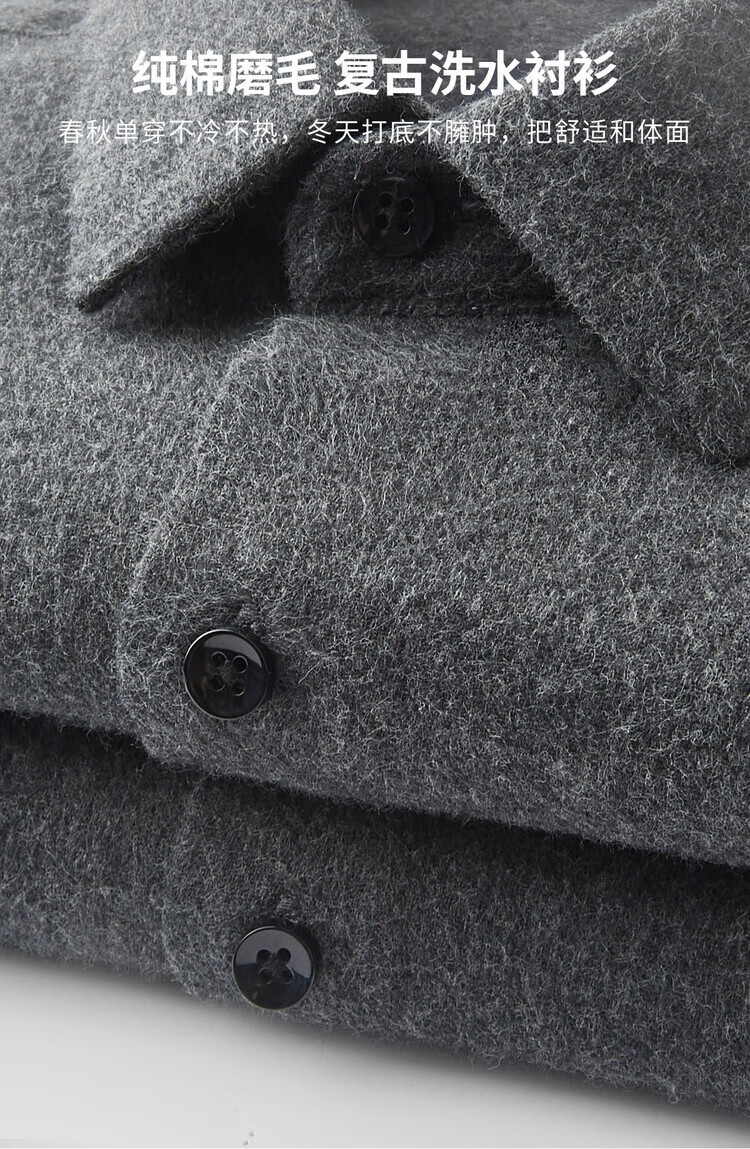 杉杉(FIRS)【100%棉】商务休闲2026春秋款纯棉加厚磨毛重磅免烫复古洗水衬衫 深灰 39 170/88A(39)