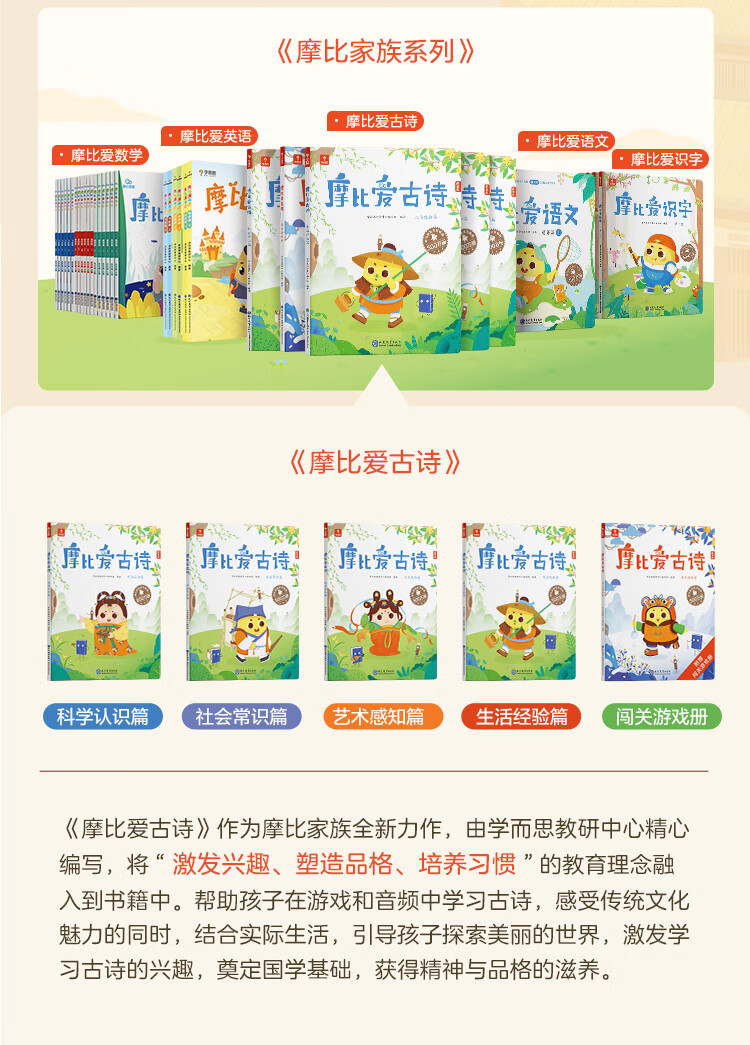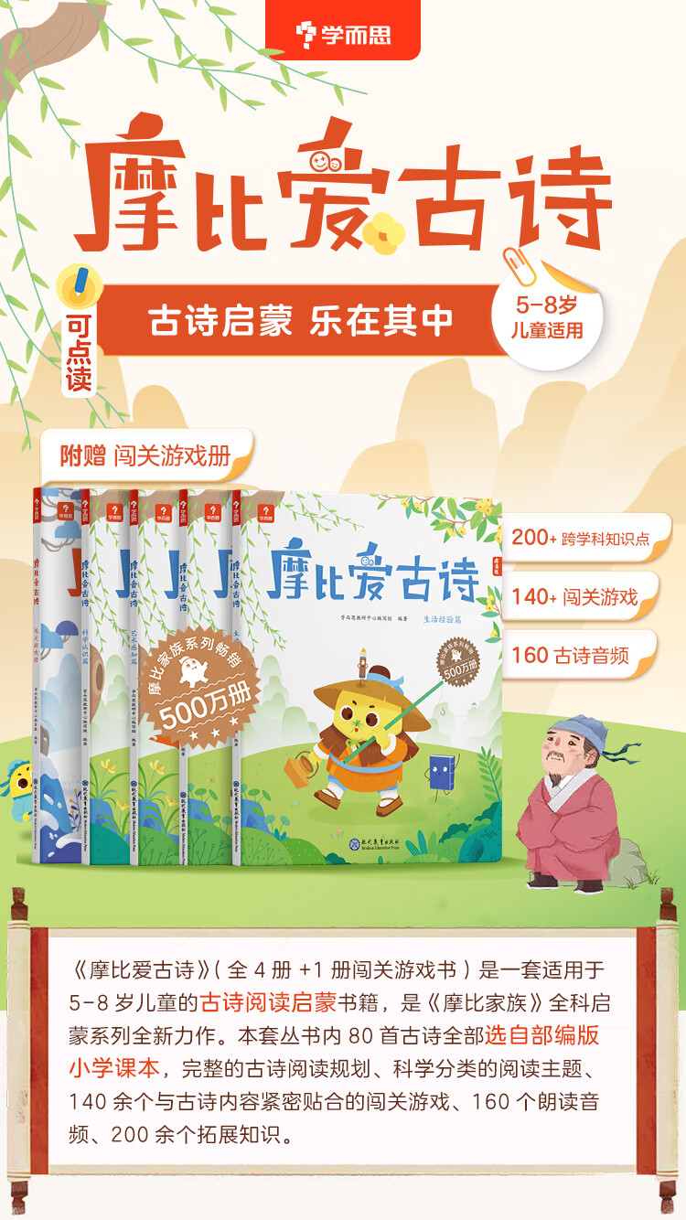 【当当】当当学而思 摩比爱古诗全4册+1册闯关游戏书 适用于5-8岁故事阅读启蒙 可点读 80首经典古诗词 140+闯关游戏 160个朗读音频 200+拓展知识 全彩漫画插图