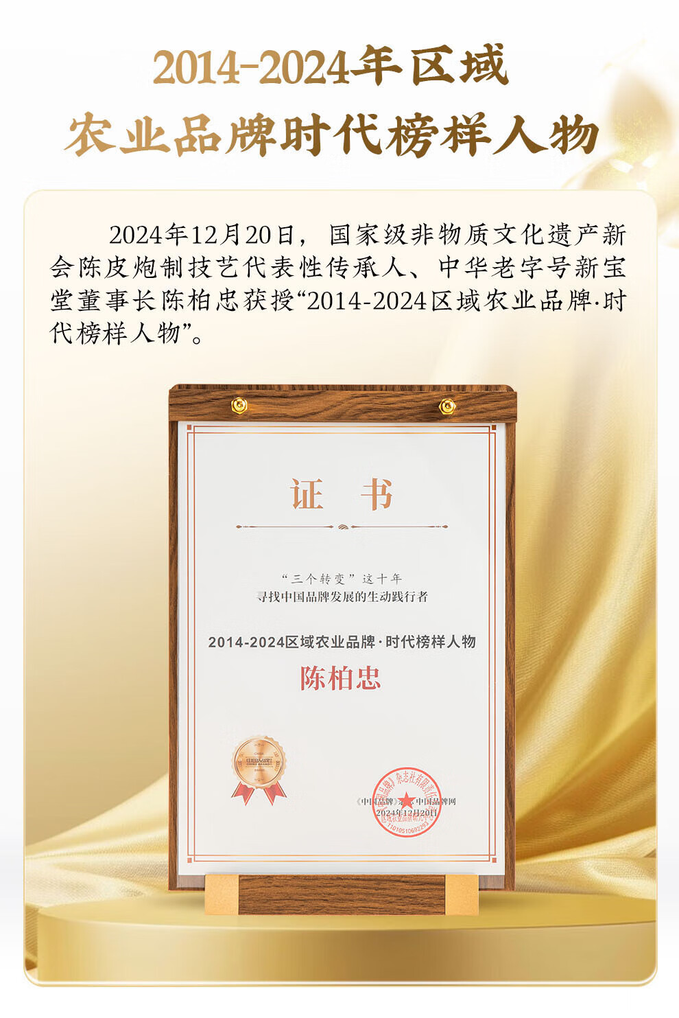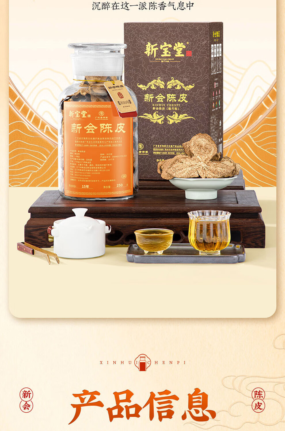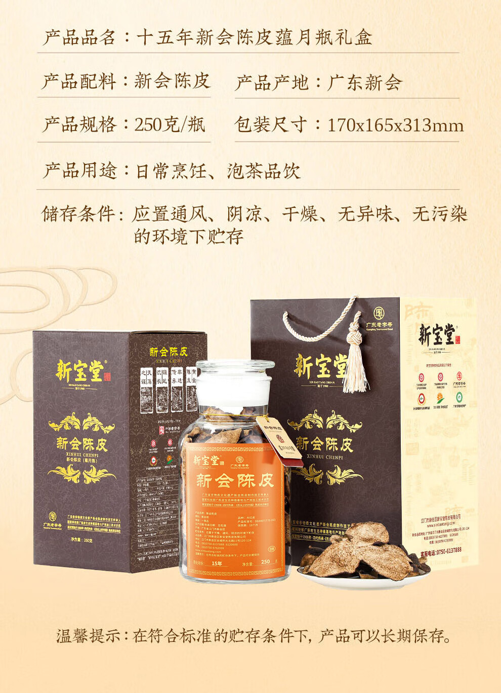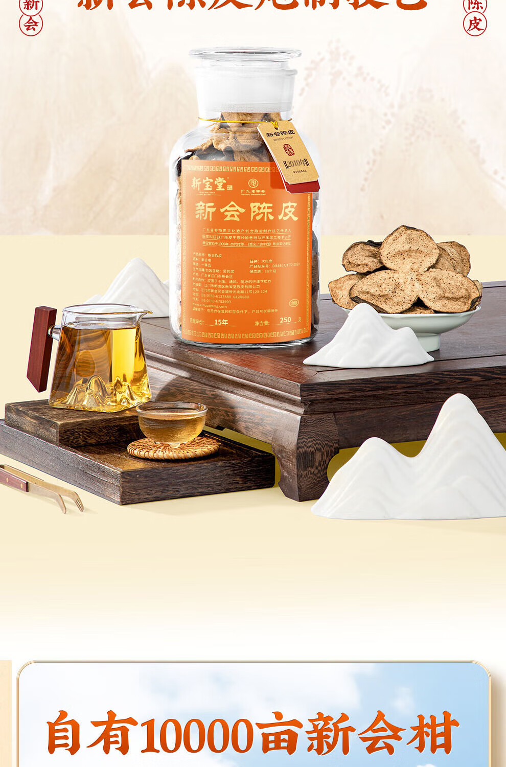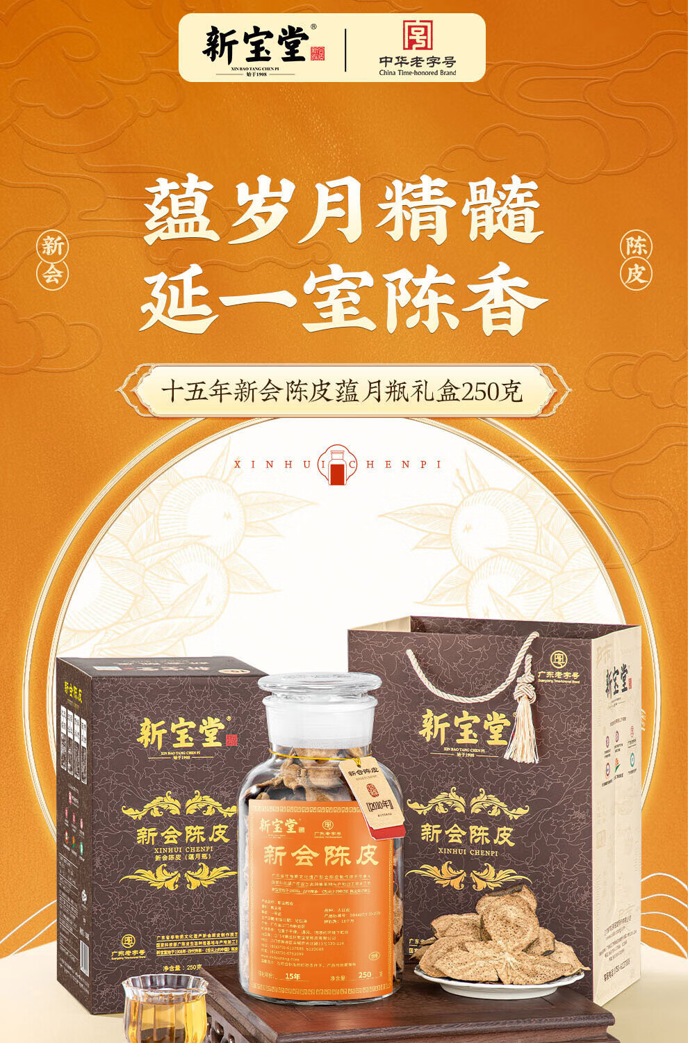 岭南新宝堂新会陈皮蕴月玻璃瓶15年陈皮送礼养生茶礼盒250克元宵节礼盒