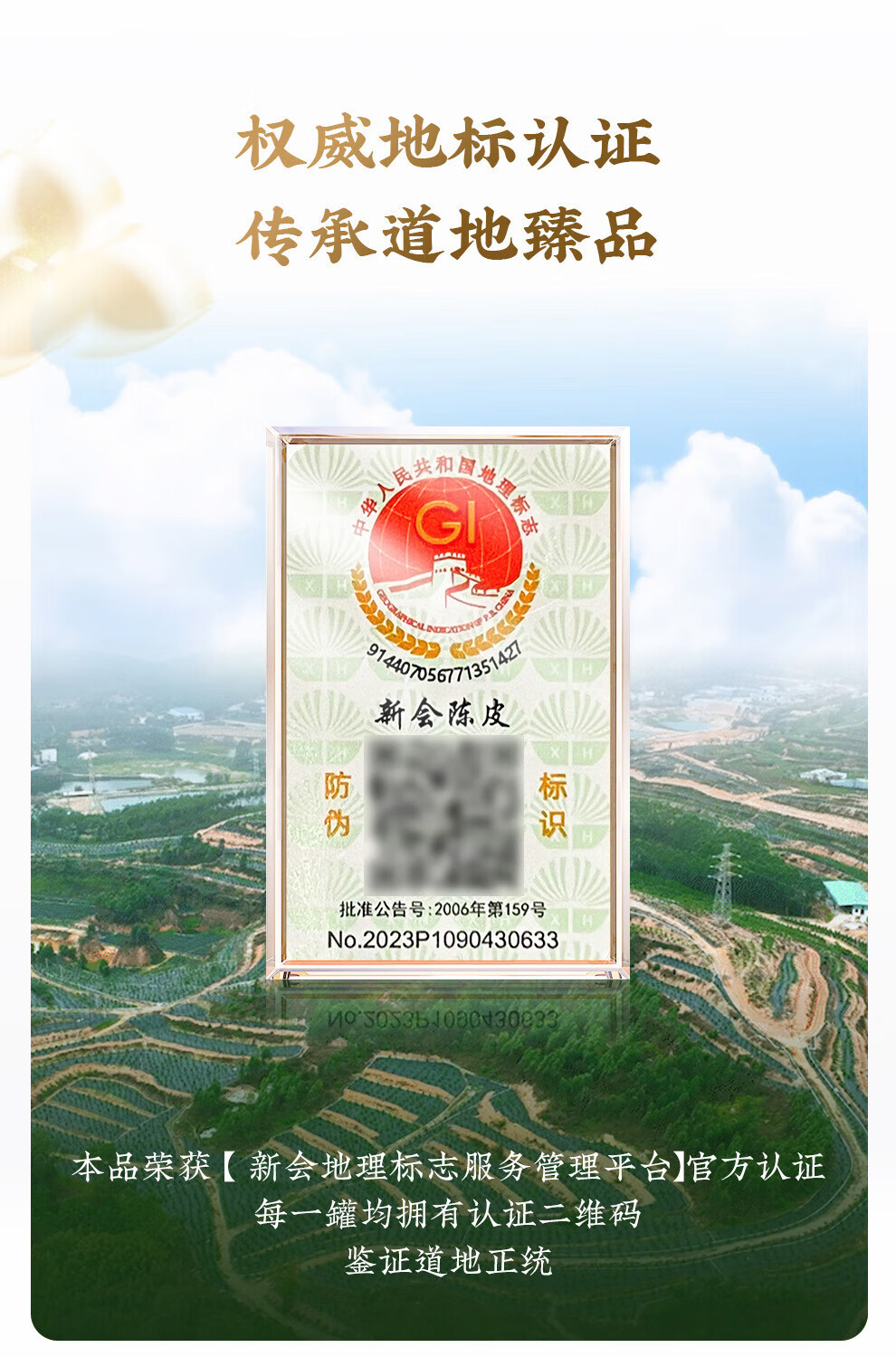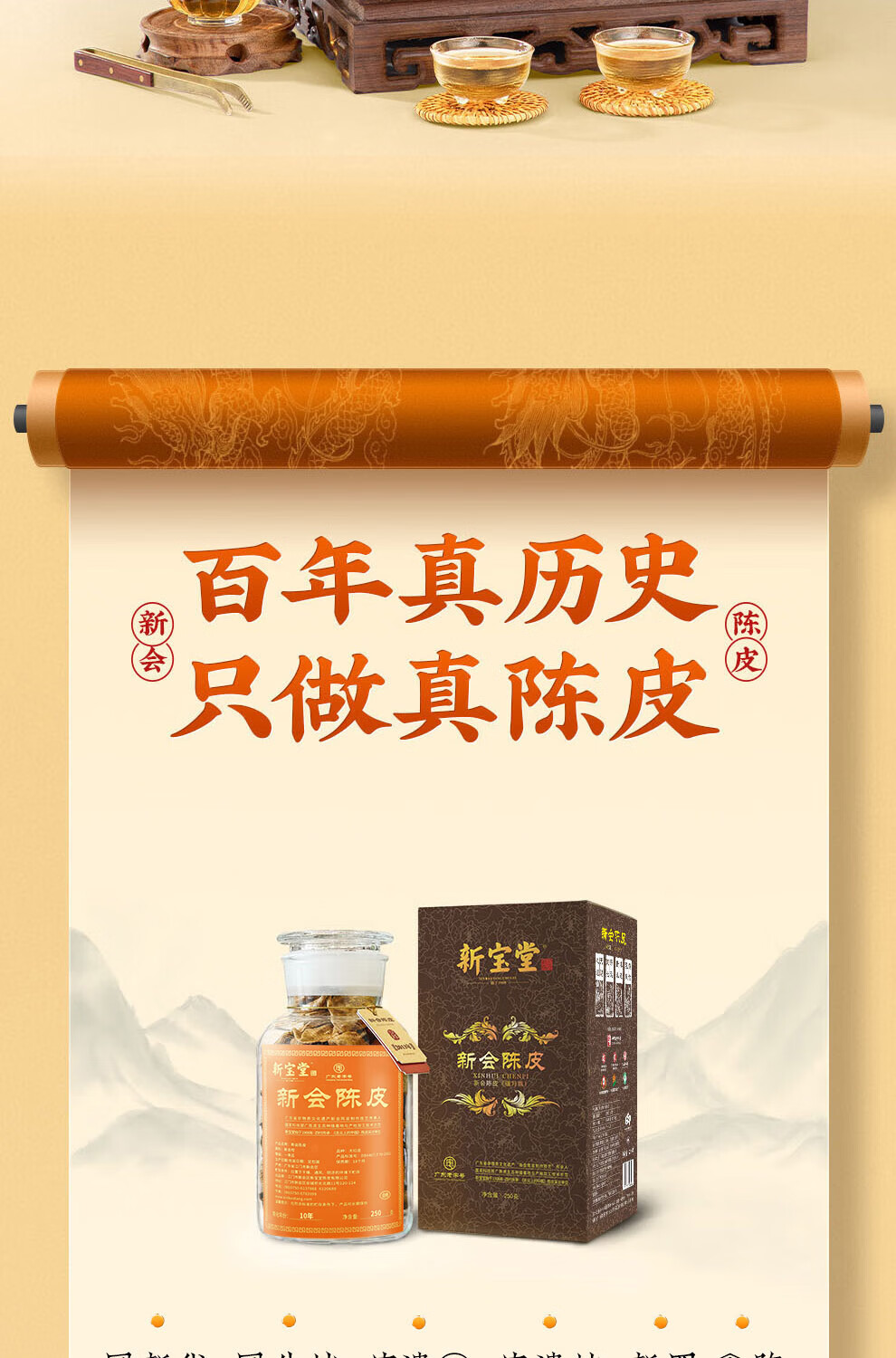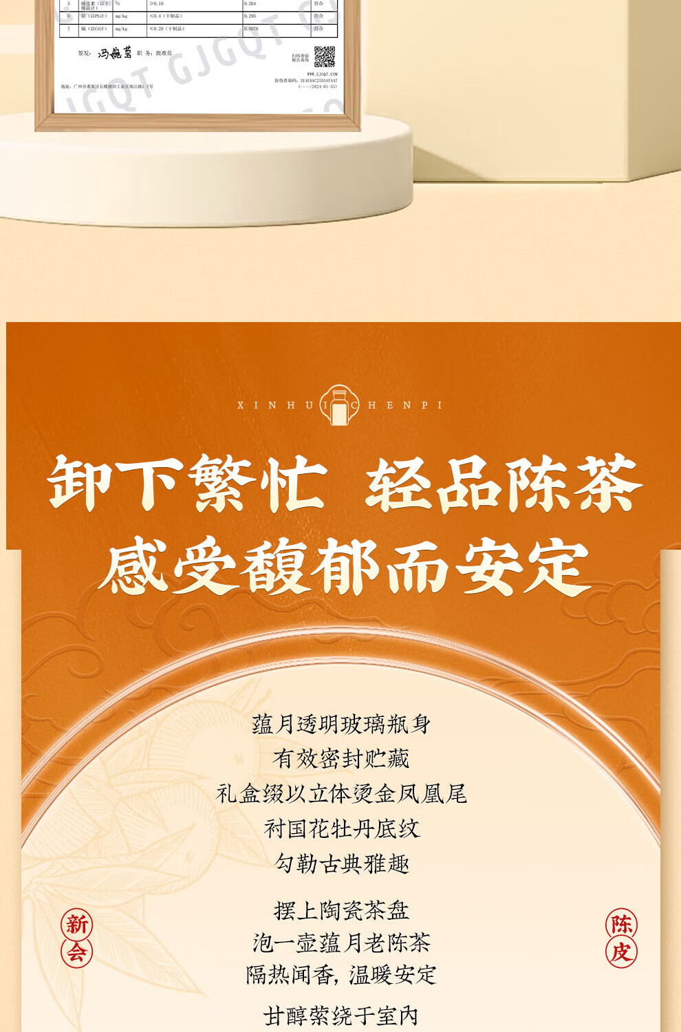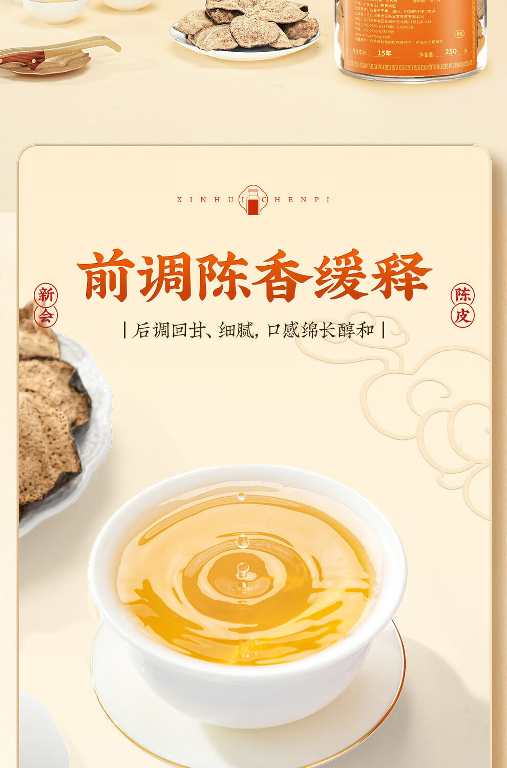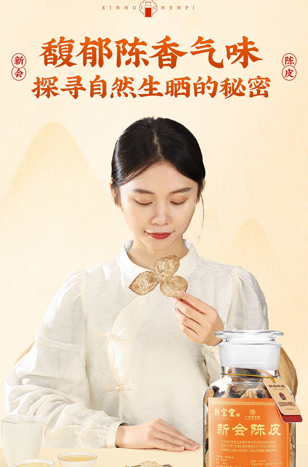 岭南新宝堂新会陈皮蕴月玻璃瓶15年陈皮送礼养生茶礼盒250克元宵节礼盒