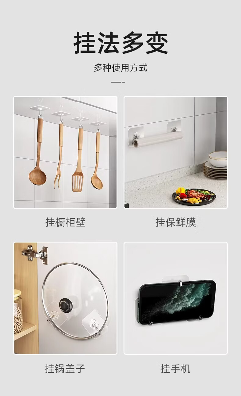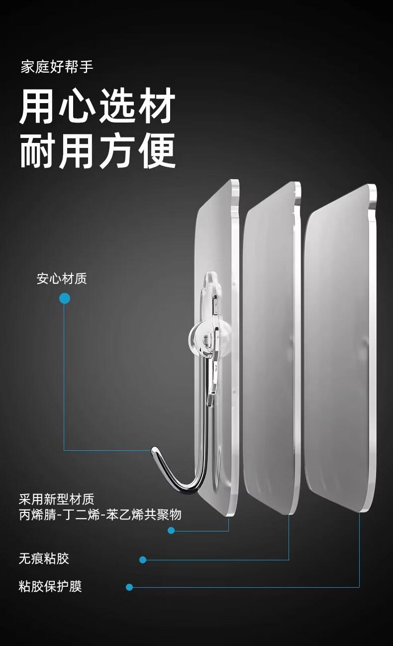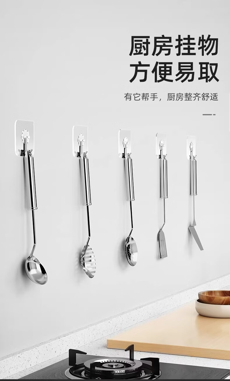 加度 强力粘胶免打孔承重无痕厨房墙壁挂粘钩卫生间门后挂衣钩神器 【黑色进口胶贴】不锈钢大挂钩5个装
