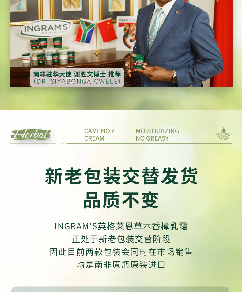 INGRAM'S南非小绿膏脚后跟干裂手部足部修护霜滋润保湿补水皴裂膏官方正品 150ml