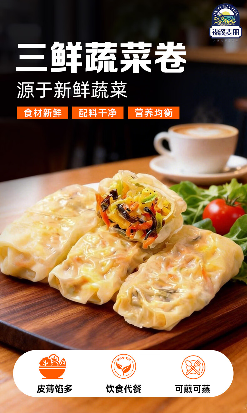 锦溪麦田薄皮三鲜蔬菜卷蒸煎包子学生早餐加热即食减脂代餐速食半成品卷饼 【2袋 共20个】三鲜蔬菜卷360g/袋