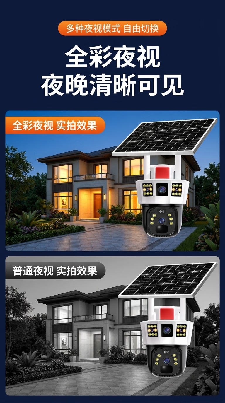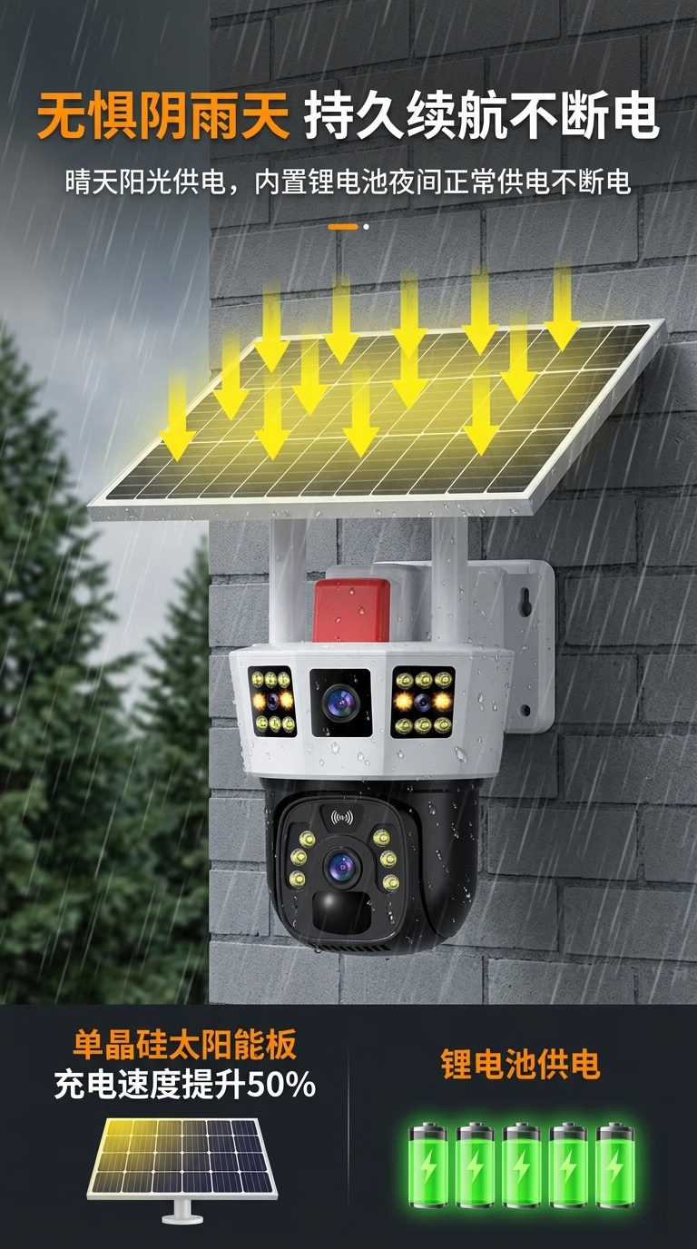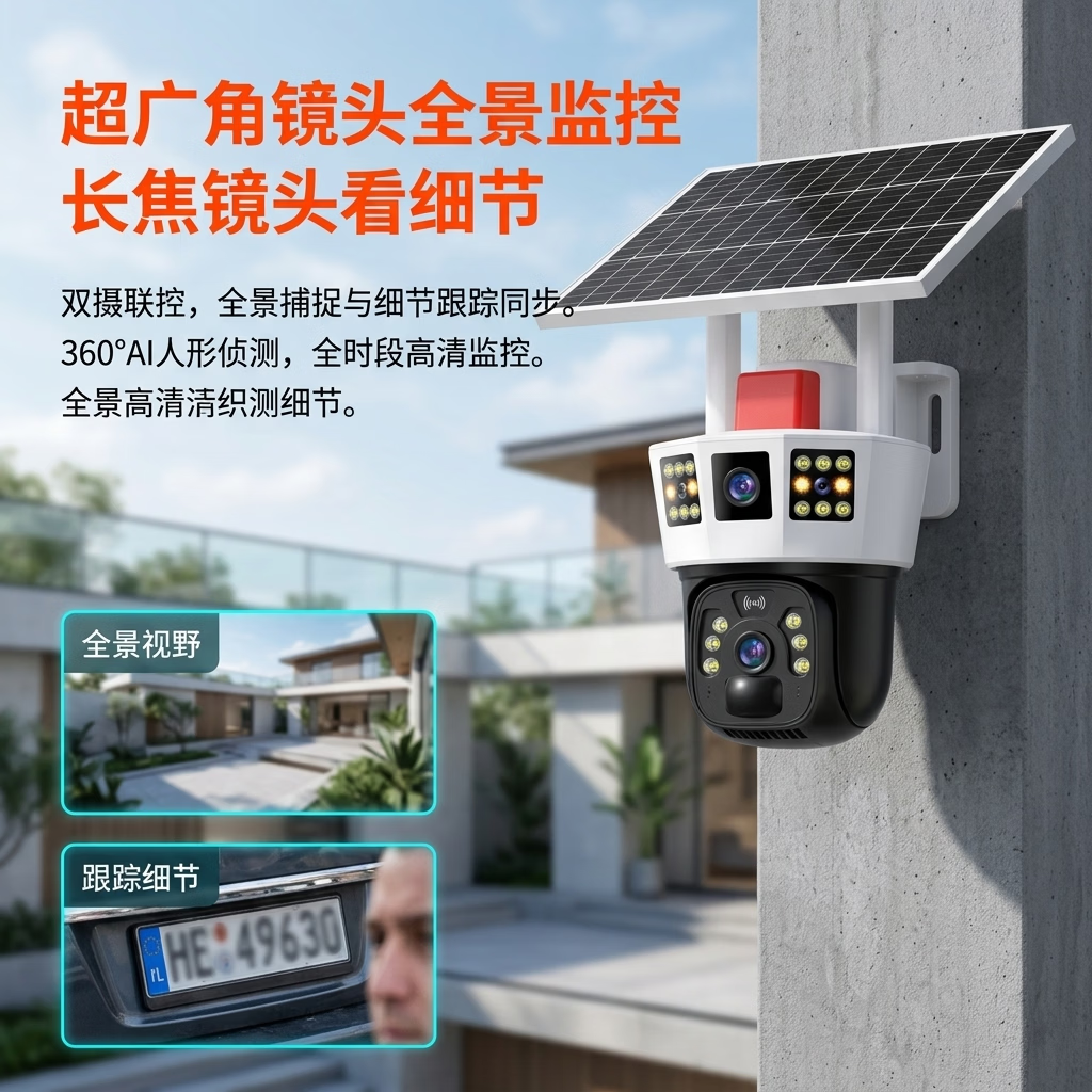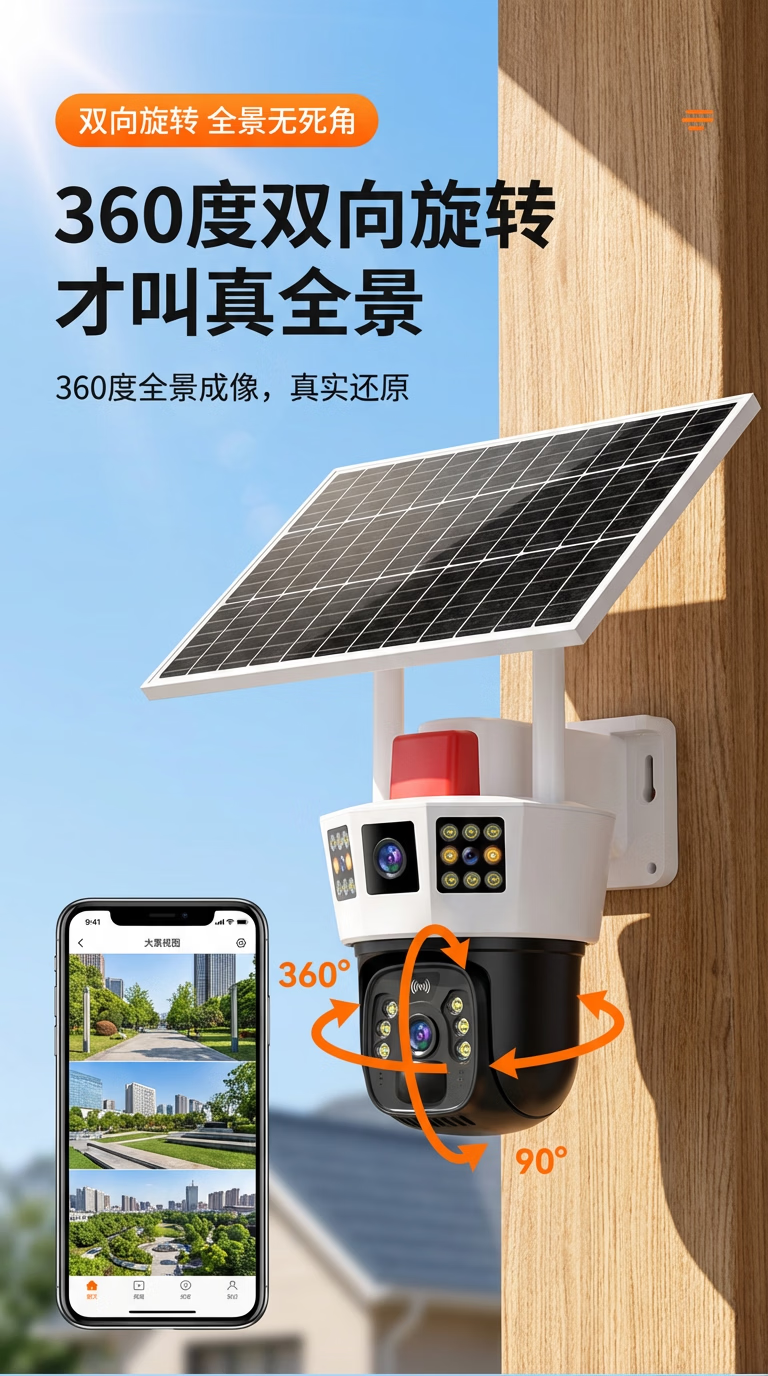 康视方4G5G太阳能监控无电无网户外AOV三画面旋转终身免流量高清摄像头家用360度无死角带夜视全景室外 5G三画面双太阳能板【终身免流量】 超高清+终身免流+30天循环回放+手机远程双向语音