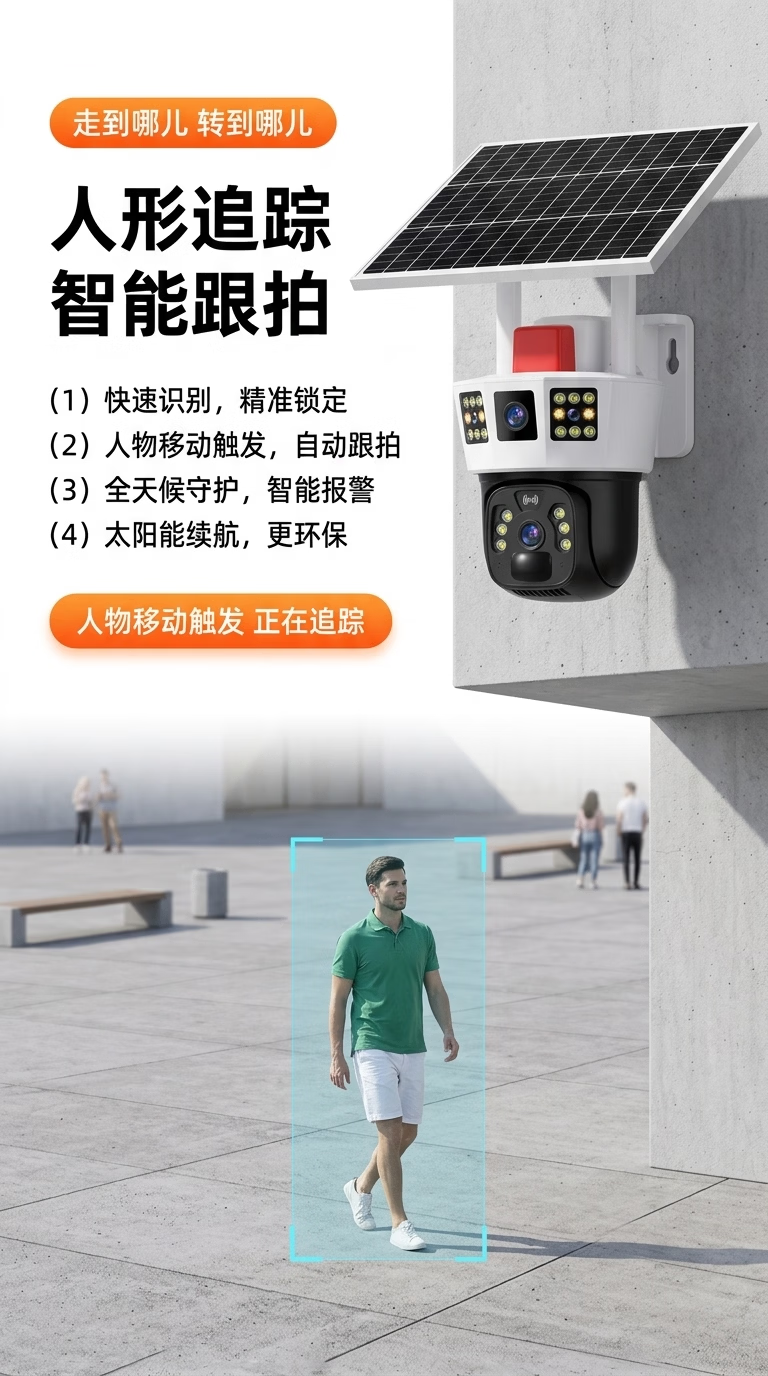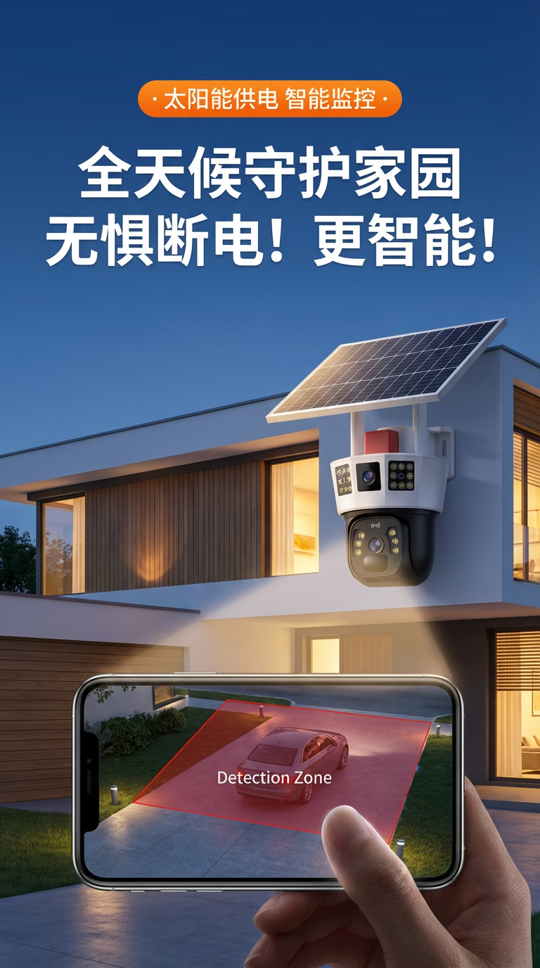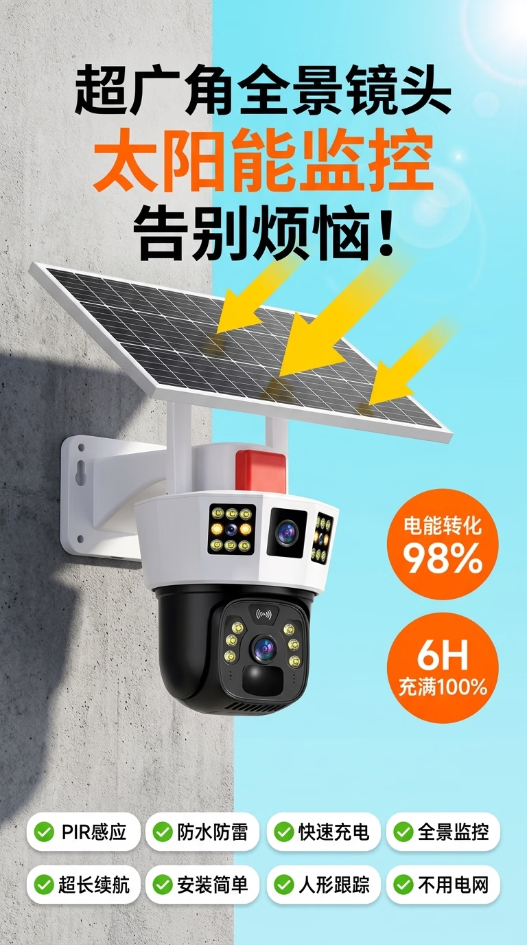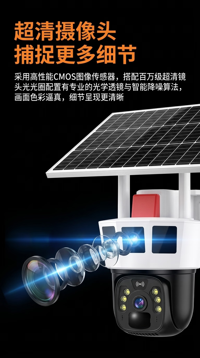 康视方4G5G太阳能监控无电无网户外AOV三画面旋转终身免流量高清摄像头家用360度无死角带夜视全景室外 5G三画面双太阳能板【终身免流量】 超高清+终身免流+30天循环回放+手机远程双向语音