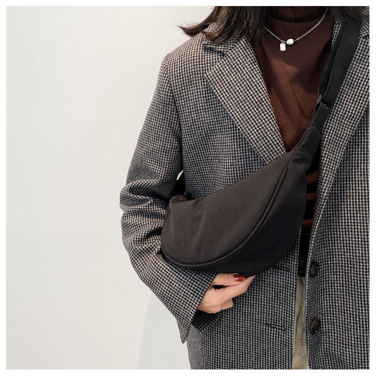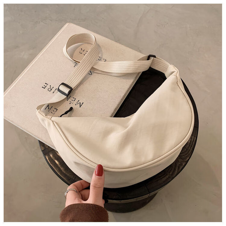 【甄选直发】尼龙斜挎包包女2023新款潮饺子包轻便小挎包腋下包简 浅米白色 标准