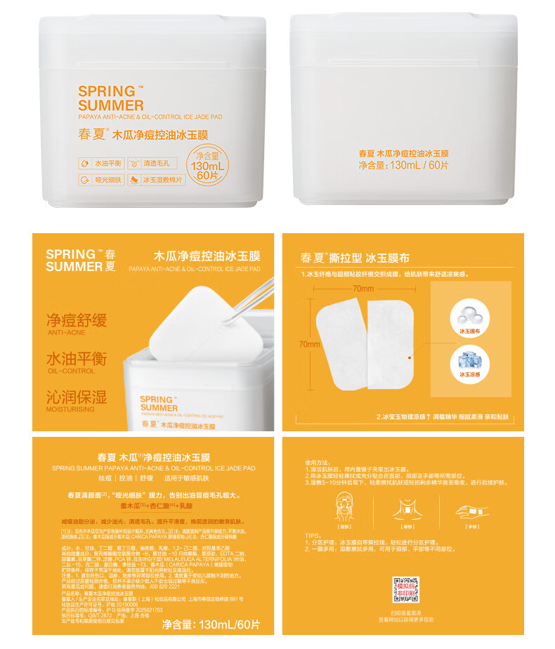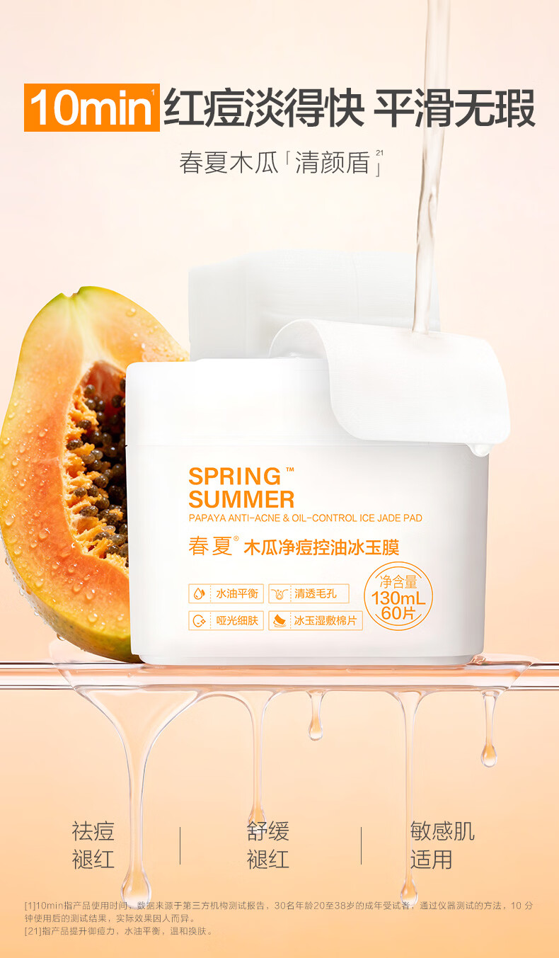 春夏积雪草特护冰玉膜舒缓修护柚果补水保湿紧致毛孔 木瓜冰玉膜(祛痘控油)