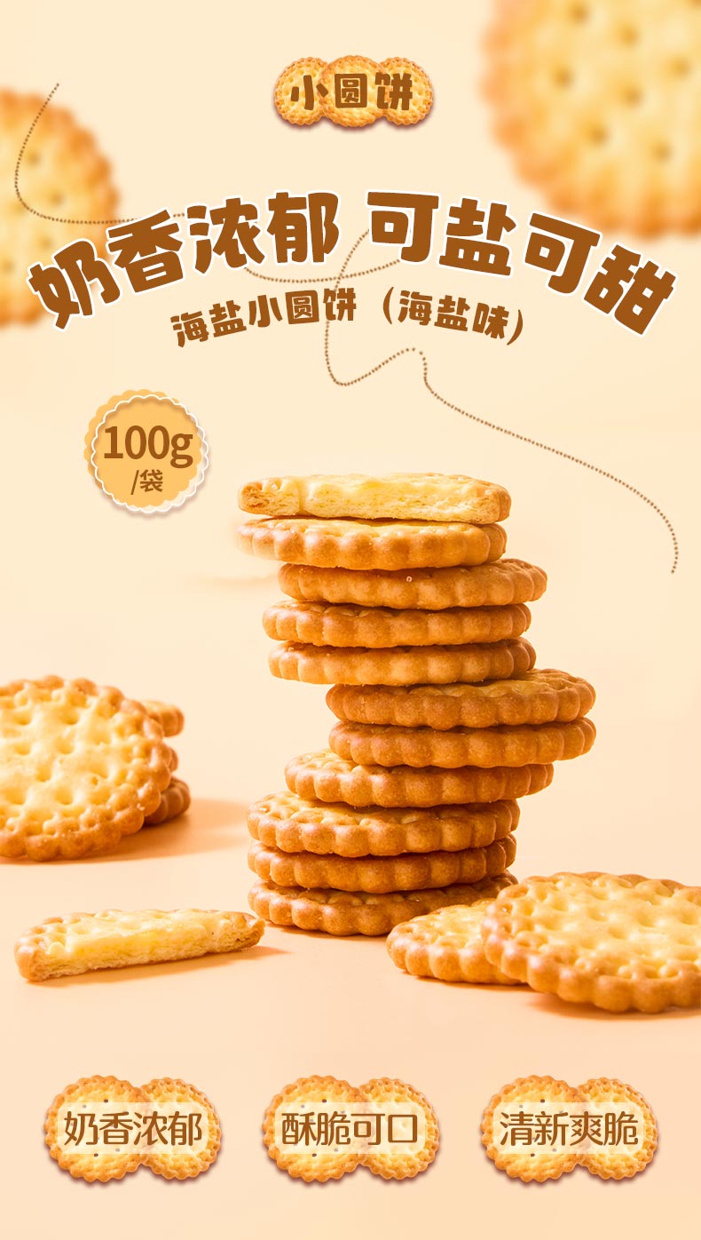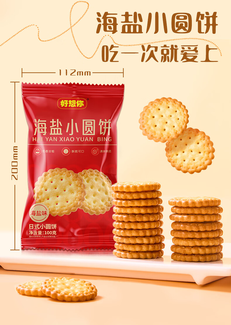 好想你_饼干 早餐代餐海盐薄脆饼干烘焙点心休闲下午茶零食小吃 小圆饼干100g*6
