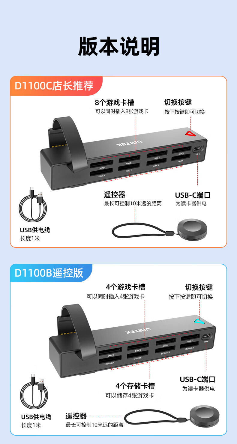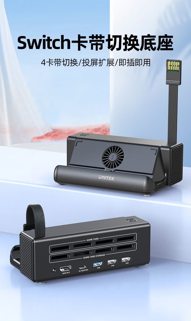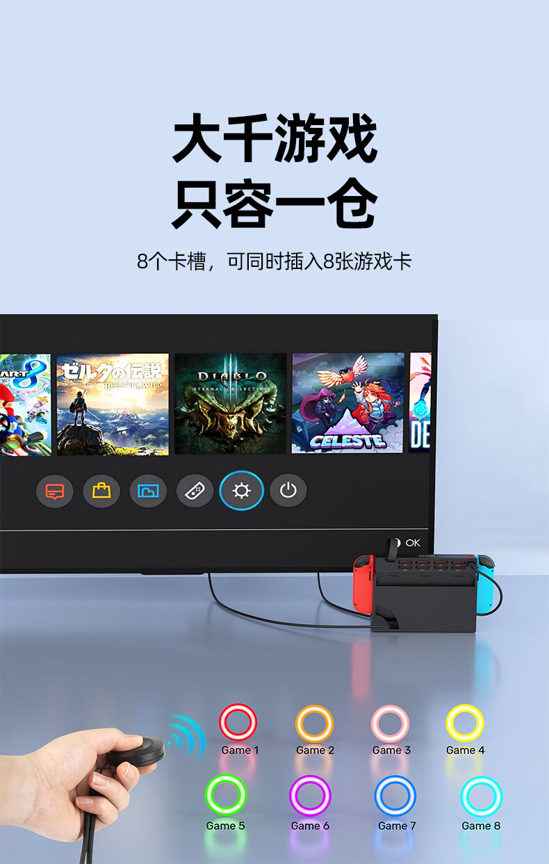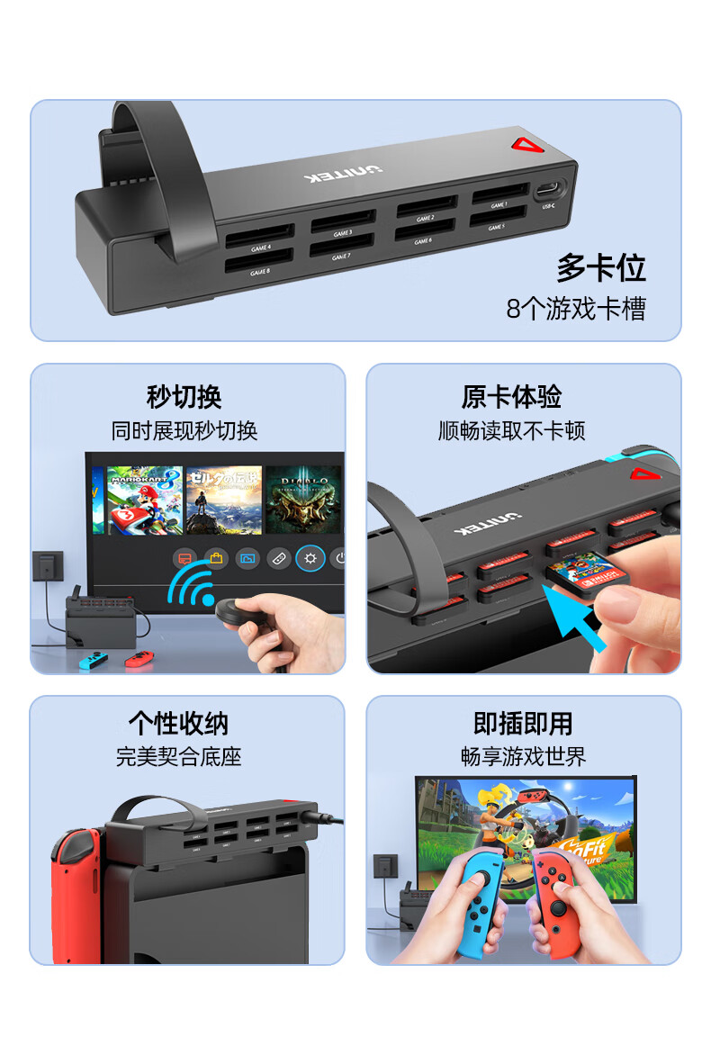 优越者Switch游戏卡带切换器多卡槽扩展坞高速无线遥控适用ns游戏机外接读取游戏卡多合一拓展多卡切换 【 无线遥控版】8张游戏卡槽 D1100C