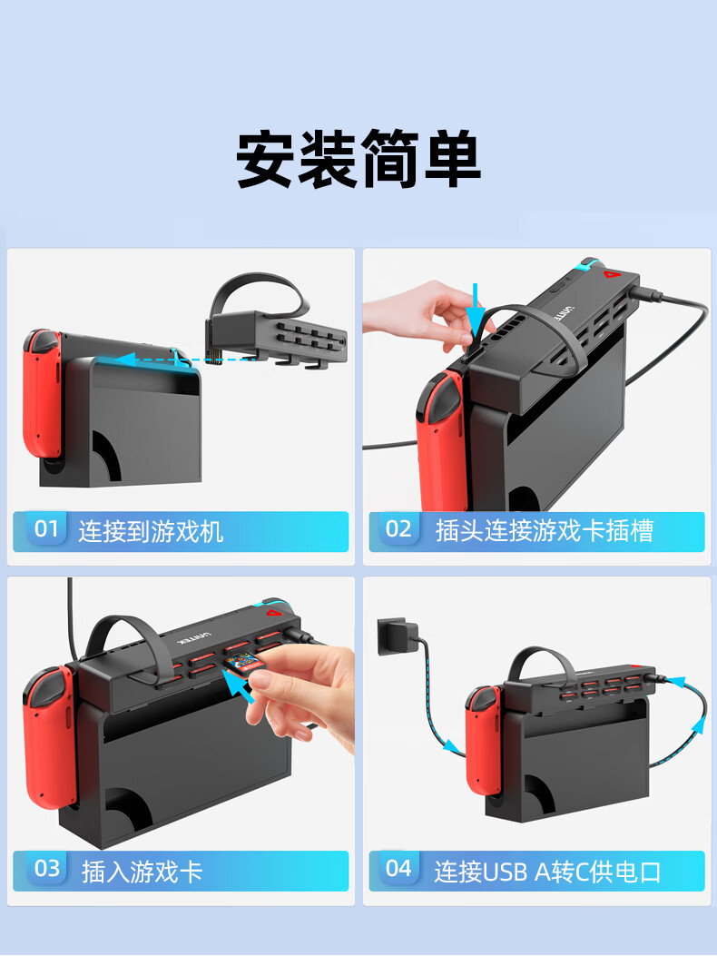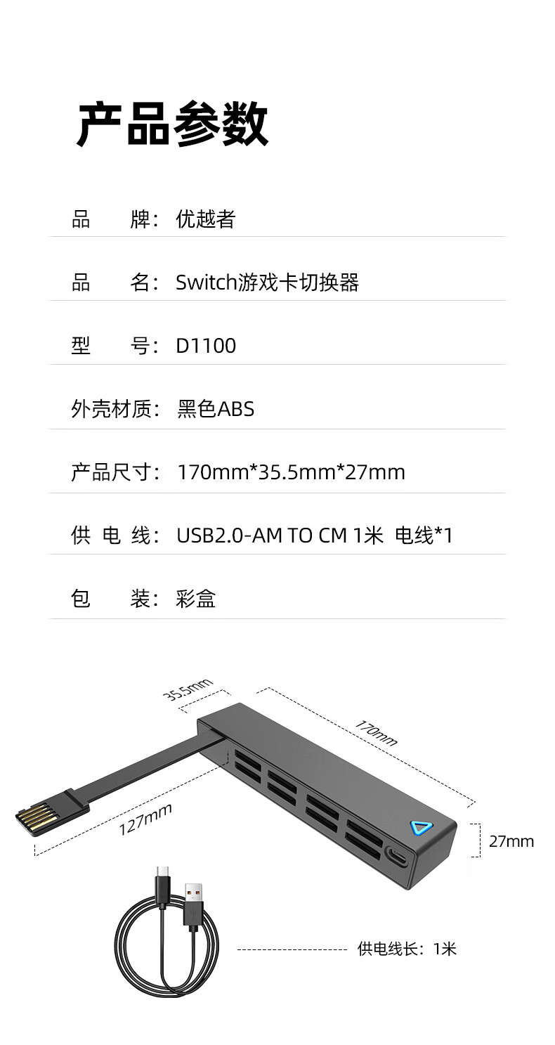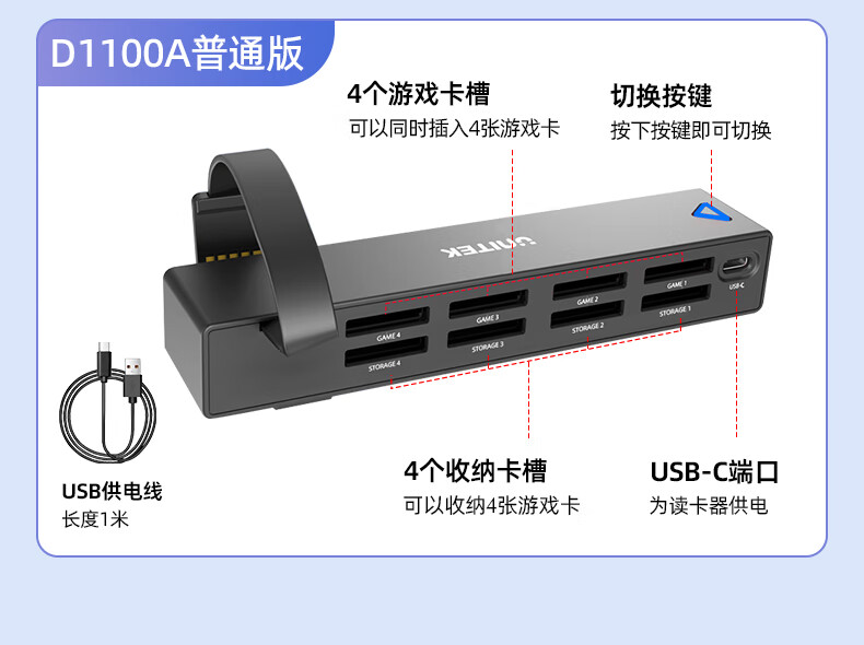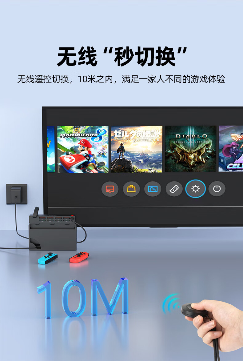 优越者Switch游戏卡带切换器多卡槽扩展坞高速无线遥控适用ns游戏机外接读取游戏卡多合一拓展多卡切换 【 无线遥控版】8张游戏卡槽 D1100C