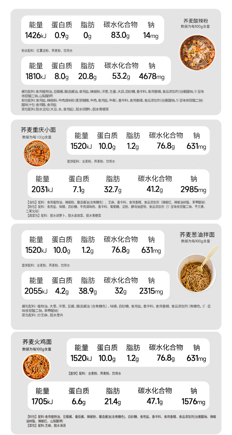 小鸡收腹荞麦面减方便面桶装带调料包0免煮食品健身脂泡面条肥代餐1070g