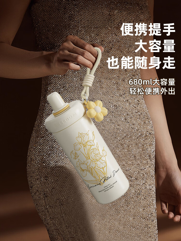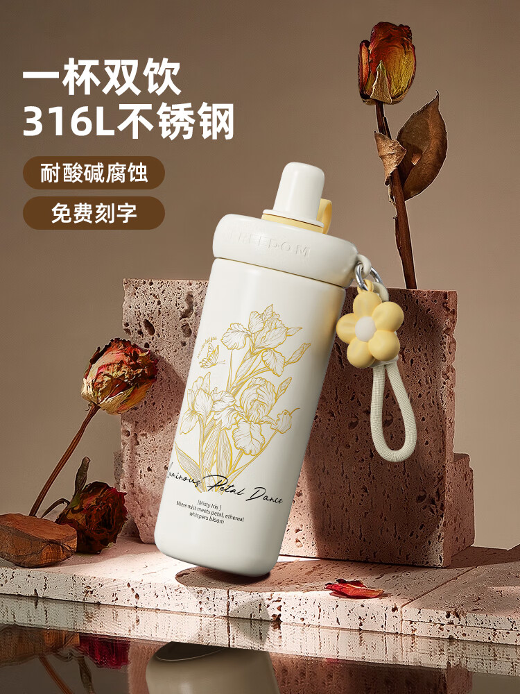 富光保温杯女生高颜值316L不锈钢便携新款大容量学生吸管咖啡杯水杯子 红色590ML