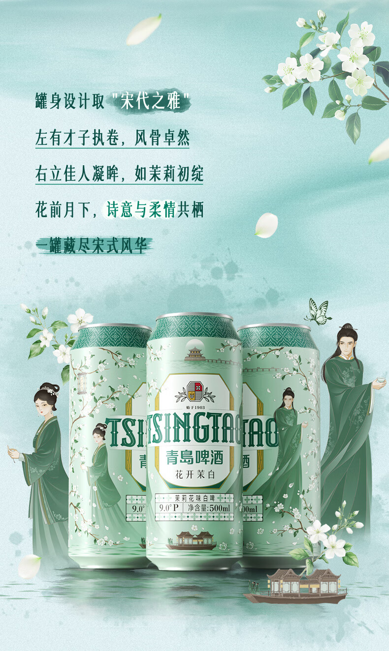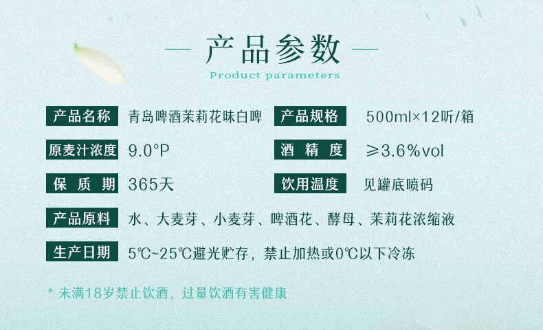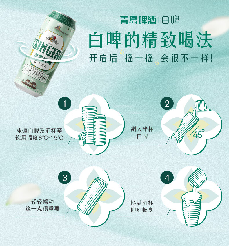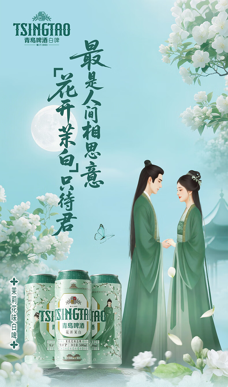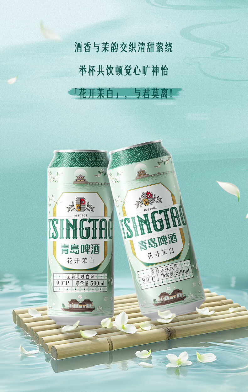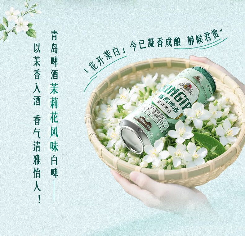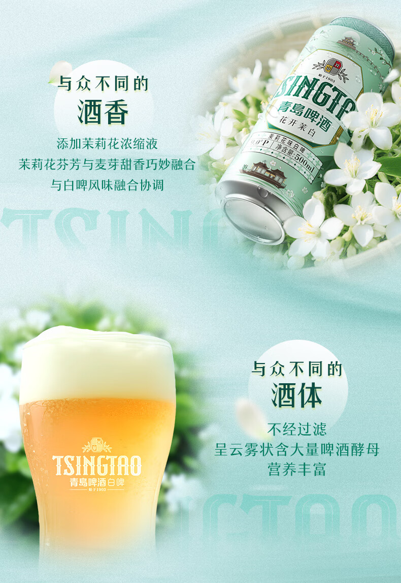 青岛啤酒(TsingTao)茉莉花味白啤 500ml*12听 整箱装