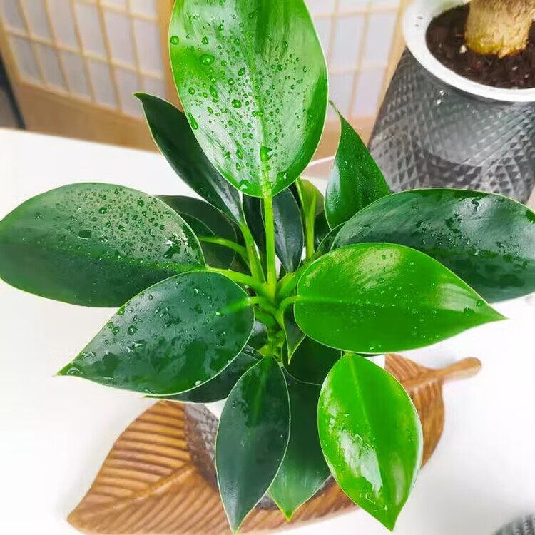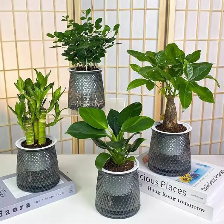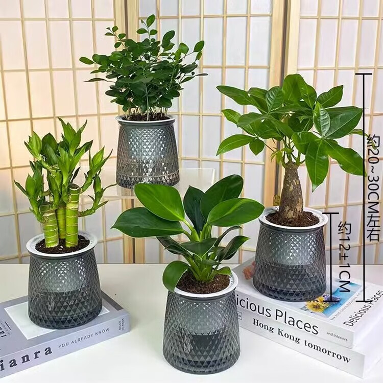 OYKTN办公室绿植桌面小盆栽水培客厅室内开花好养发财树绿萝办公桌花卉 金钻+灰透吸水盆 含盆