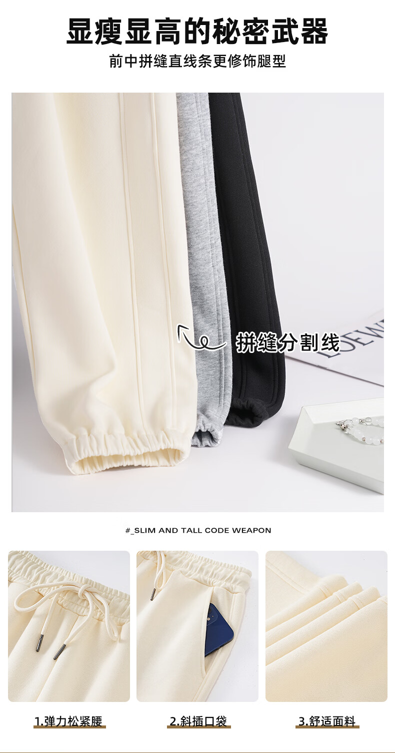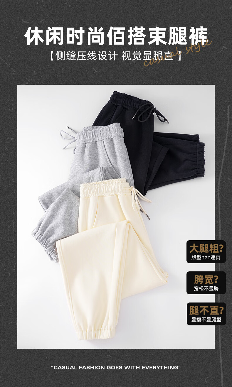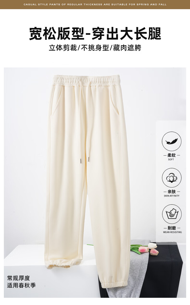 真维斯(Jeanswest)运动裤子女春秋季薄款束脚裤2026新款流行哈伦裤爆款休闲纯色卫裤 米色 纯色 S