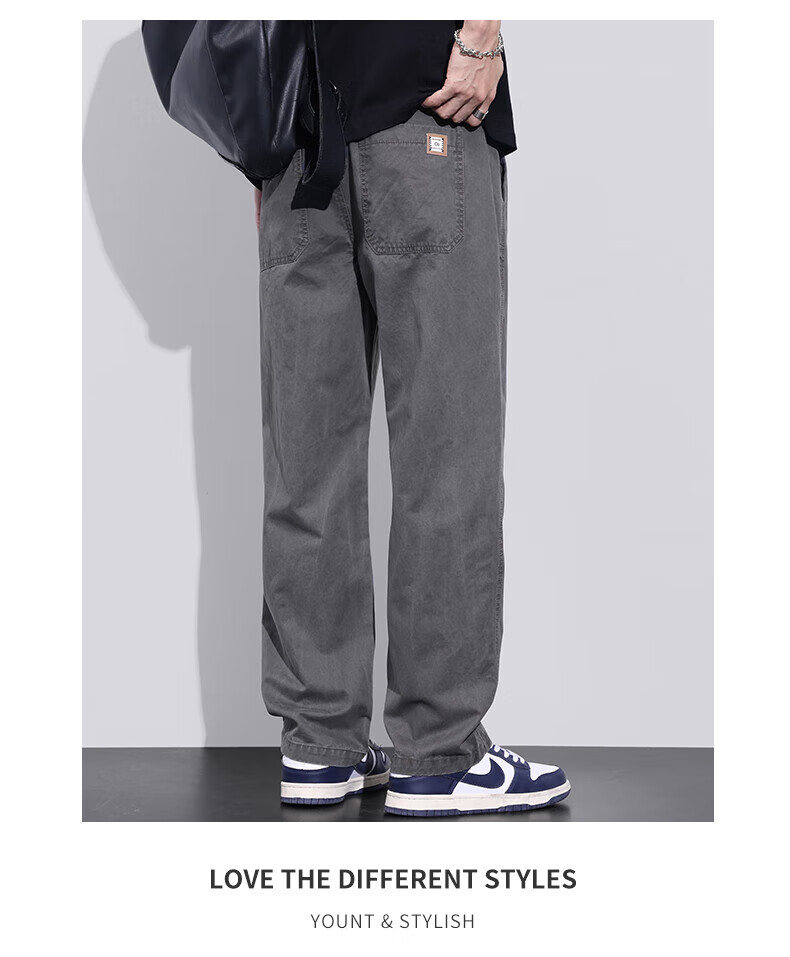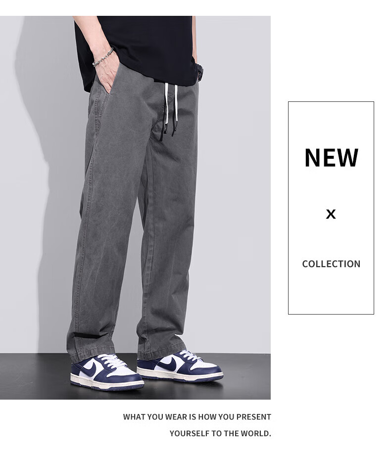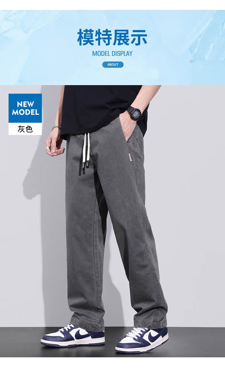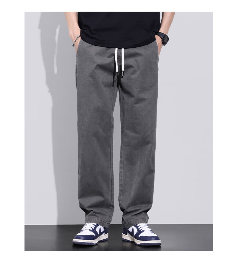 真维斯(Jeanswest)美式直筒休闲裤男2026春夏新款宽松垂感松紧腰工装纯棉长裤 灰色 【纯棉舒适】 S 【90-100斤】