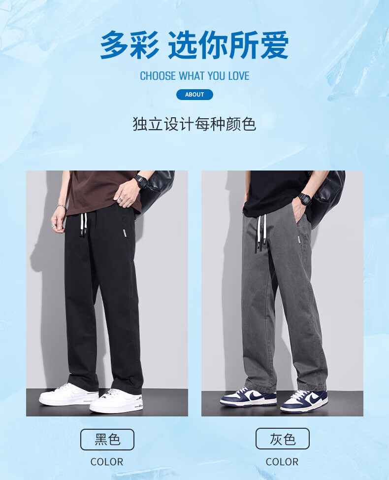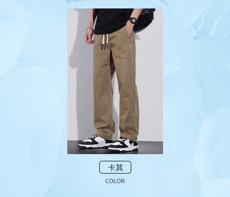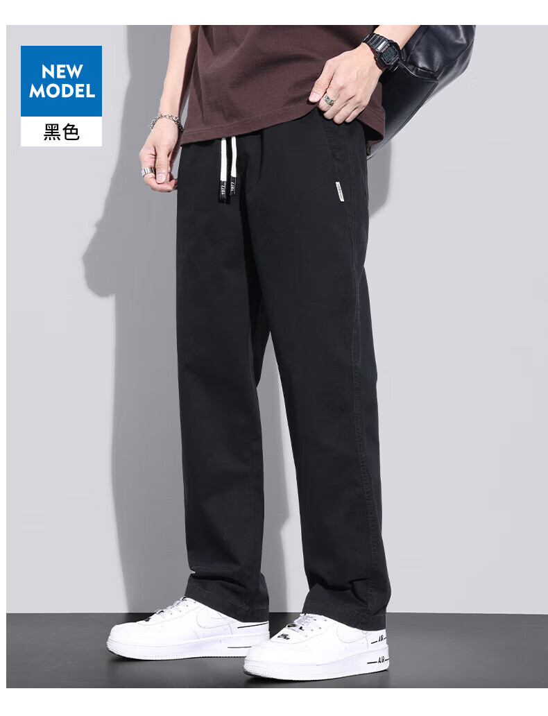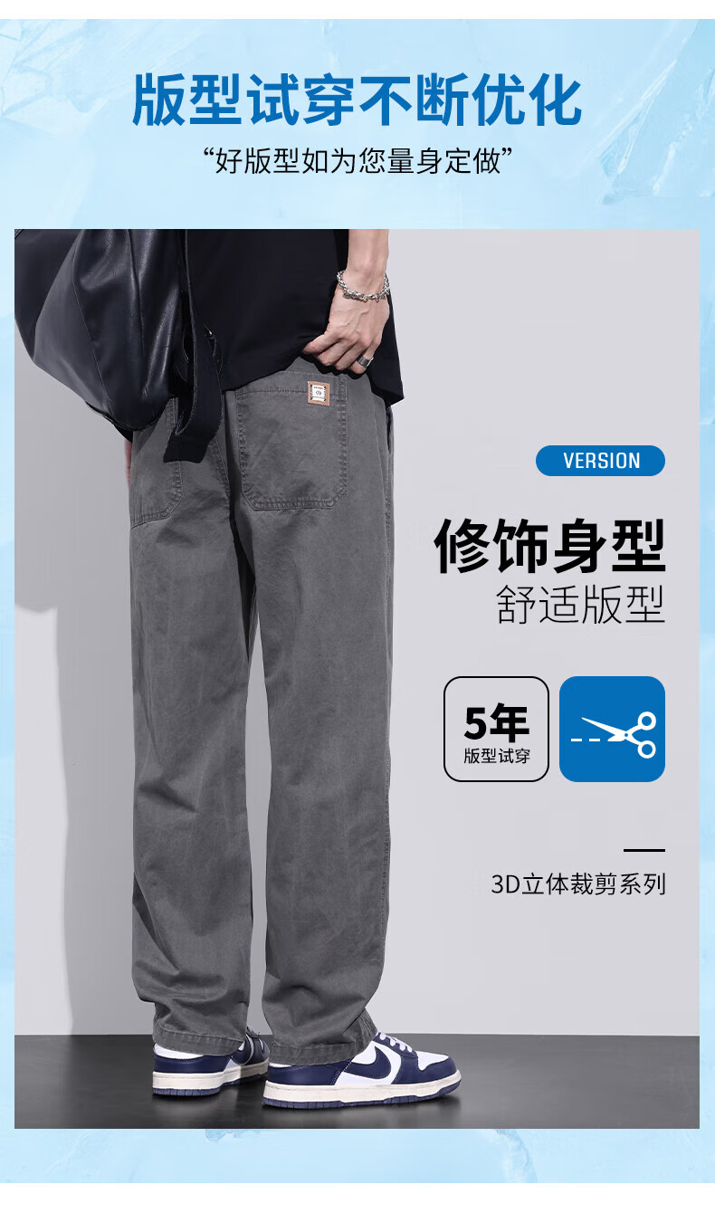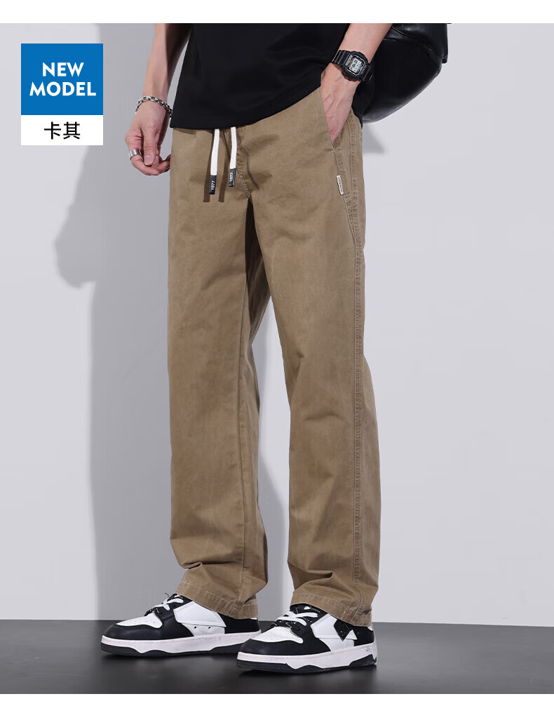 真维斯(Jeanswest)美式直筒休闲裤男2026春夏新款宽松垂感松紧腰工装纯棉长裤 灰色 【纯棉舒适】 S 【90-100斤】