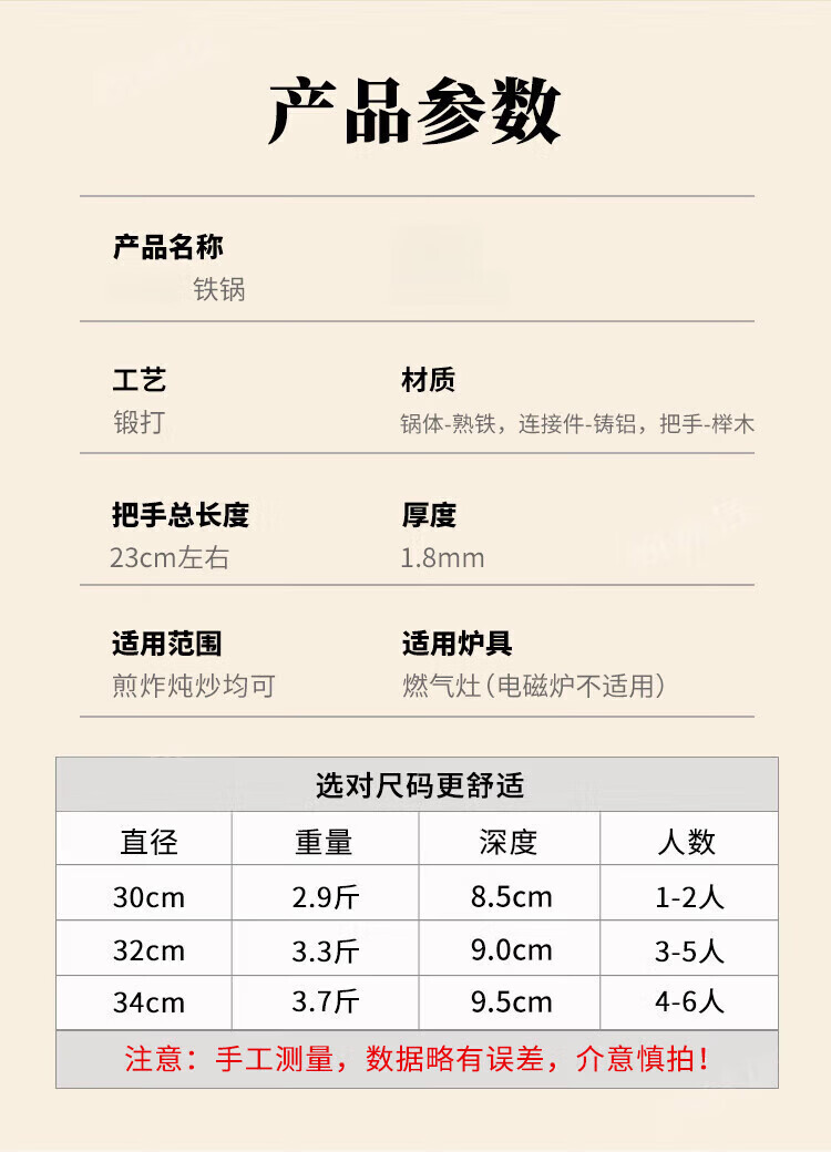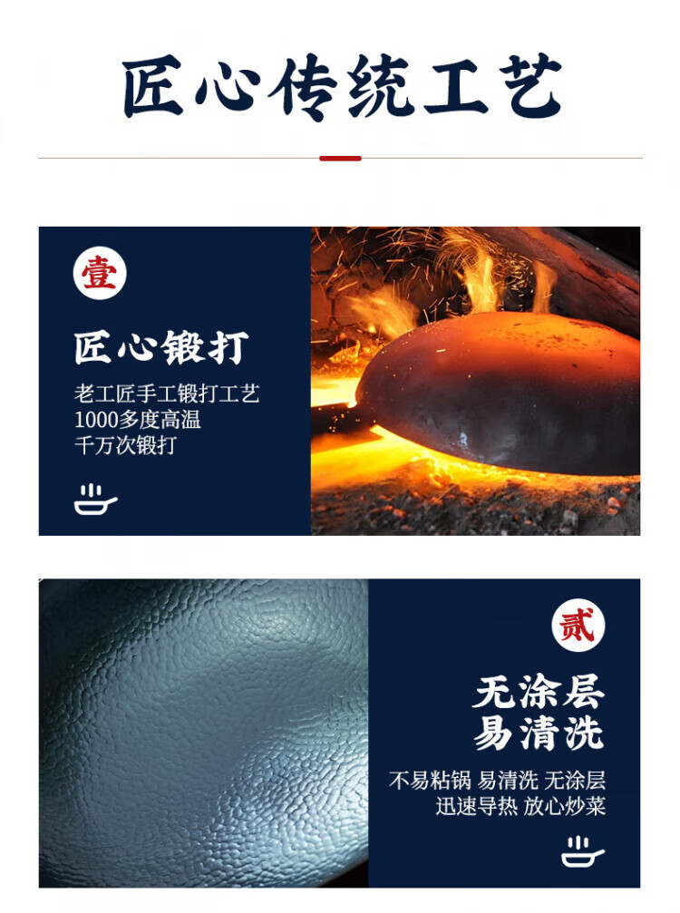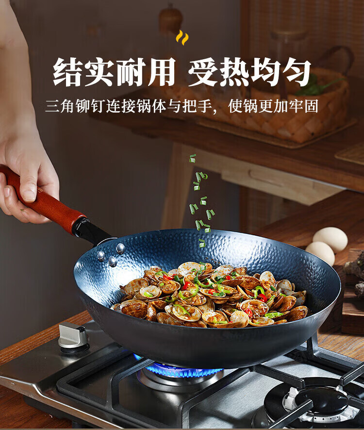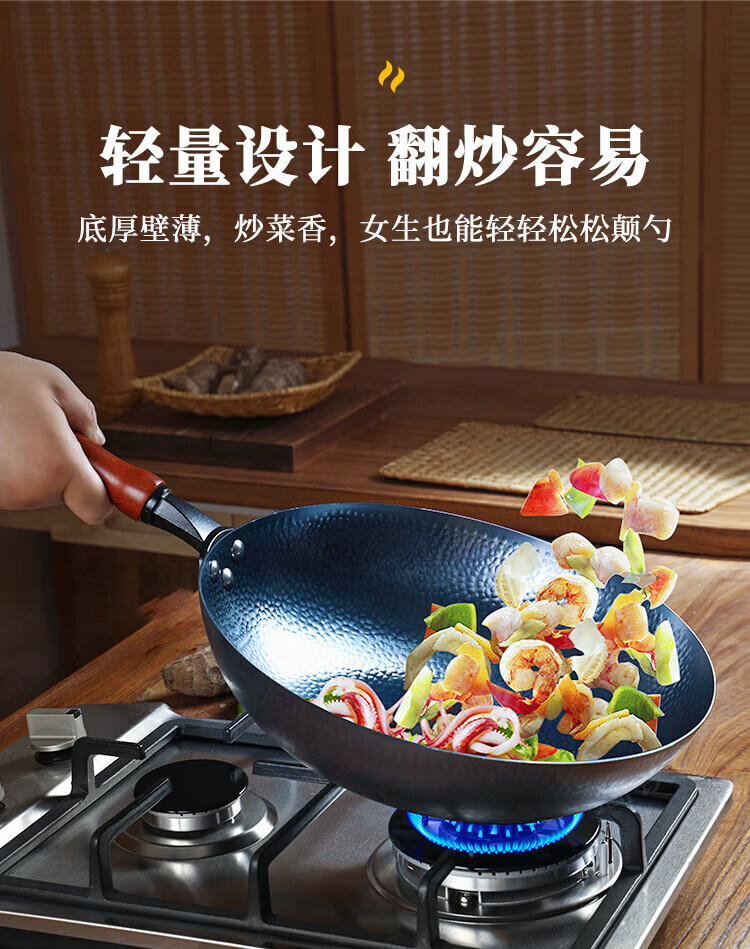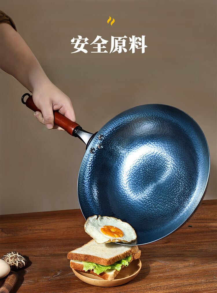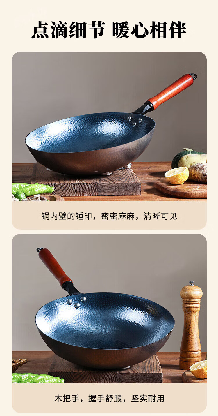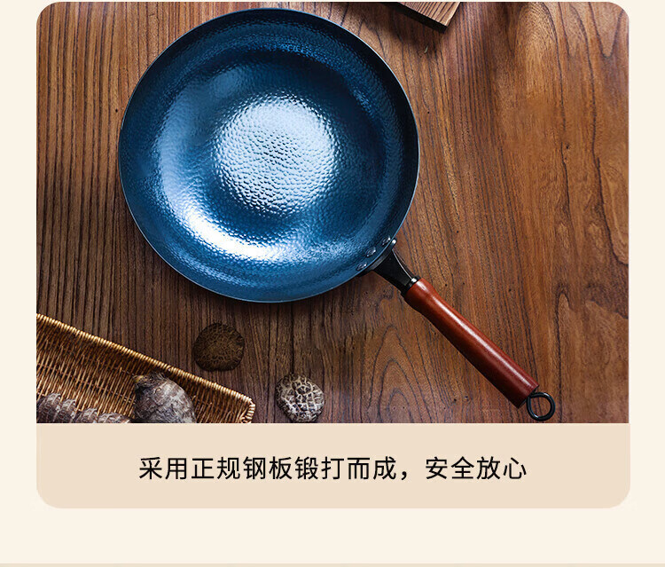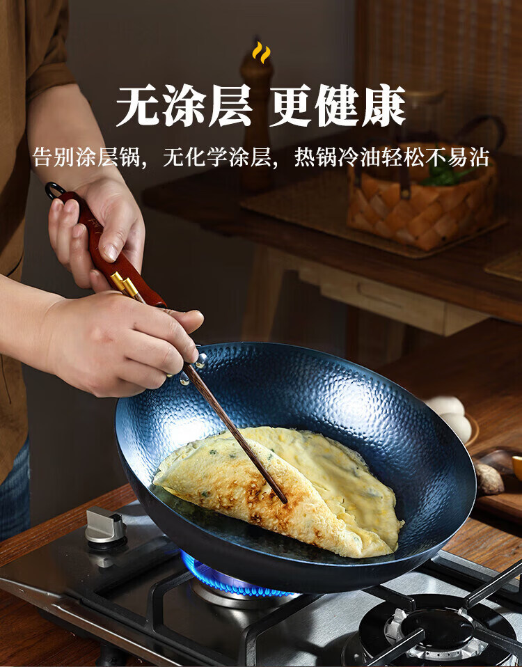 OCMOGO日本品牌炒锅家用手工镜面不粘锅老式圆底铁锅无涂层炒菜锅燃气灶 木把鱼鳞炒锅【带盖】 30cm 圆底