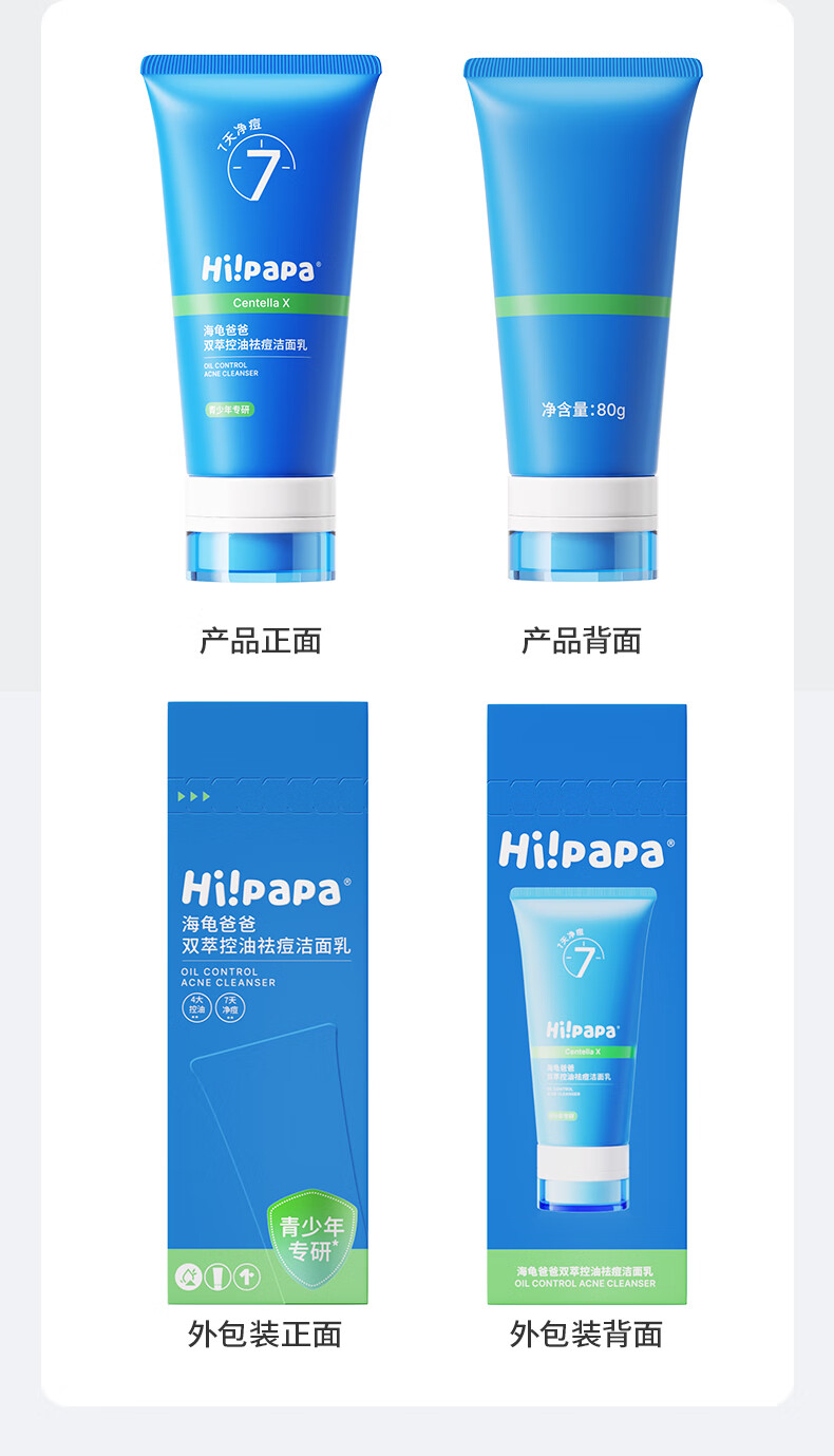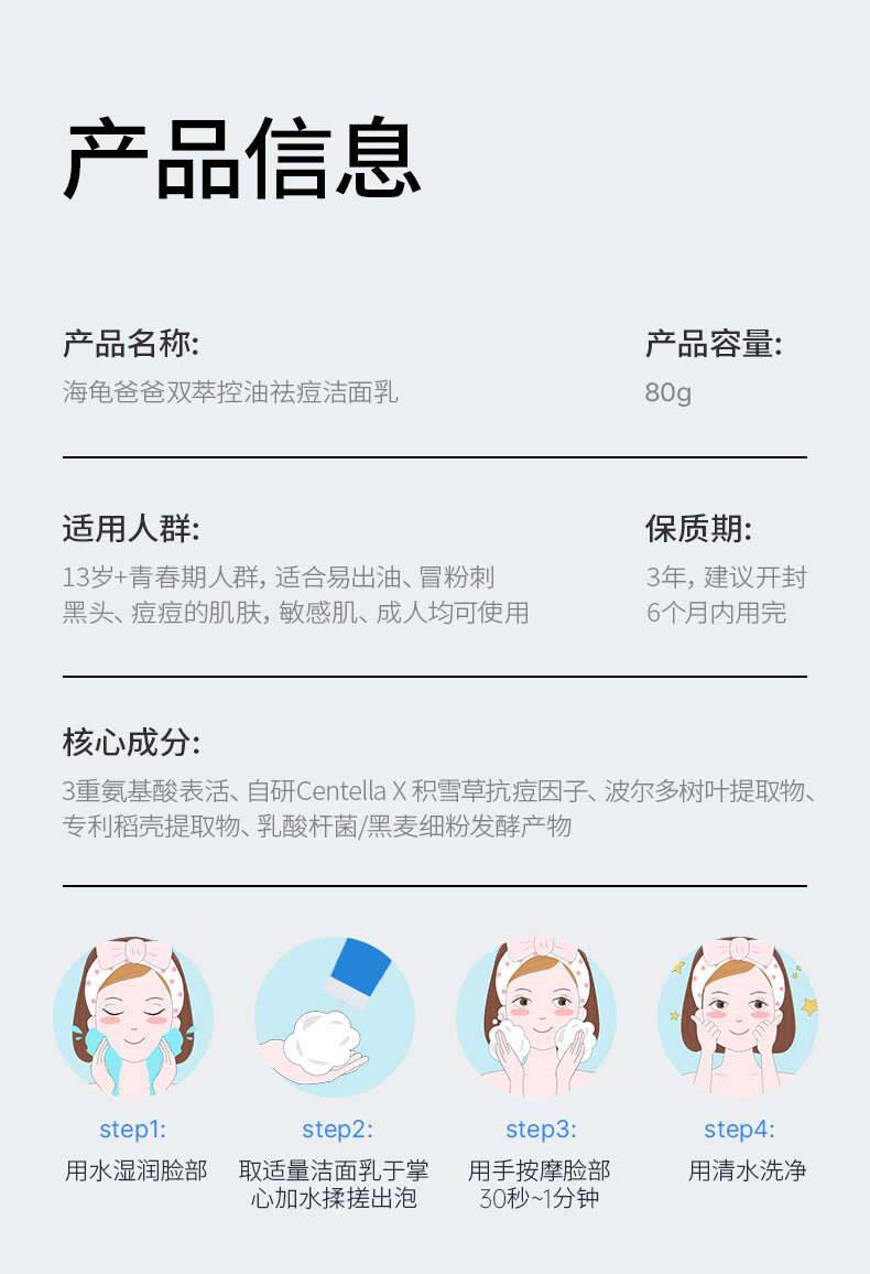 海龟爸爸青少年洗面奶专用祛痘青春期护肤品儿重洗面奶80g*2