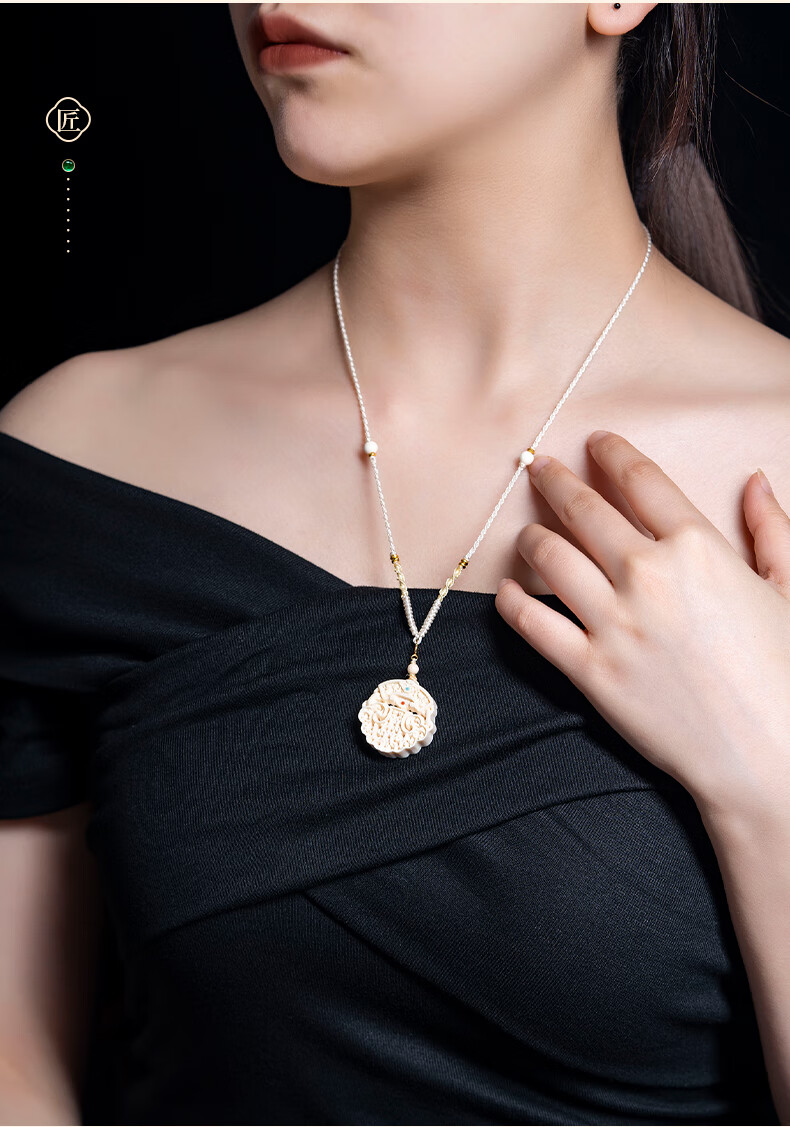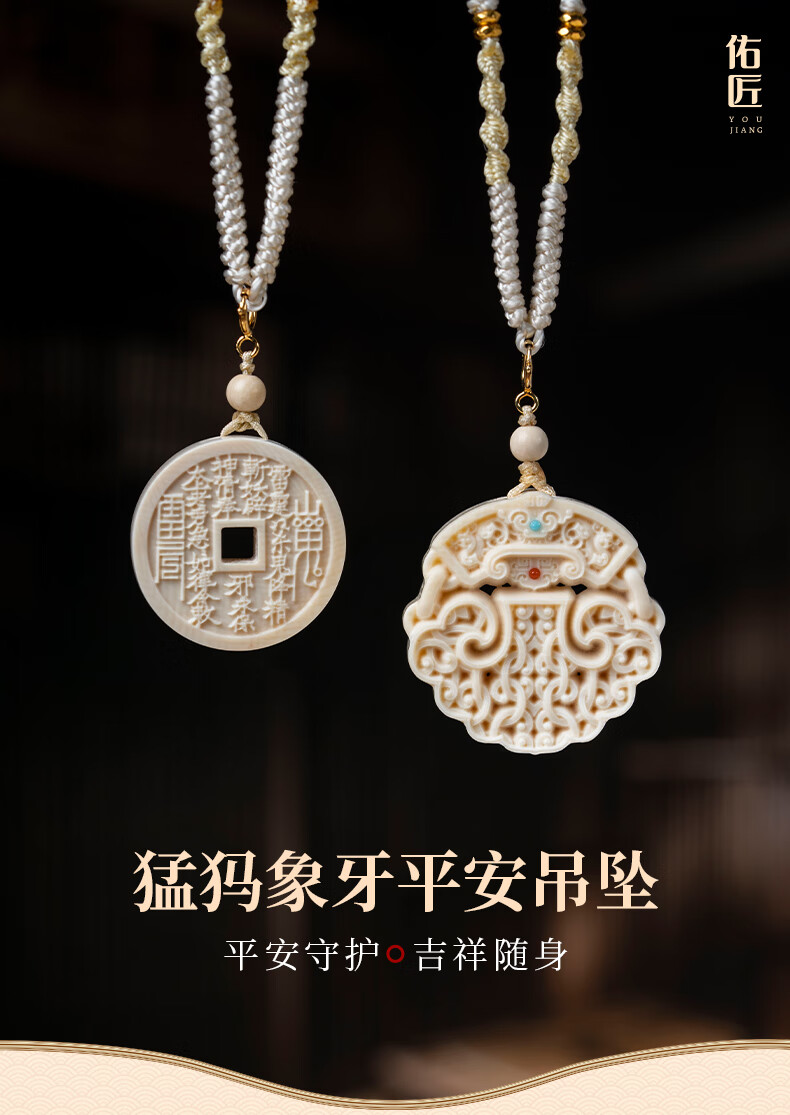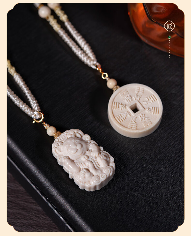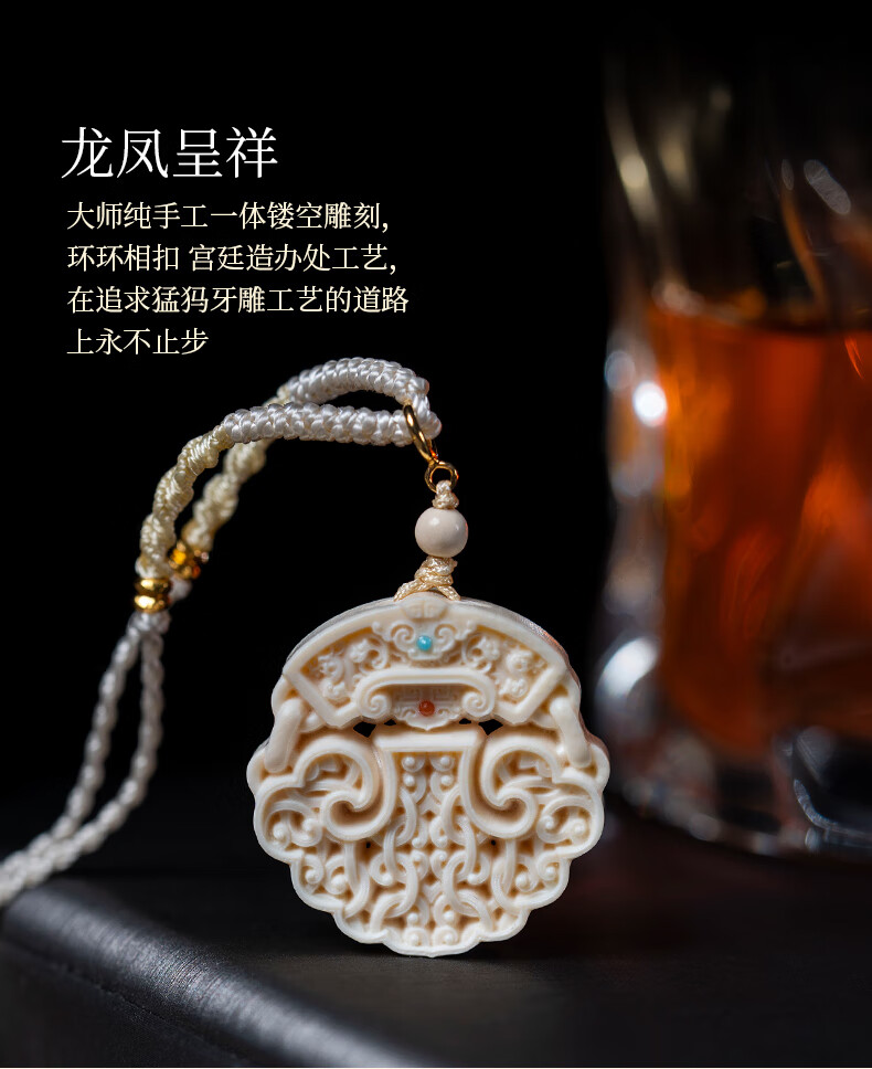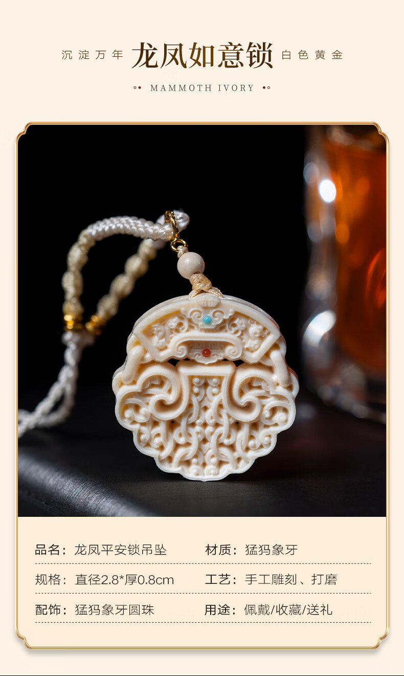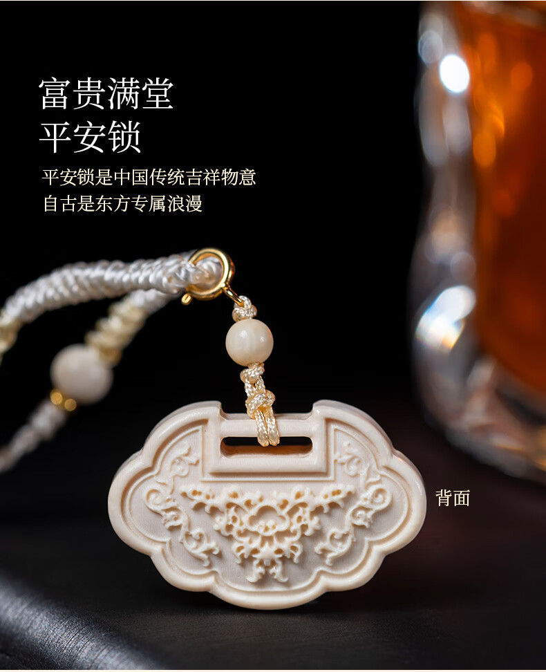 佑匠猛犸象牙冰料山鬼花钱龙凤平安锁吊坠男女款毛衣链项链车挂件 龙凤平安锁(直径2.8x厚0.8cm)