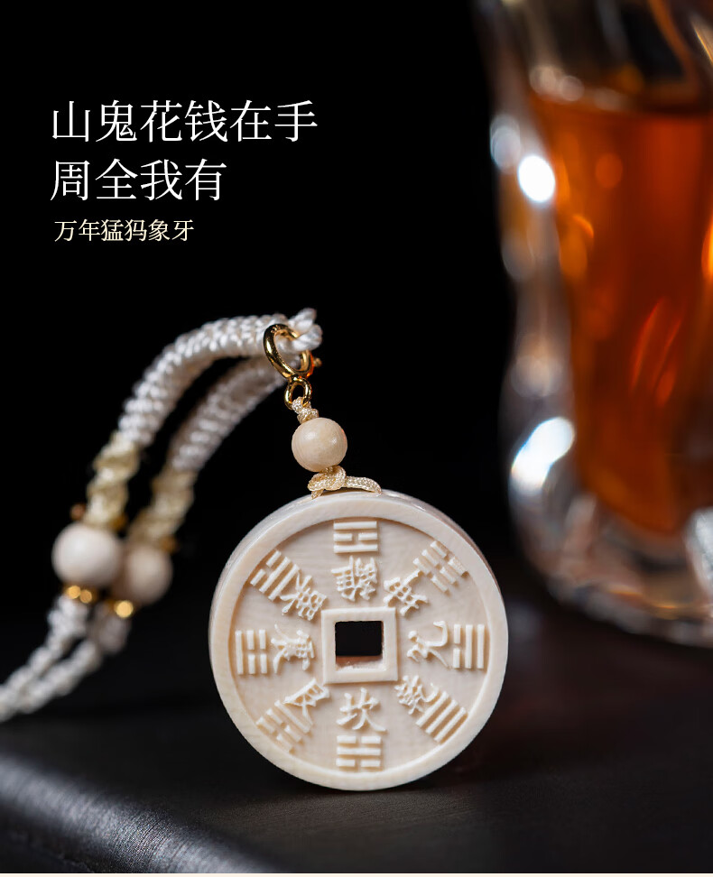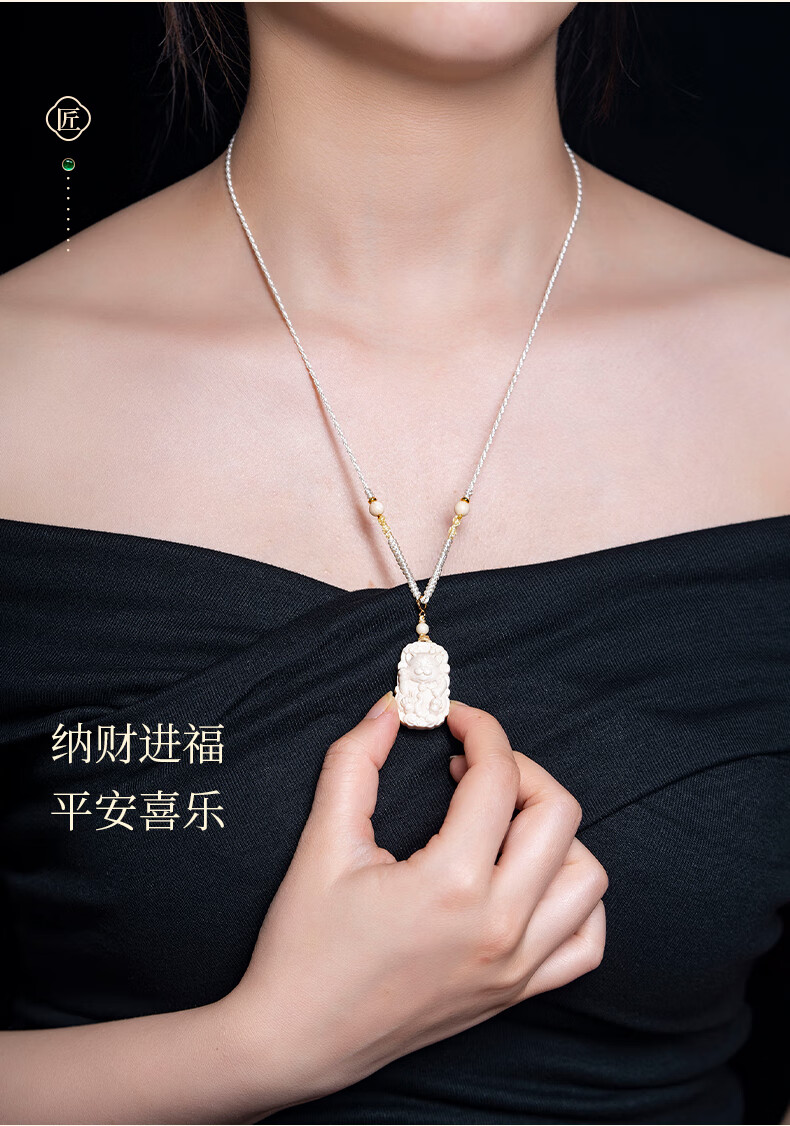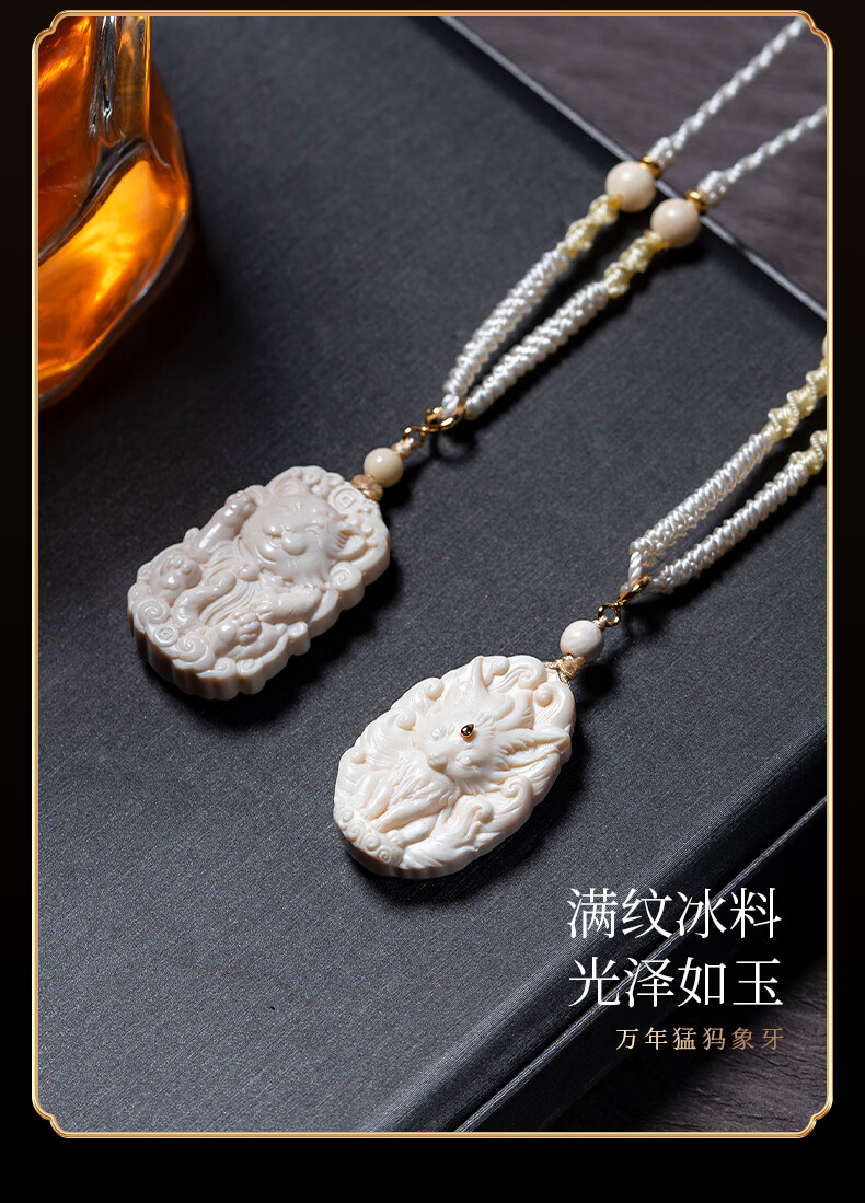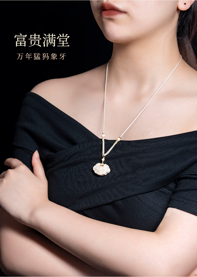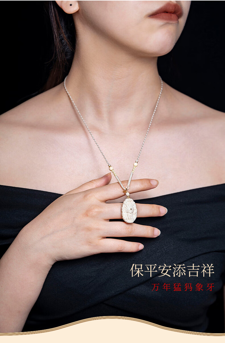 佑匠猛犸象牙冰料山鬼花钱龙凤平安锁吊坠男女款毛衣链项链车挂件 龙凤平安锁(直径2.8x厚0.8cm)