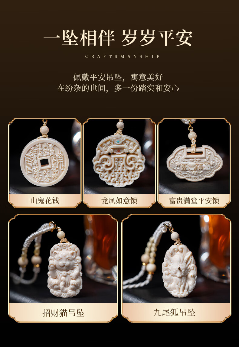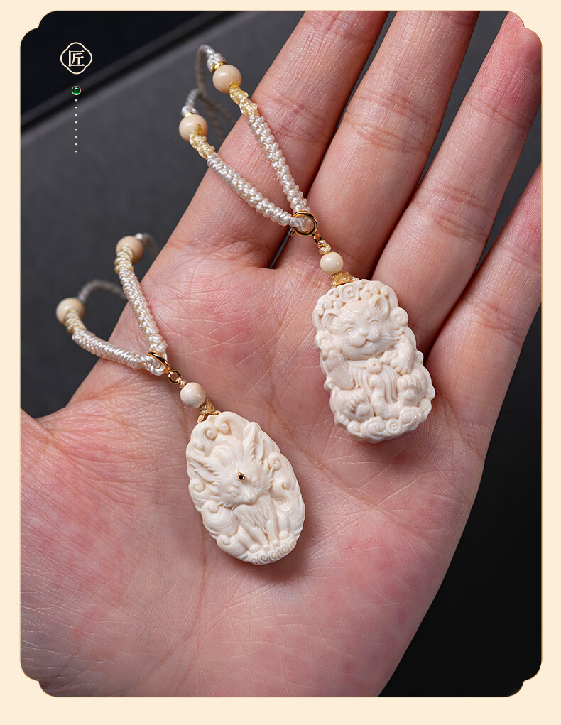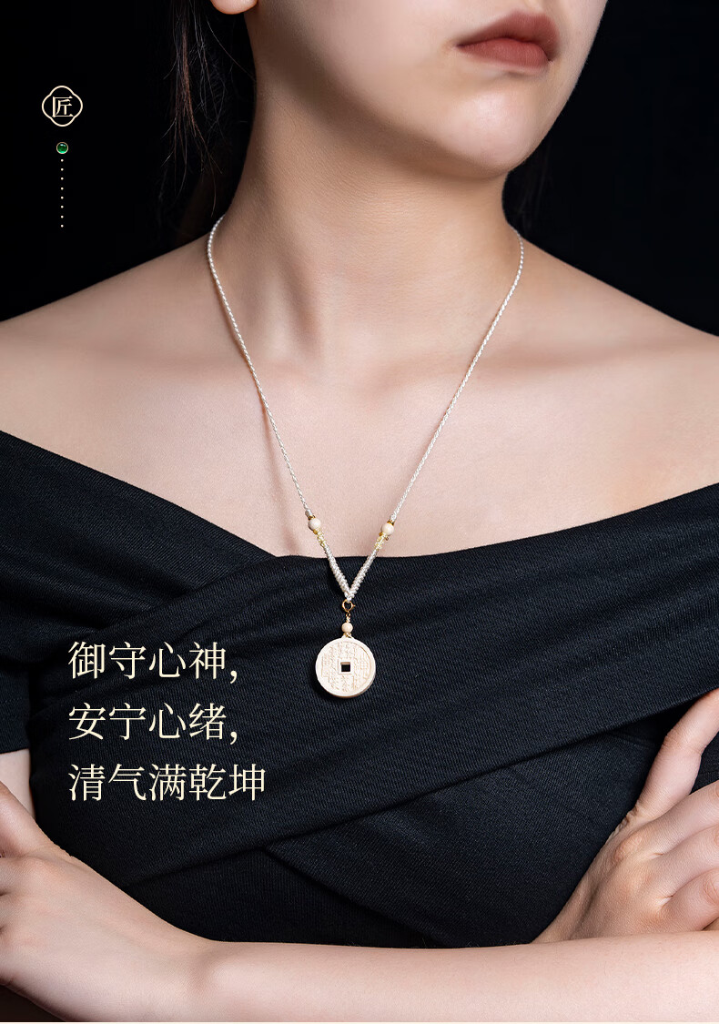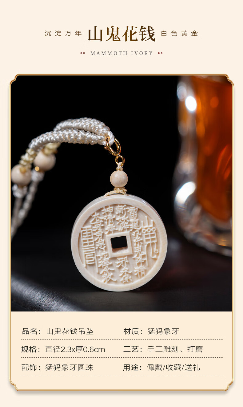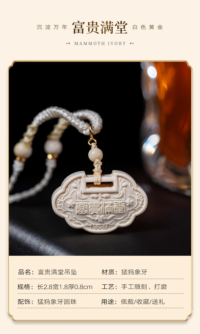 佑匠猛犸象牙冰料山鬼花钱龙凤平安锁吊坠男女款毛衣链项链车挂件 龙凤平安锁(直径2.8x厚0.8cm)