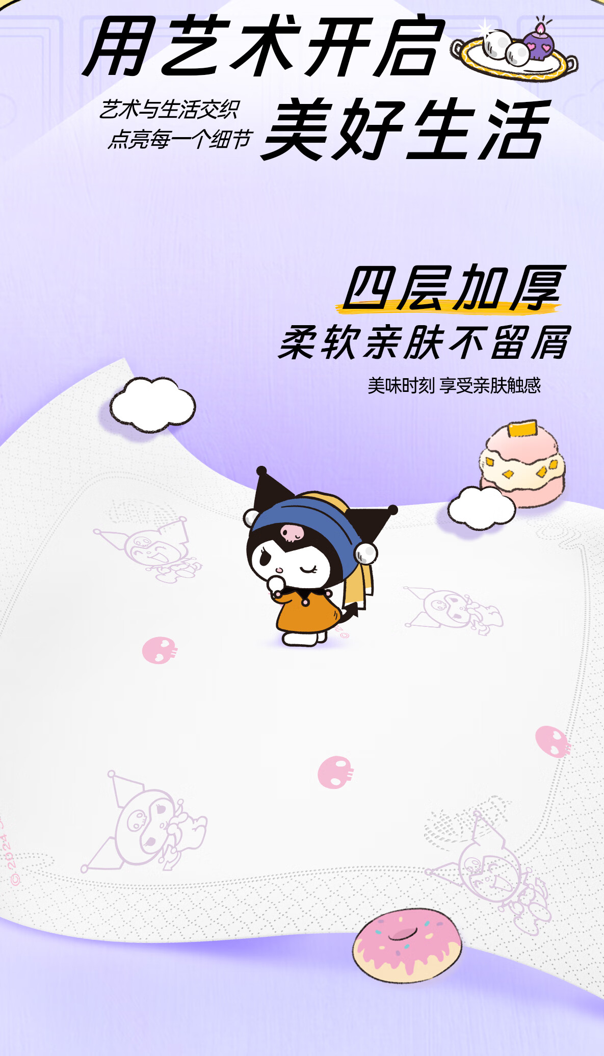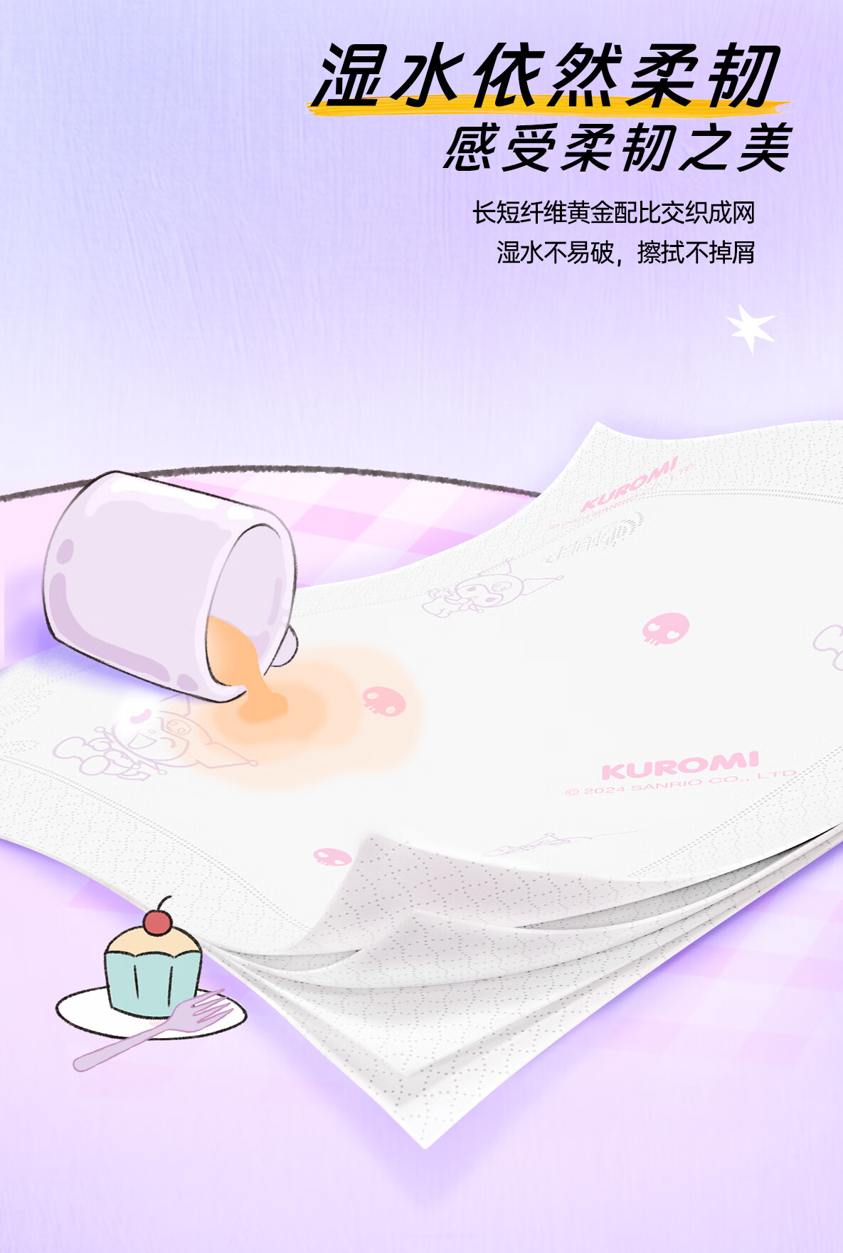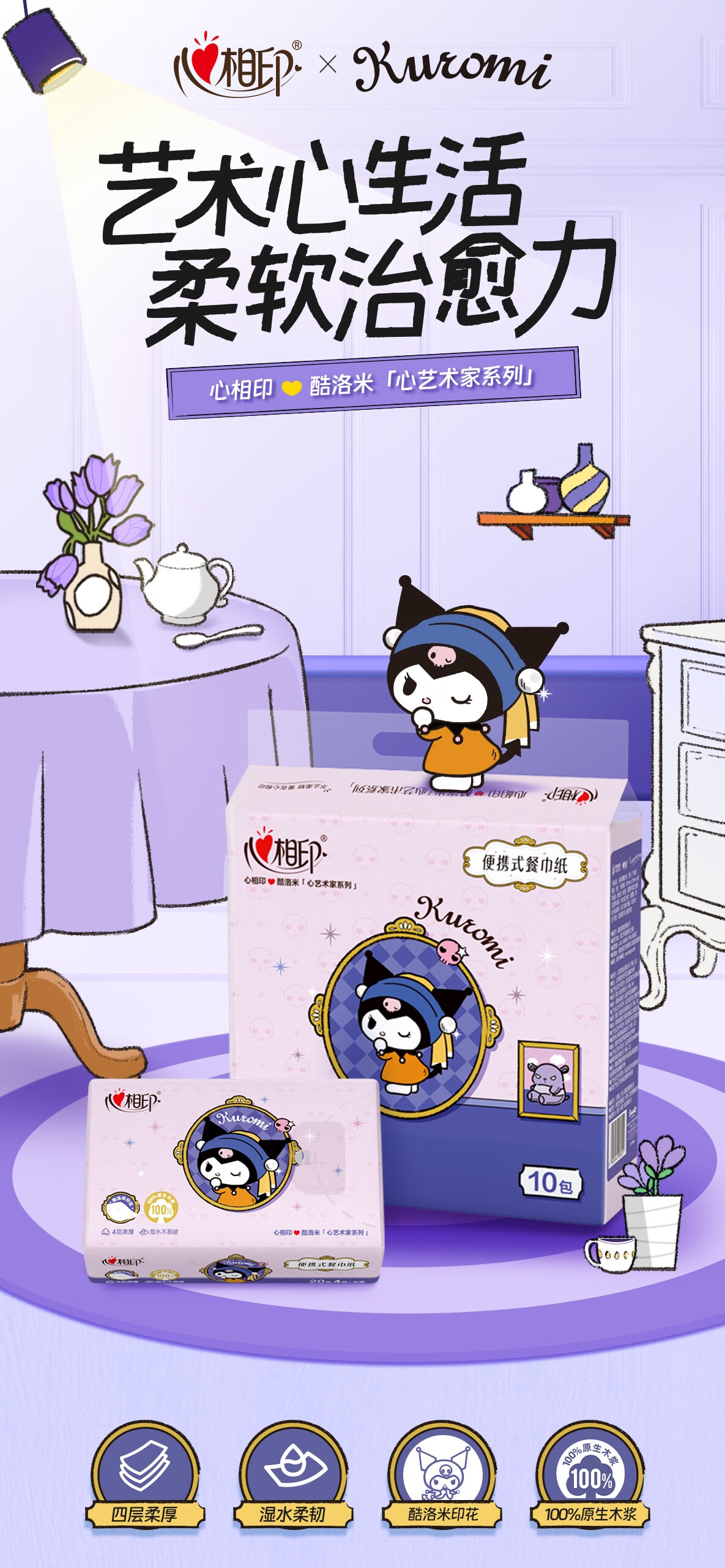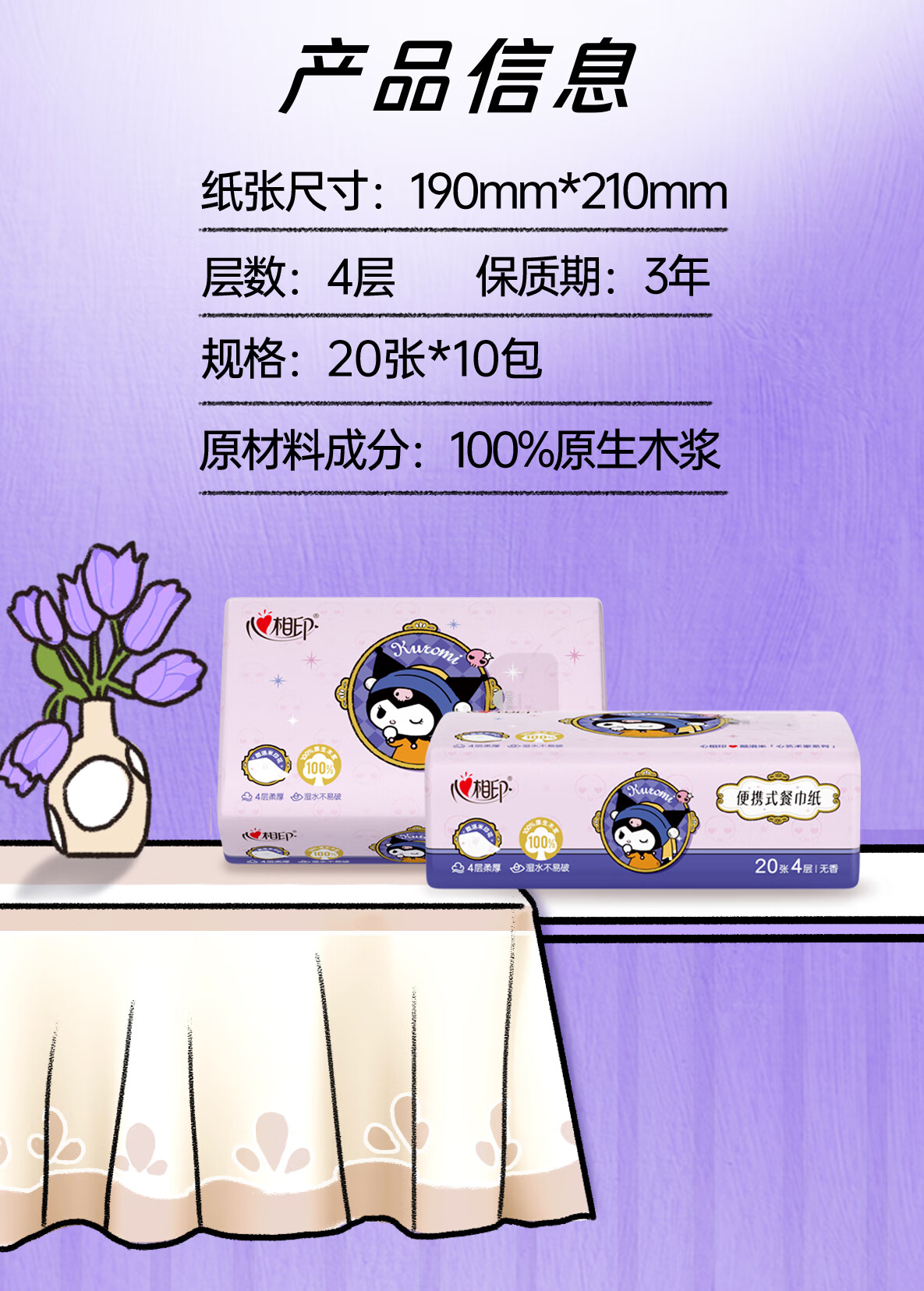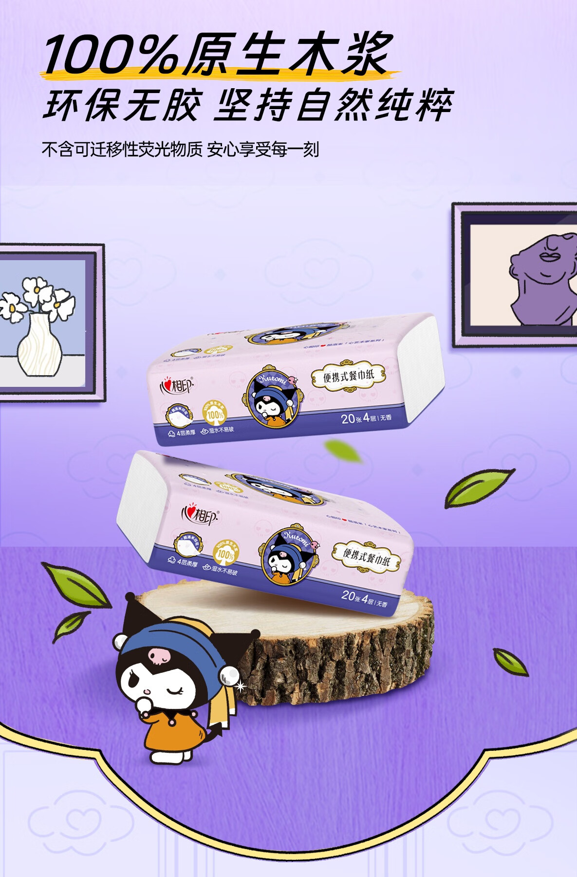 心相印手帕纸抽纸 库洛米款4层20片*10包可湿水餐巾纸 便携小包纸巾