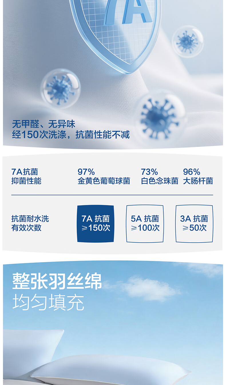 罗莱家纺超柔针织深睡蚕丝纤柔枕头枕芯护颈椎枕吸湿速干 蓝色 单只 46cm*72cm