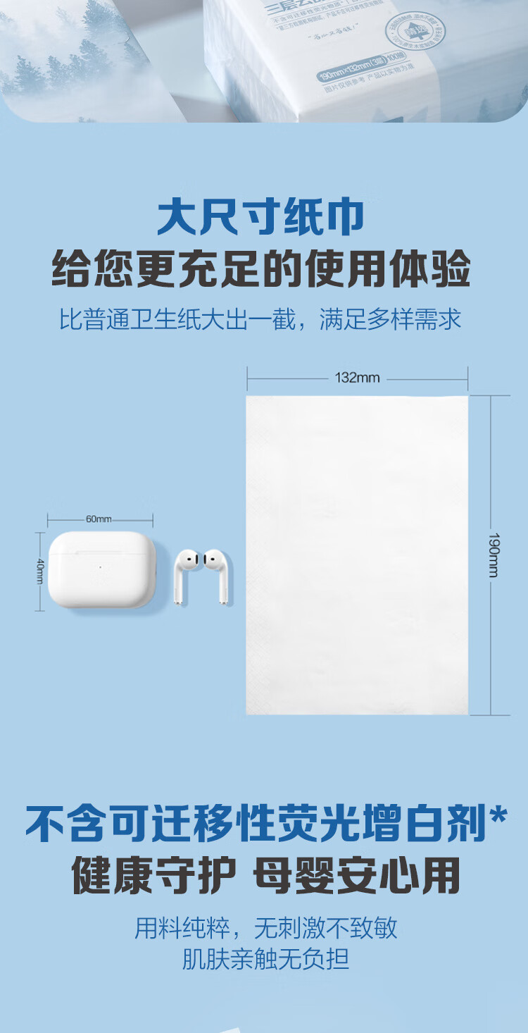 月半弯【6层加厚】优等品悬挂式抽纸面巾纸餐巾纸巾卫生纸抽厕纸擦手纸 【6层加厚】优等品338抽*4提