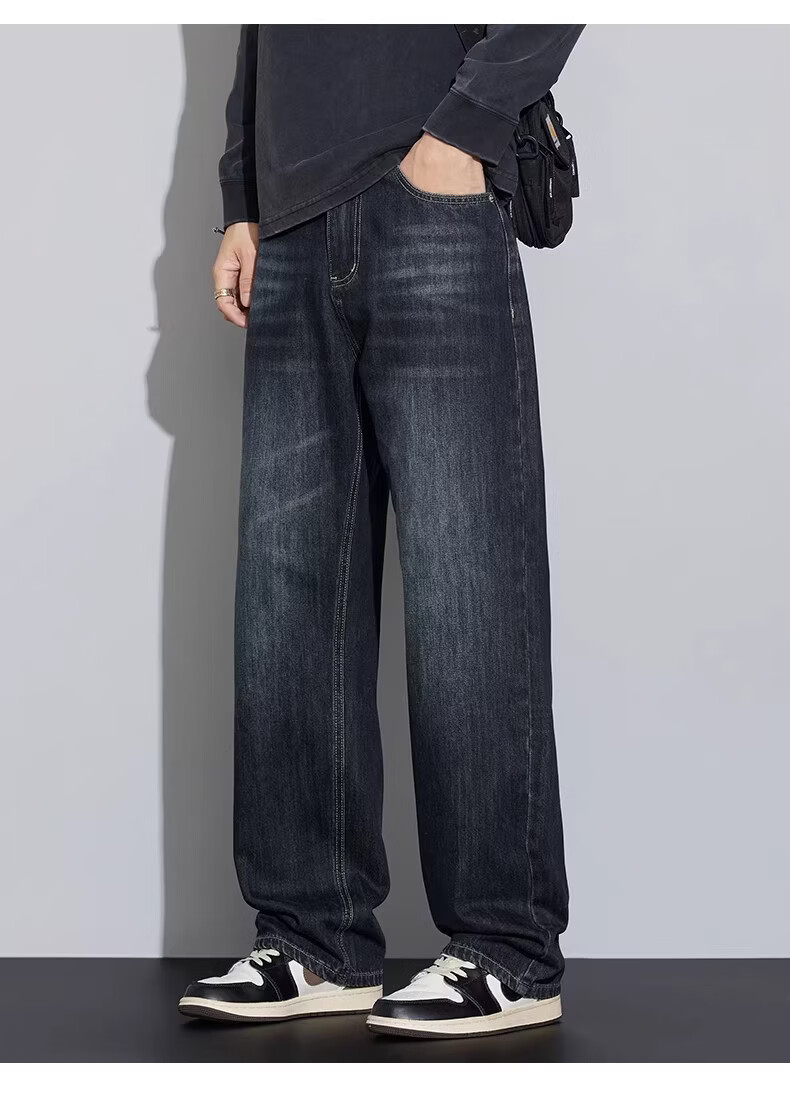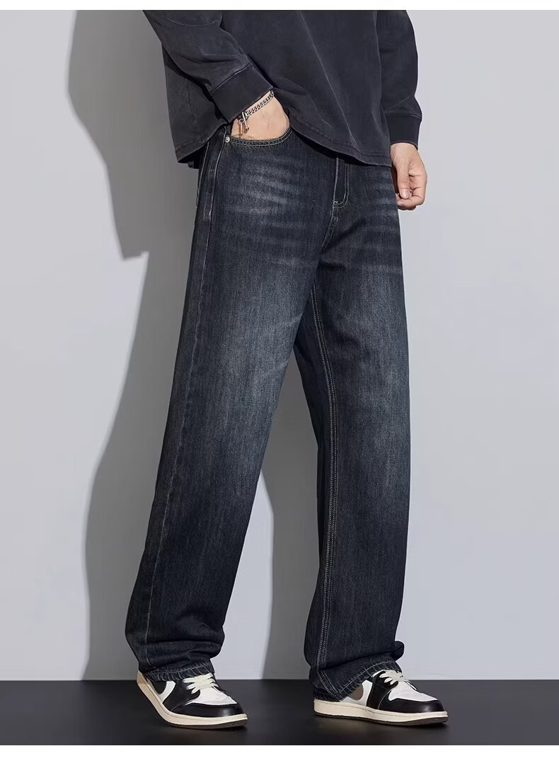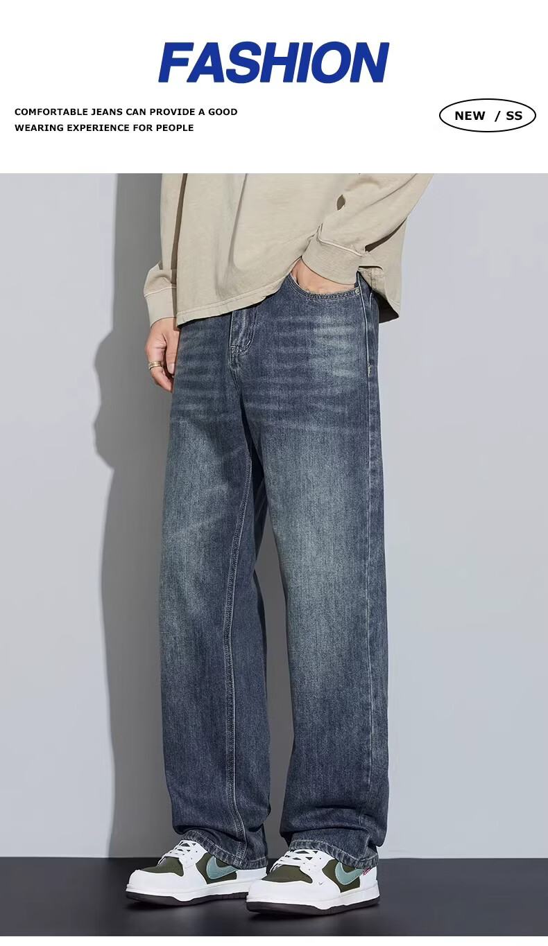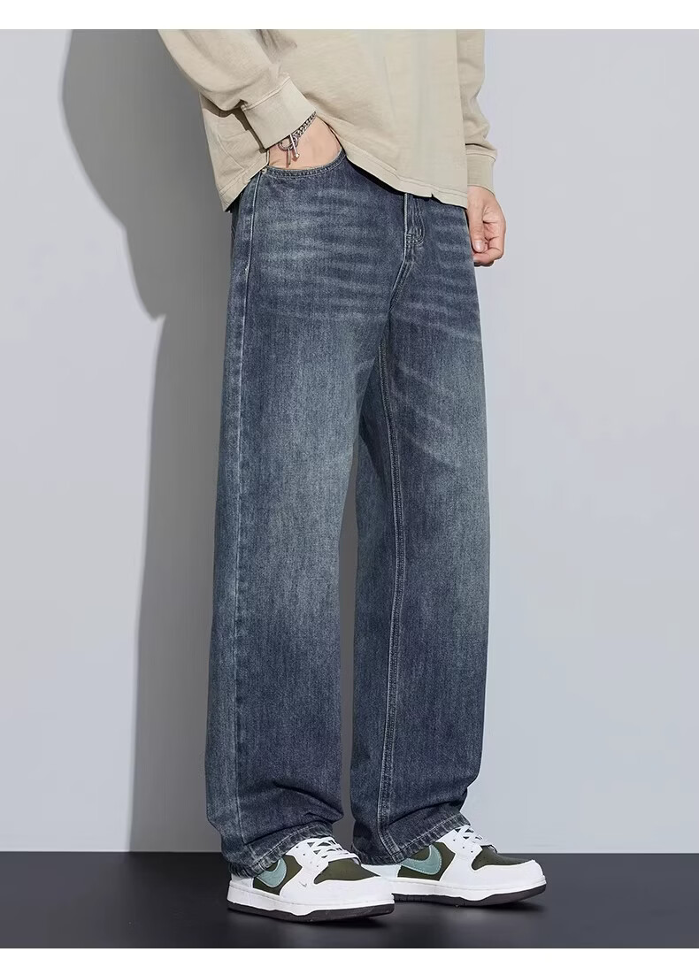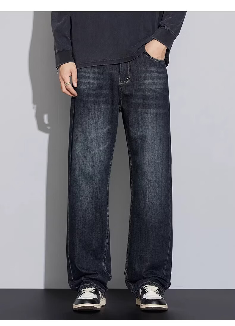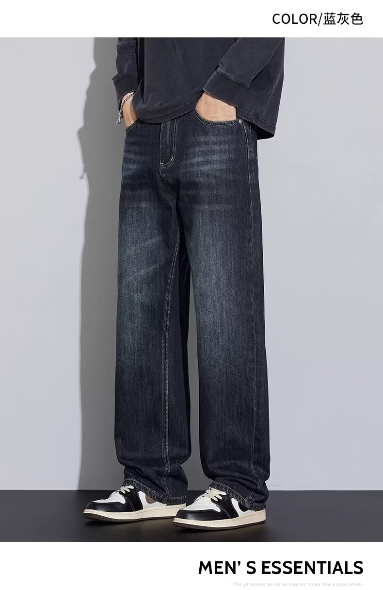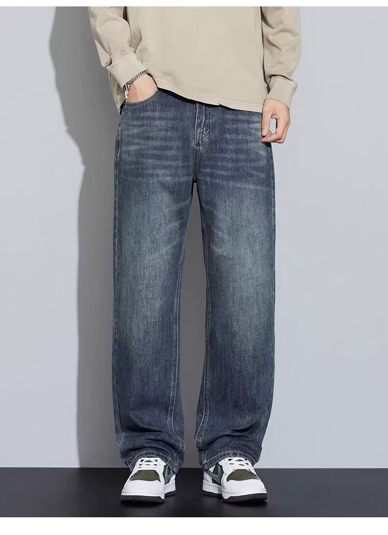 真维斯2026新款春夏季牛仔裤男士潮牌宽松直筒长裤百搭美式休闲阔腿裤子 蓝灰色 28