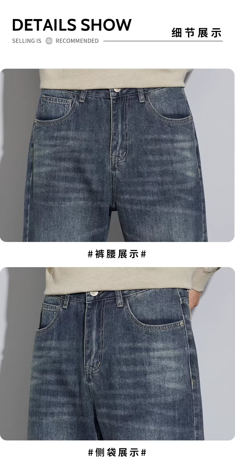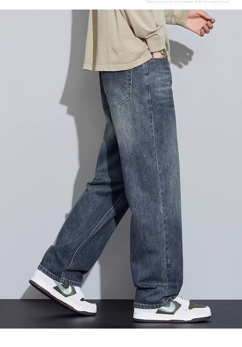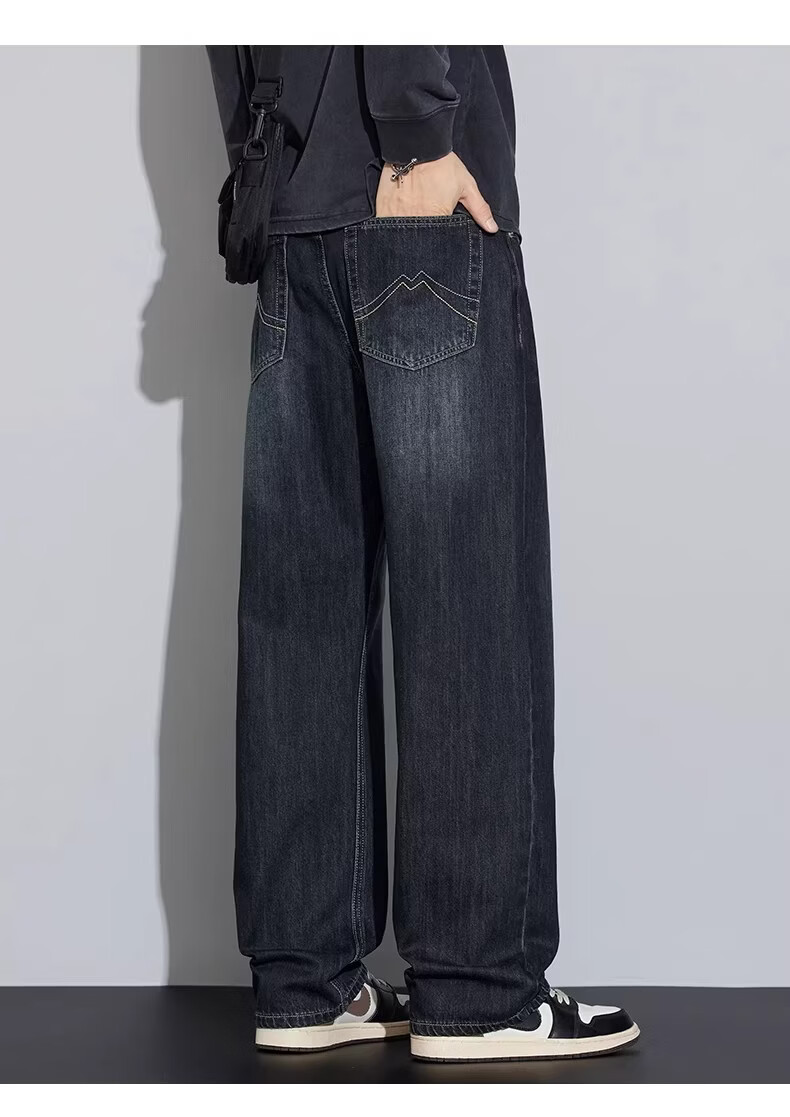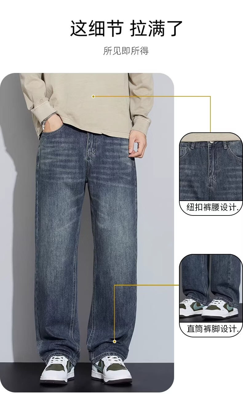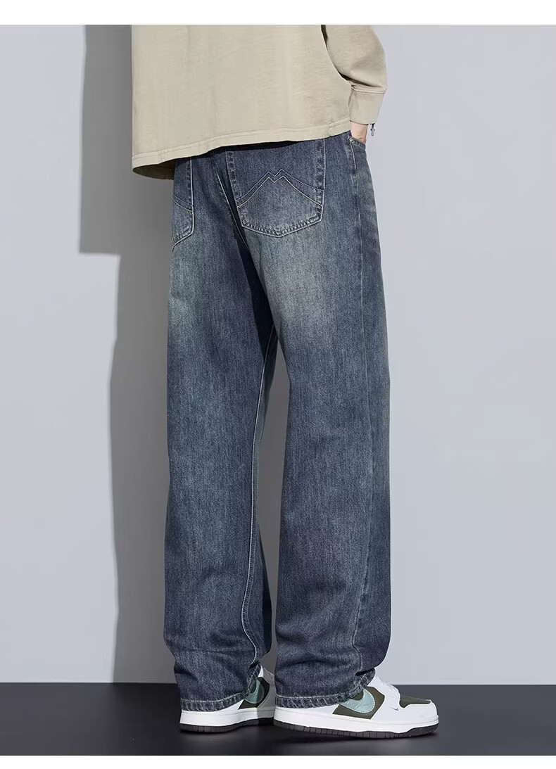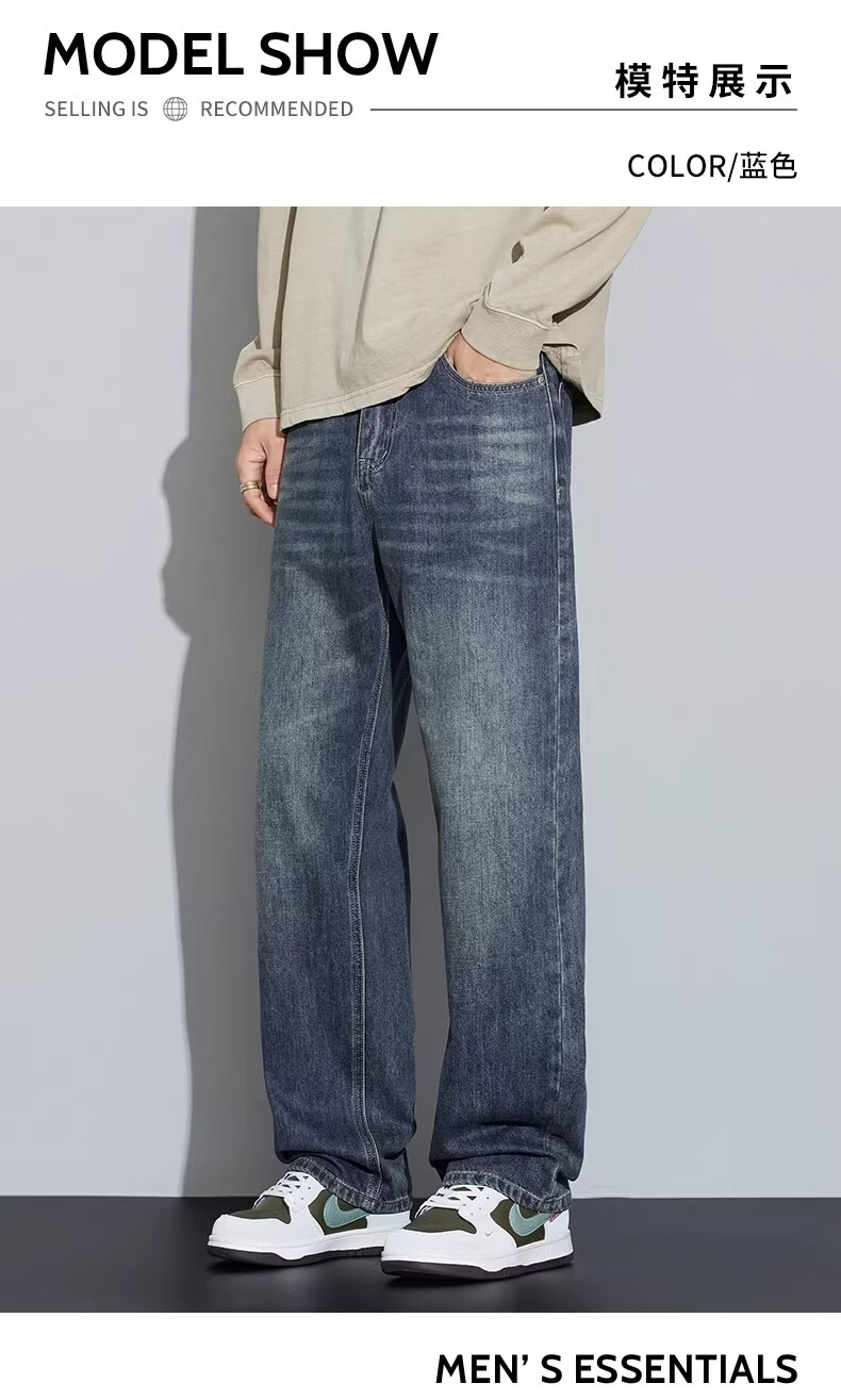 真维斯2026新款春夏季牛仔裤男士潮牌宽松直筒长裤百搭美式休闲阔腿裤子 蓝灰色 28