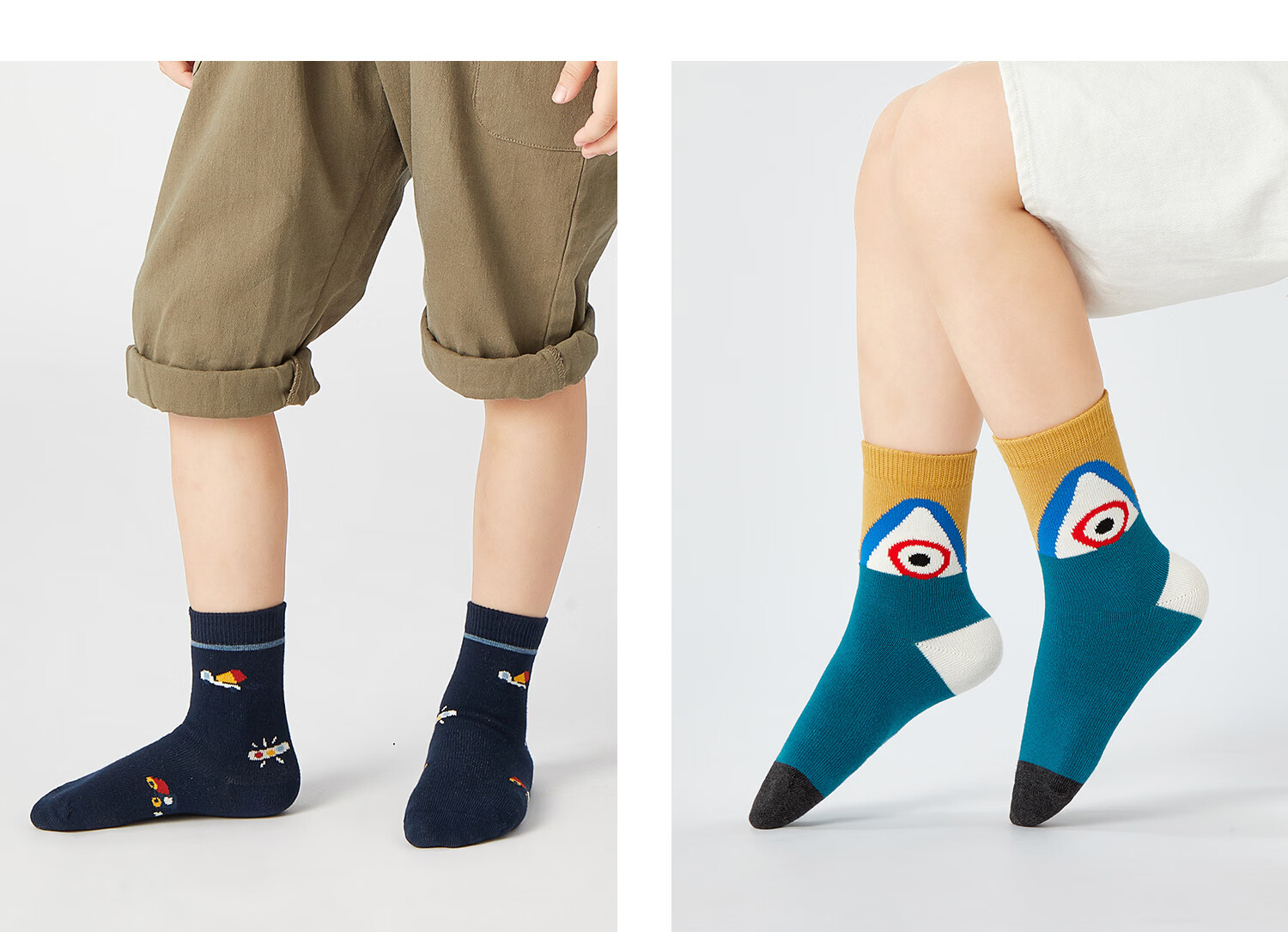 斑比儿童袜子潮春秋款大童宝宝秋冬季男童袜无骨中筒棉袜 BB2378 春秋儿童趣味个性袜 5双 3-5岁 建议脚码21-26码【16-18】