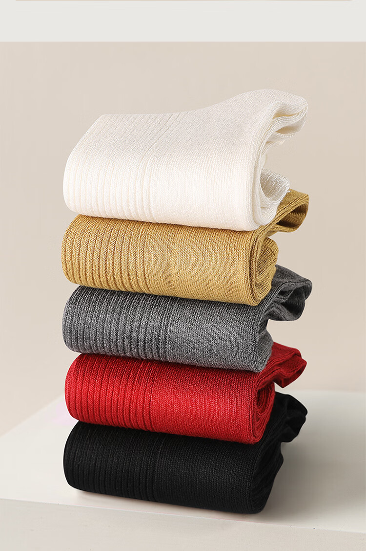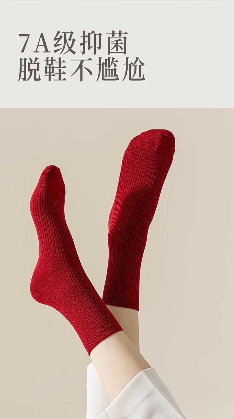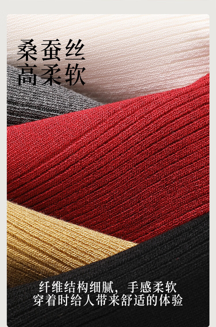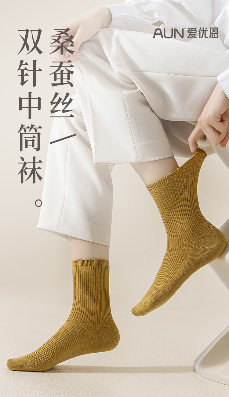 AUN袜子女秋冬季桑蚕丝抗菌中筒袜女士高弹亲肤四季百搭抑菌红色女袜 混色5双 均码