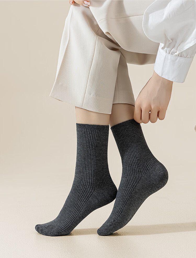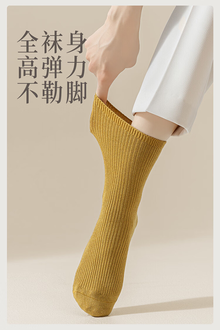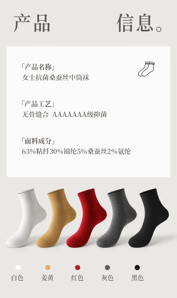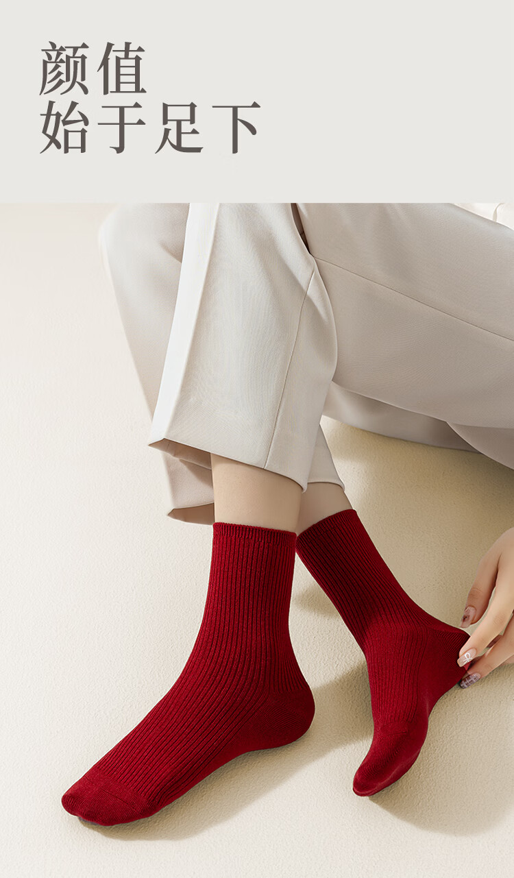 AUN袜子女秋冬季桑蚕丝抗菌中筒袜女士高弹亲肤四季百搭抑菌红色女袜 混色5双 均码