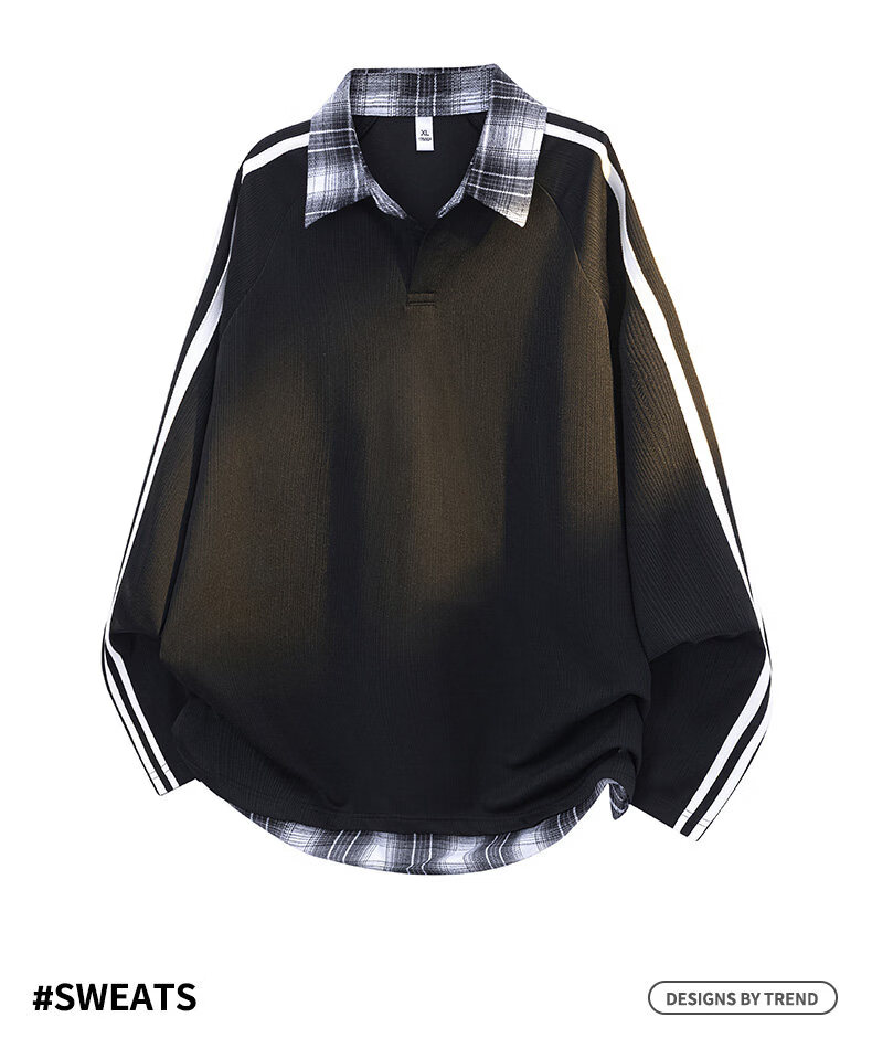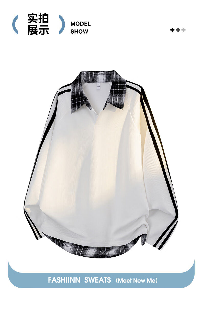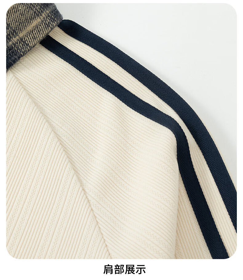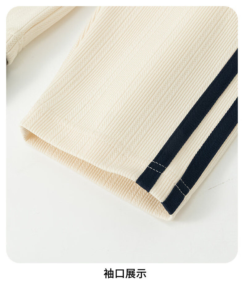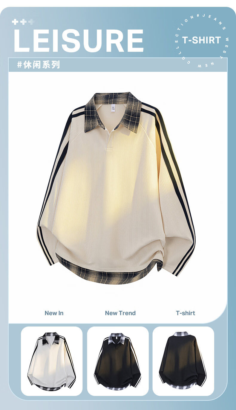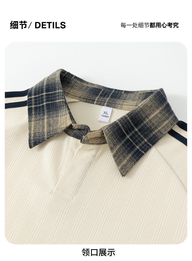 真维斯(Jeanswest)2026春季新品拼接条纹卫衣男士美式潮牌宽松polo衫休闲翻领长袖衫 杏色 【春季新品】 S 【建议90-115斤】