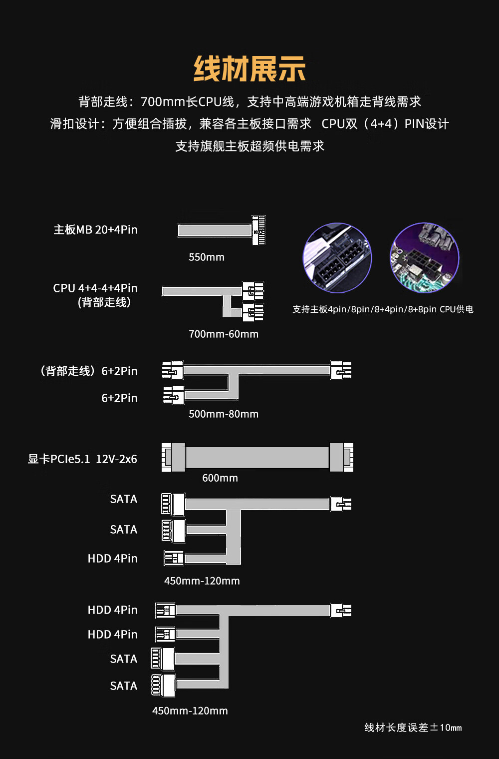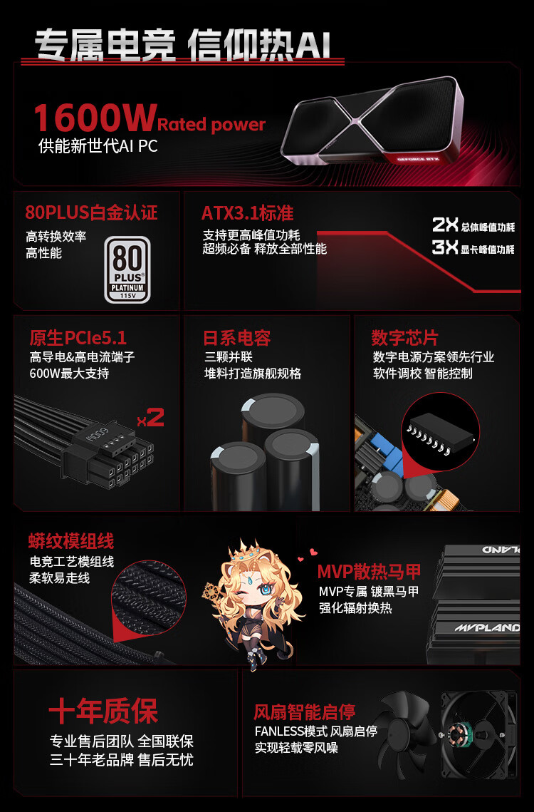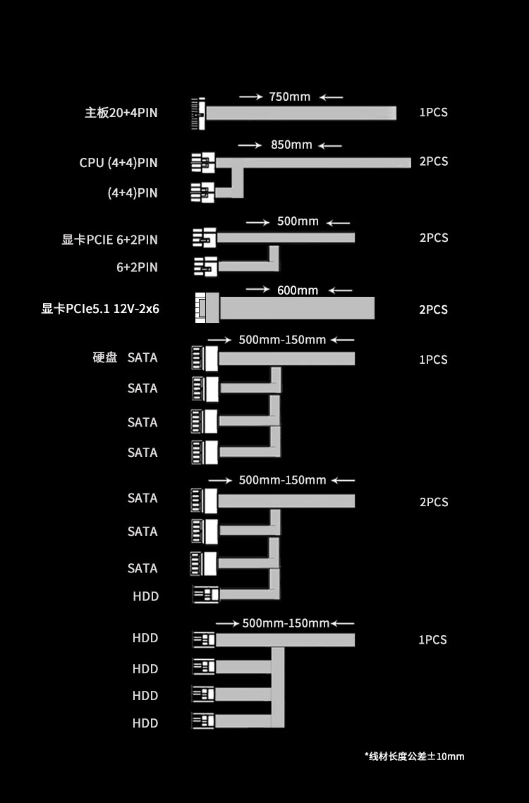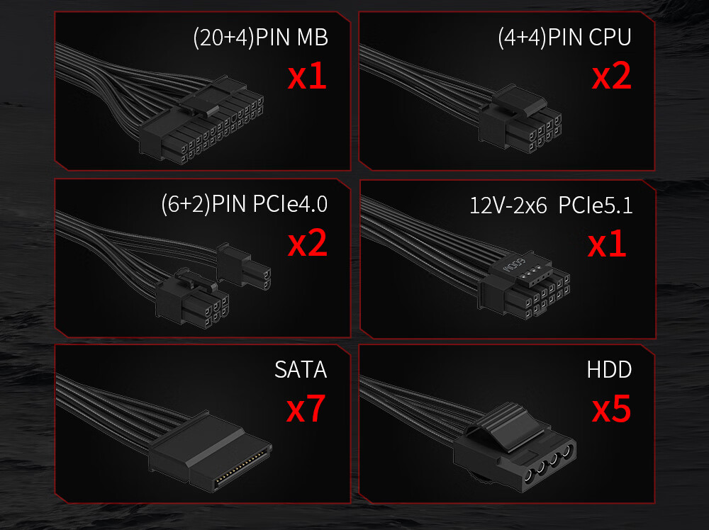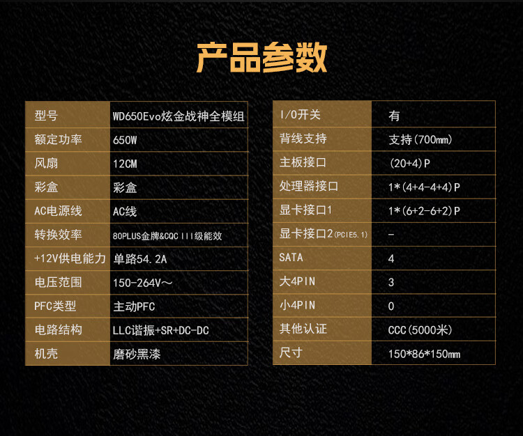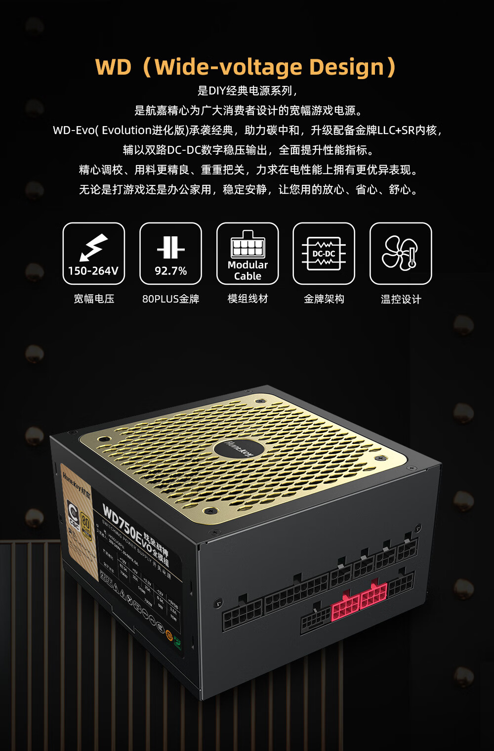 航嘉(Huntkey) WD750EVO炫金战神 台式机主机电脑电源 额定750W/850W/1000W/1200W/1600W全模组电源 PCIE5.1接口 WD750EVO炫金战神模组-750W金牌 全模组