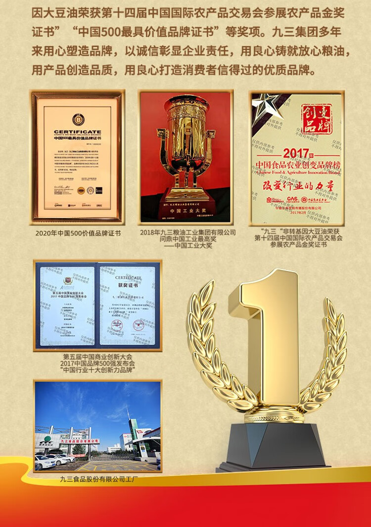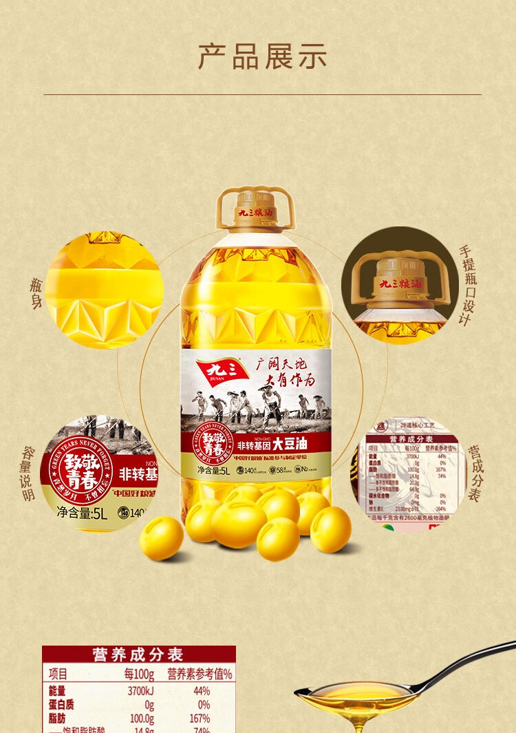 九三非转基因 一级大豆油5L 致青春系列 食用油