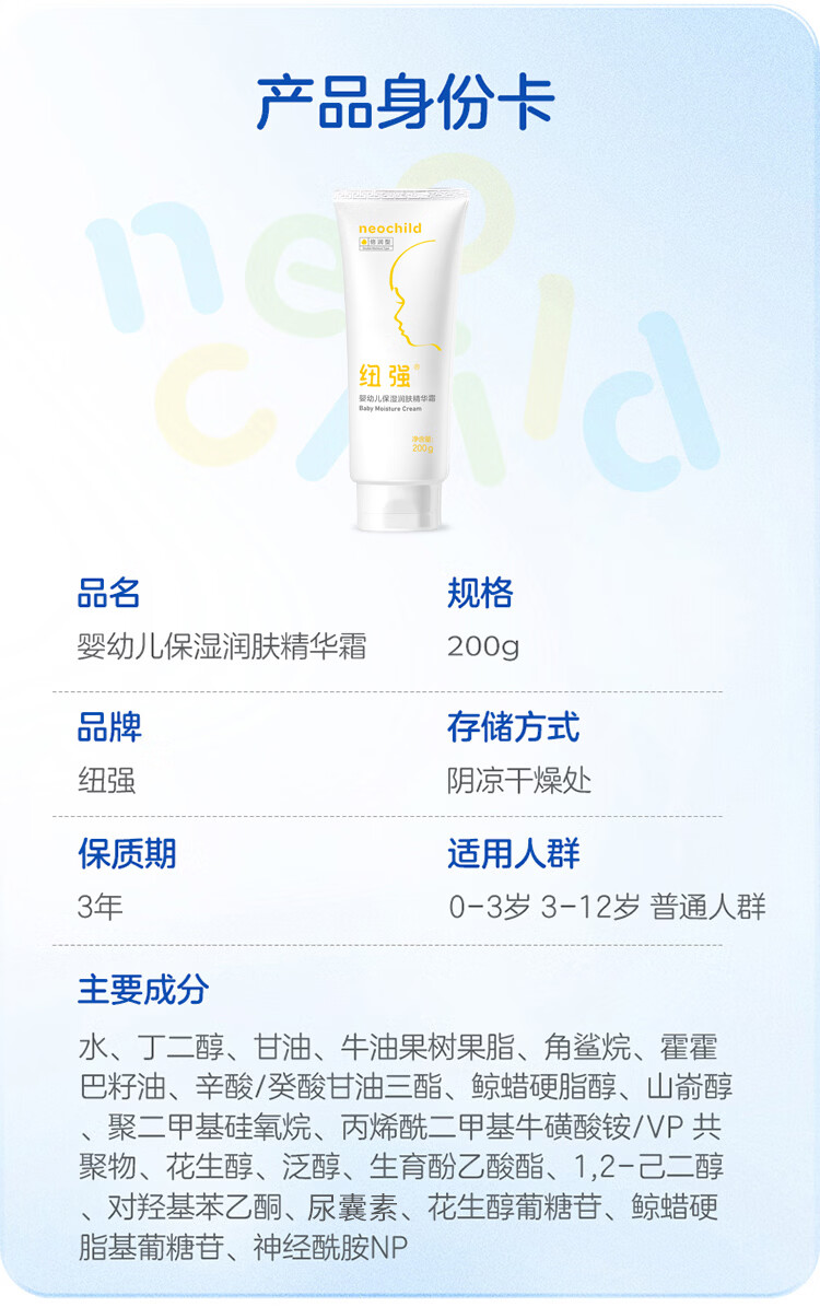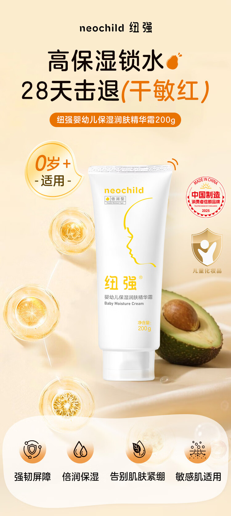 纽强儿童面霜舒缓保湿秋冬防皴防干敏红身体乳 婴幼儿保湿润肤精华霜 【优惠装】精华霜200g*2