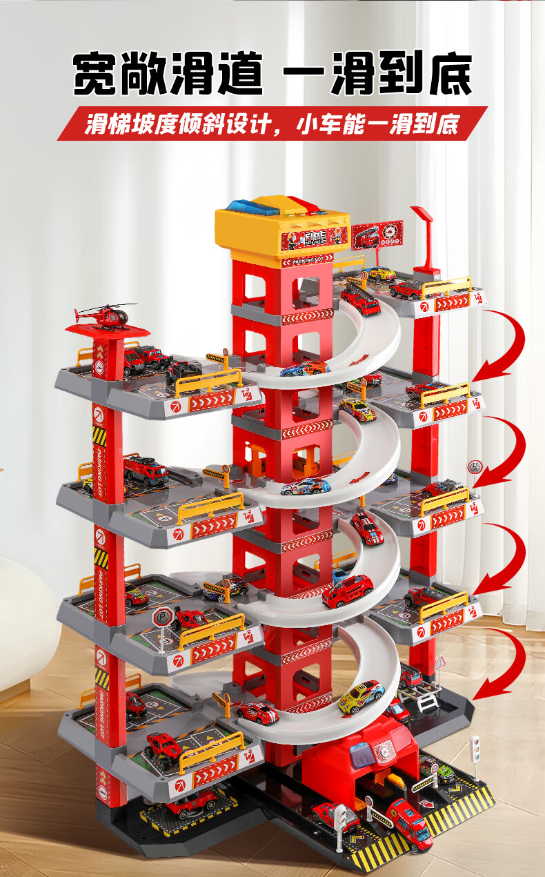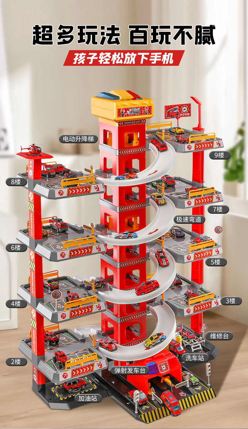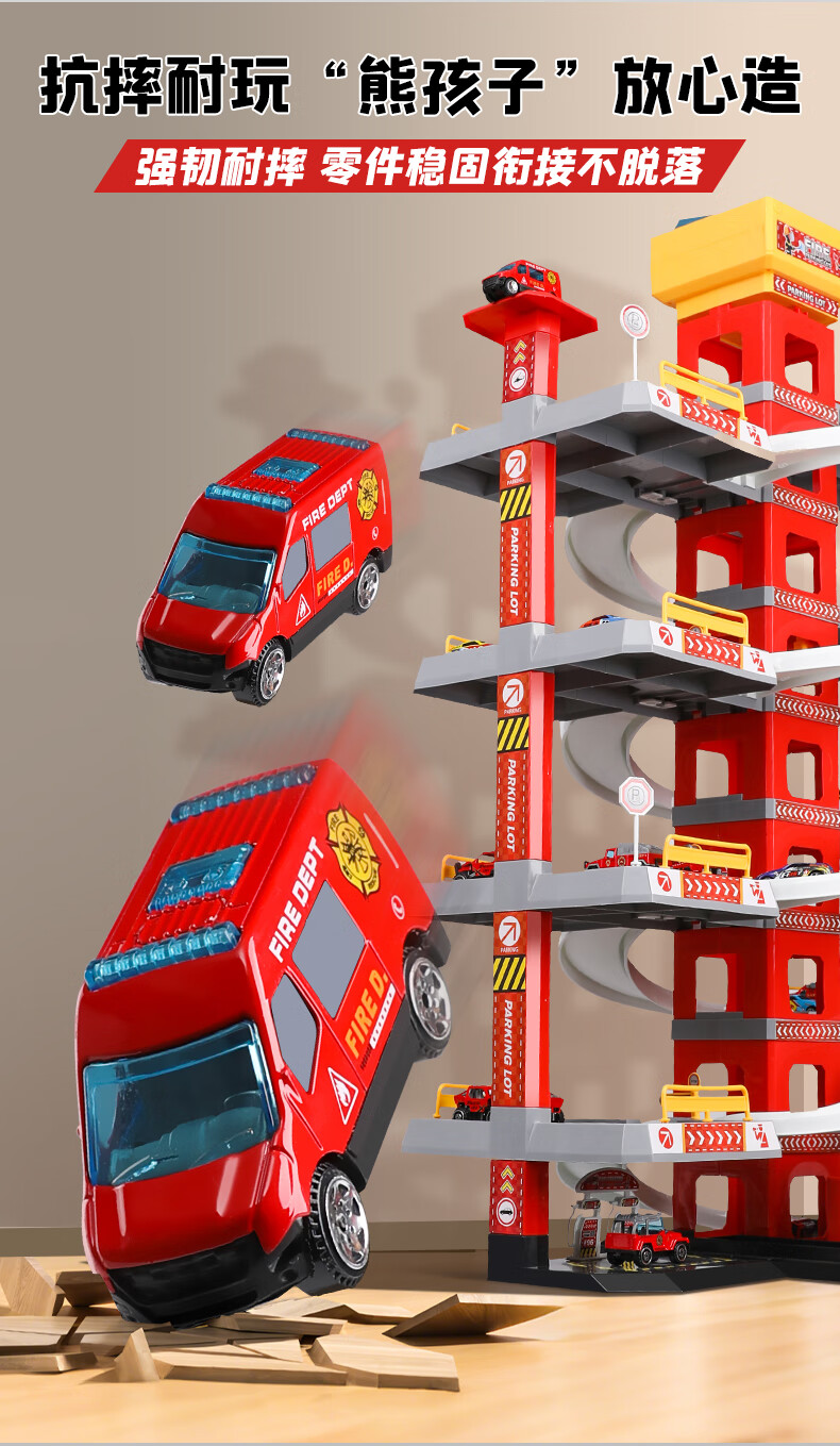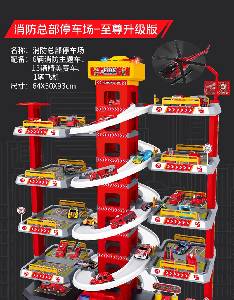 Holy STONE停车场大楼玩具消防车超大旋转轨道儿童玩具车男孩3-6岁生日礼物 5层消防停车大楼【礼盒充电版】12车+飞机 圣诞礼物儿童节1-2-4-5-7岁2026火的玩具
