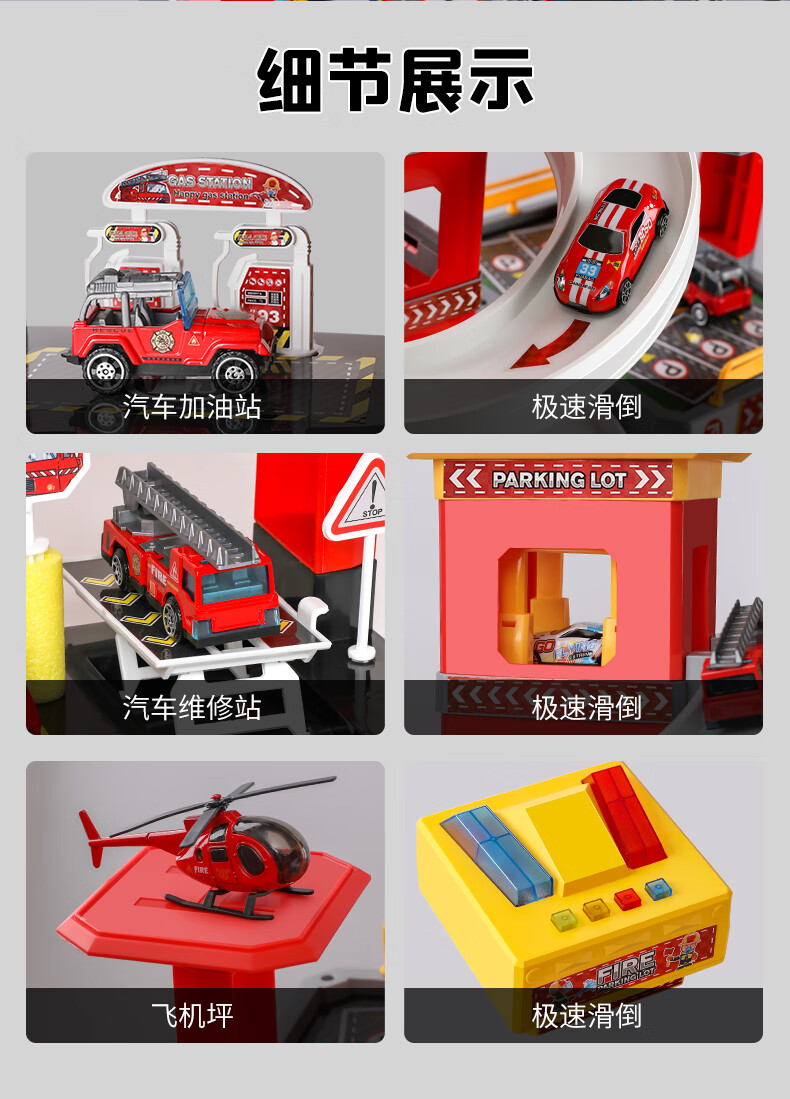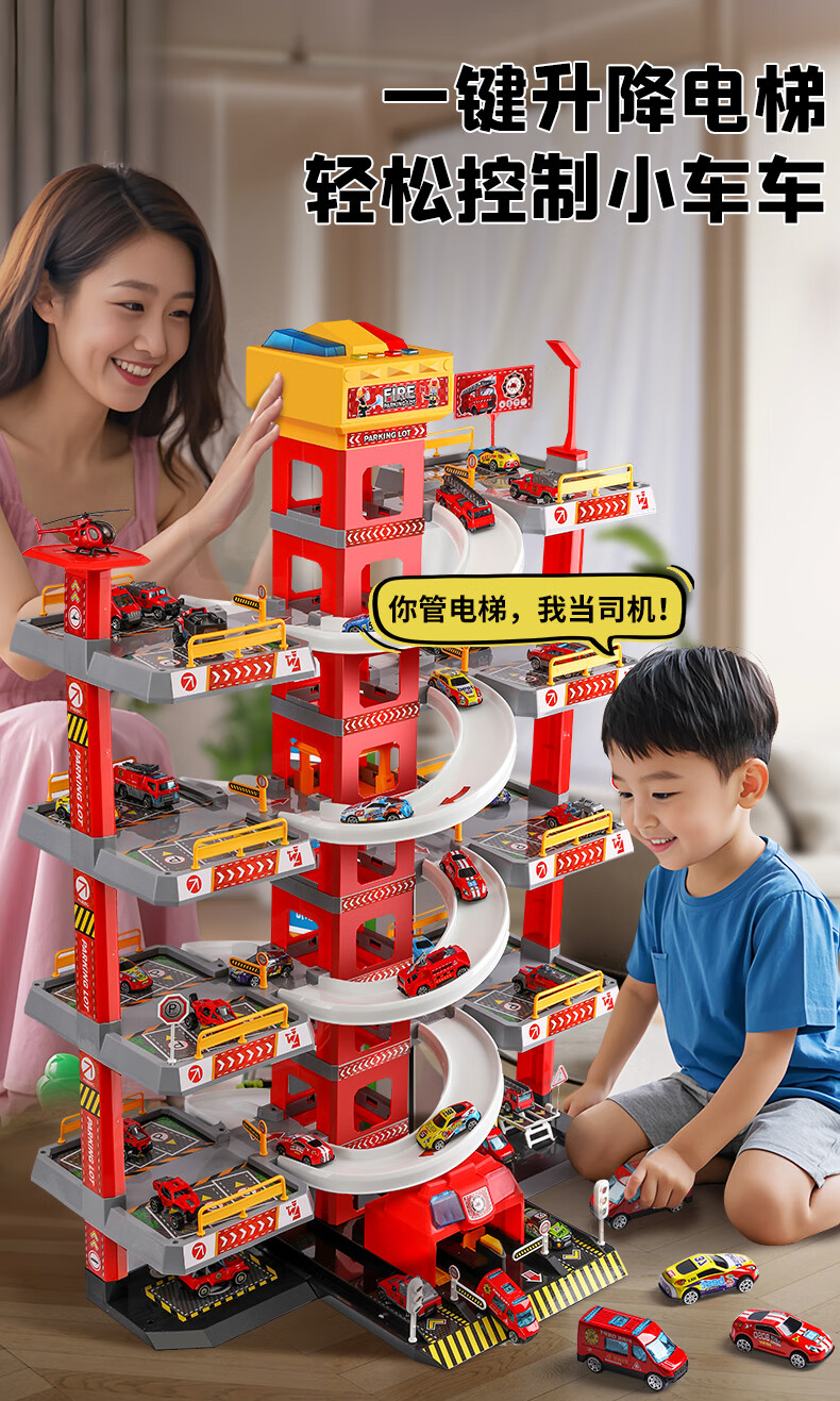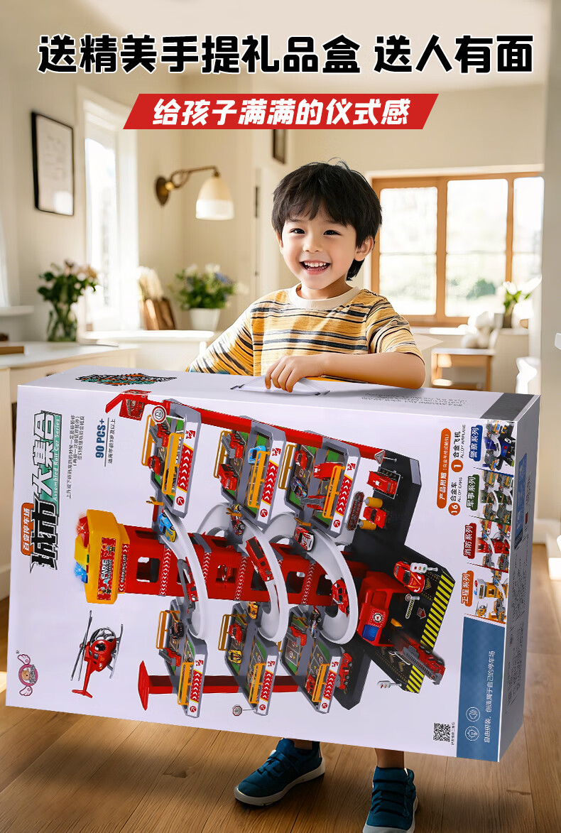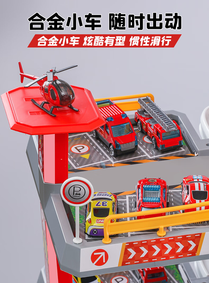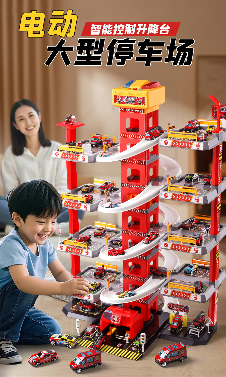 Holy STONE停车场大楼玩具消防车超大旋转轨道儿童玩具车男孩3-6岁生日礼物 5层消防停车大楼【礼盒充电版】12车+飞机 圣诞礼物儿童节1-2-4-5-7岁2026火的玩具