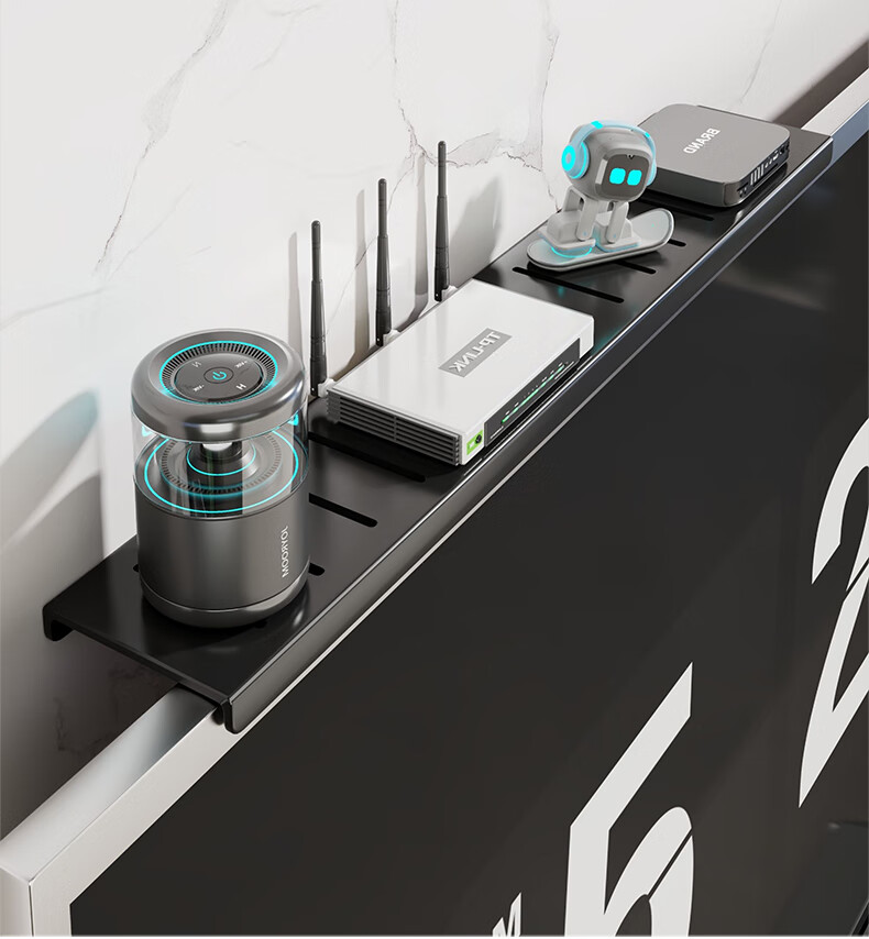 木格格电视机顶盒置物架路由器收纳盒光猫路由器放置架子免打孔支架悬空 黑色【60*7】
