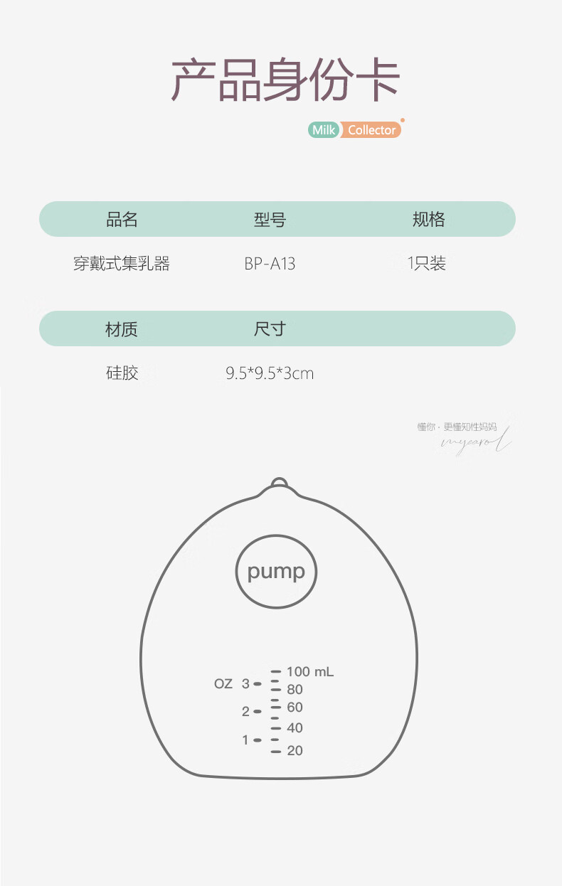 可瑞儿(MyCarol)穿戴式隐藏集乳器接奶器免手扶手动集奶器乳盾防漏奶单个装BP-A13