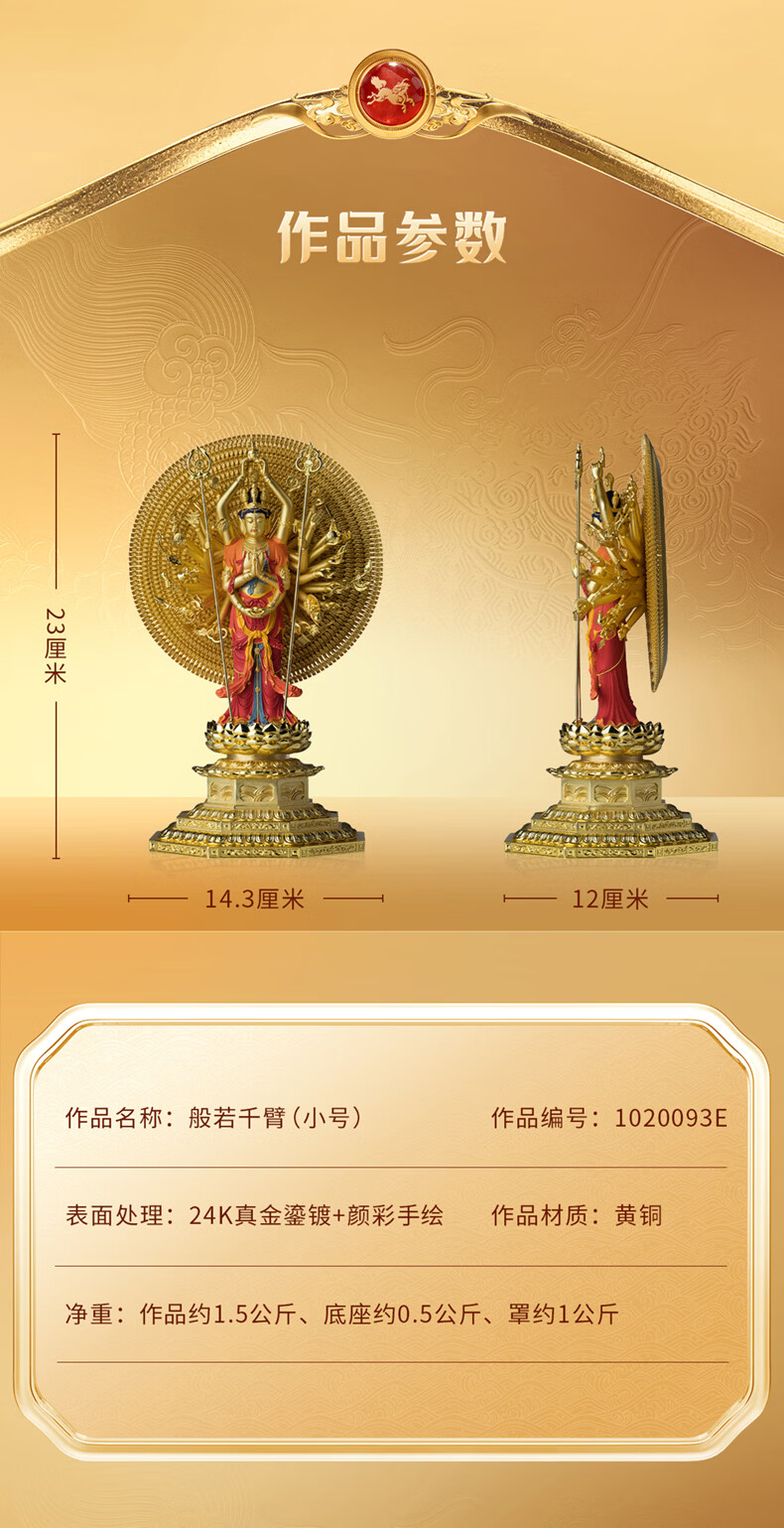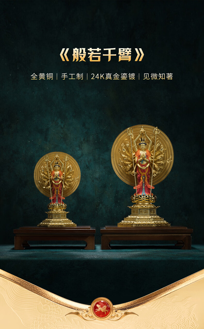 铜师傅 见微系列《般若千臂》佛堂观音佛像摆件 大号